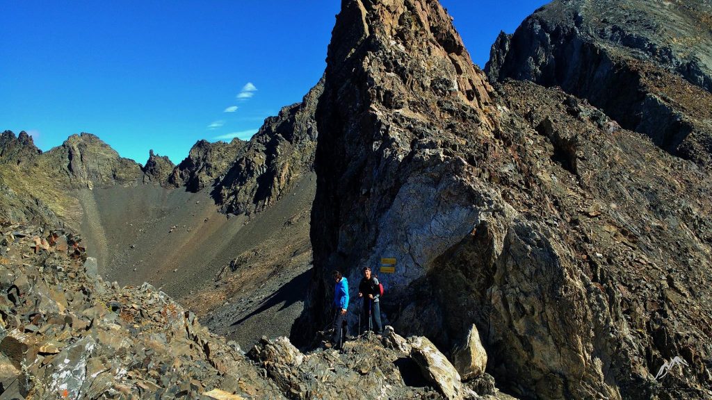 Descendemos al collado de los Infiernos o cuello “deros Azules”, allí tomamos la decisión de no subir a los infiernos, se nos alargaría de más la ruta y vamos en plan disfrute, así que aprovechamos la presencia de otros montañeros para retratarnos…