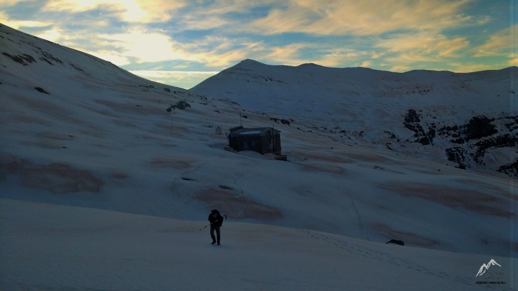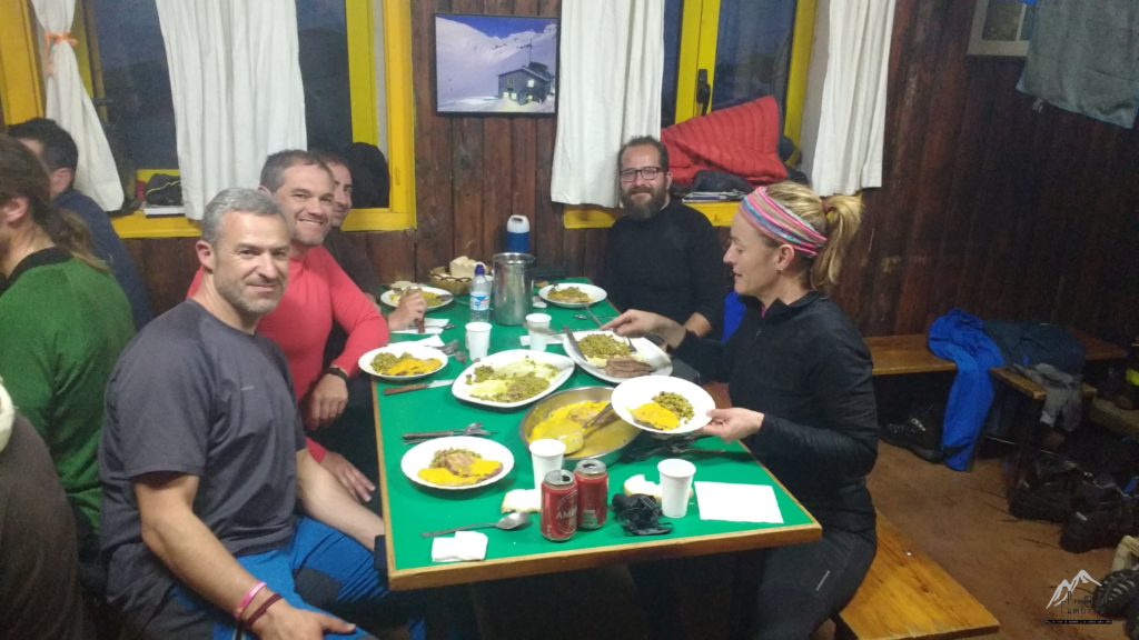 Tomé la resolución que me probaría hasta el collado de Millaris y si iba mal me daría la vuelta, desayunamos muy rápido, la ansiedad me podía…el día iba a ser impresionante. Ceci, estaba con su café y Bene y yo empezamos a calzarnos los crampones, sabíamos que Ceci, pondría su andador en marcha y nos rebasaría como solía hacer.