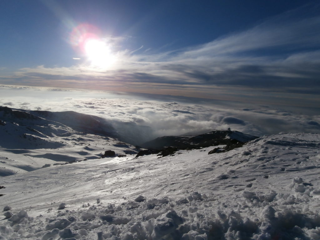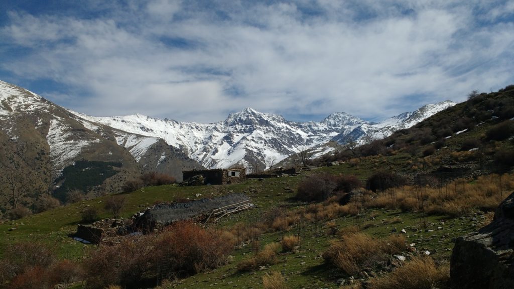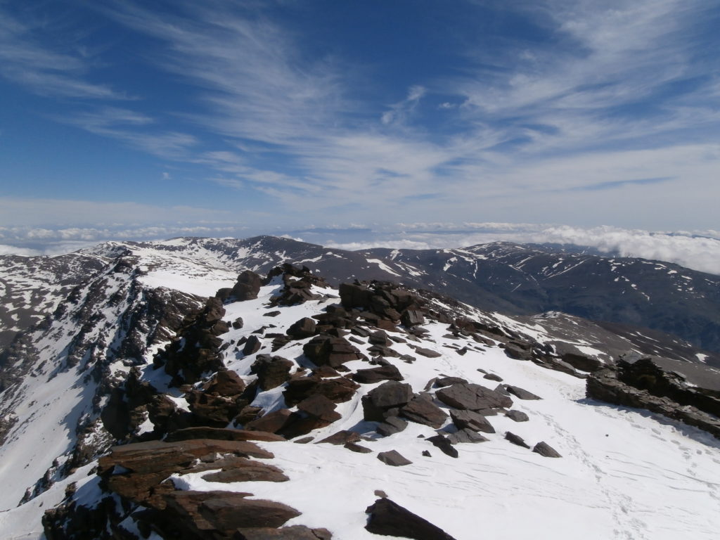 » Y la cumbre más alta de la Montaña del Sol «Sulayr» como decían los musulmanes, se llamó desde entonces Mulhacén, el último rey moro que murió siendo Granada musulmana. Ciego y triste no vió la desdicha y vergúenza de su pueblo conquistado por los cristianos,pero el ya presentía que «El Zogoibi»,su hijo Boabdil, rendiría la ciudad y eso acabó con él. Muchas expediciones subieron a buscar la tumba del Rey,pero nunca nadie supo de su ubicación y las historias de los tesoros perdidos de Muley Hacén han pasado de generación en generación. Pero lo que es cierto, que muchos montañeros y pastores que han dormido en el pico, dicen que en noches de luna llena, han visto un destello metálico entre las rocas…»