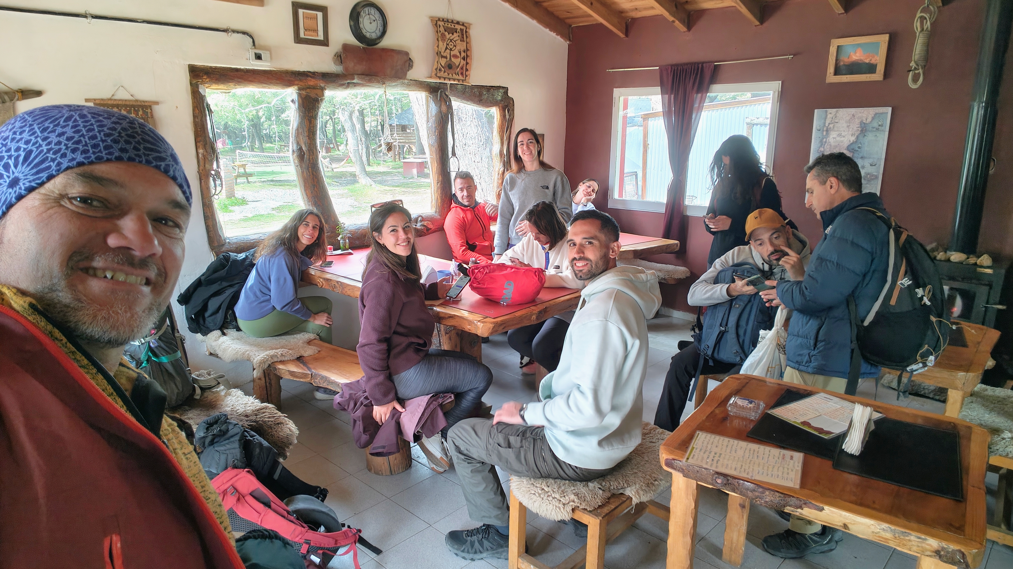 Así que nos levantamos por una vez con tranquilidad, pues sería a las diez cuando empezaríamos la actividad, Diego de Murcia propuso levantarnos antes del amanecer a las cinco y media para ir al mirador del Cerro Torre y ver los primeros rayos en sus paredes, lo temprano de la hora y las dos horas de ruta ida y vuelta hizo que nadie tuviera fuerzas para levantarse para ello, por fortuna amaneció bastante nublado.