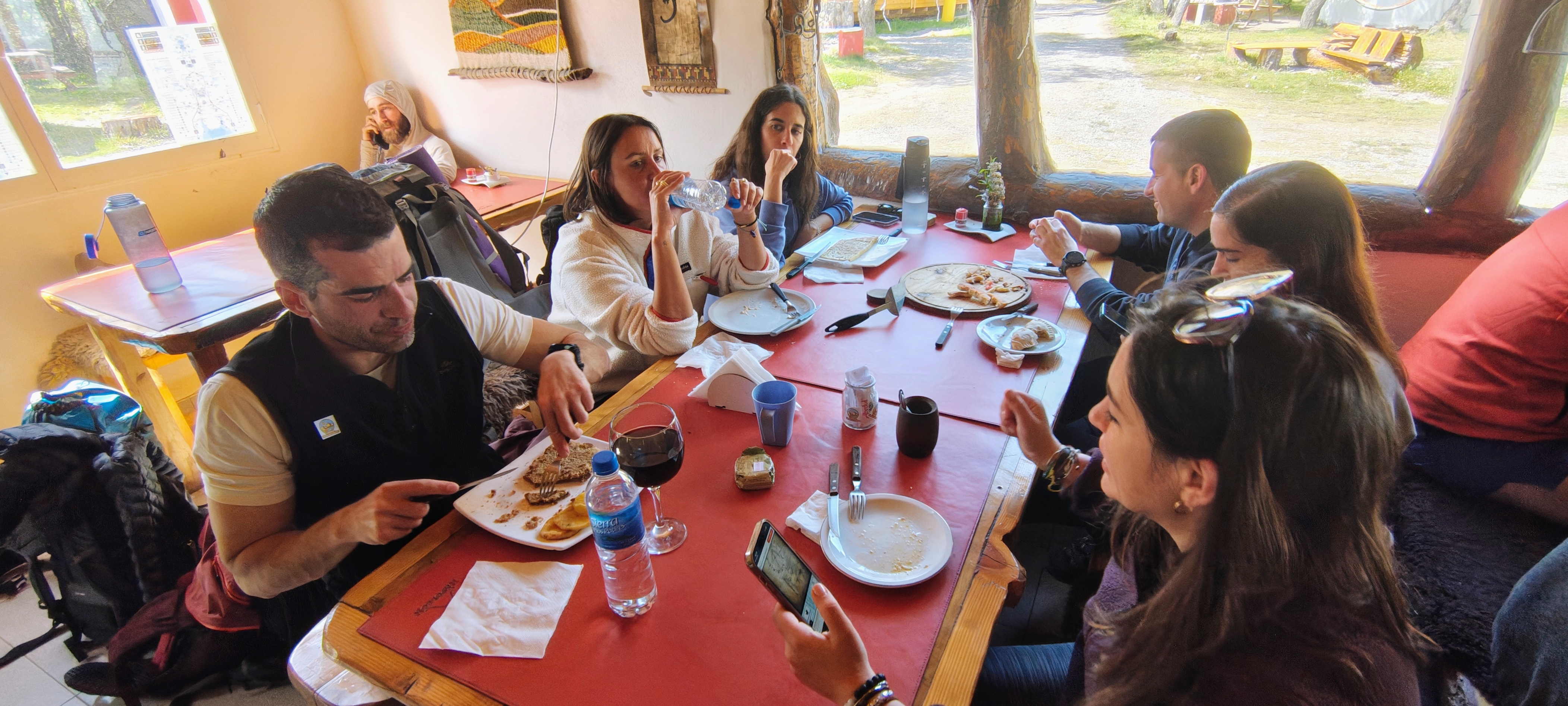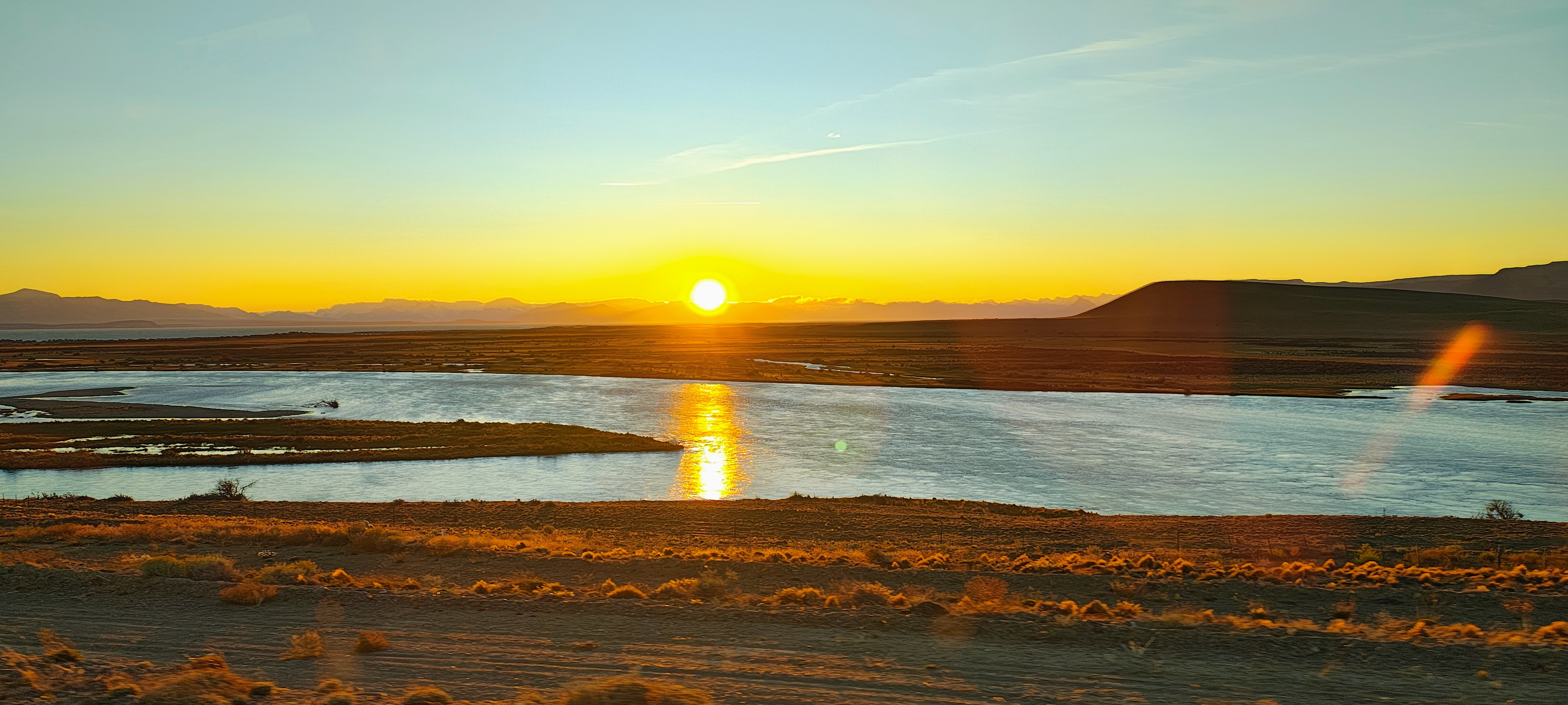 Y nos anocheció sobre el lago Argentino llegando a El Calafate, nuestro siguiente alojamiento era “Glaciares de la Patagonia”, que tras llegar y una breve ducha volvimos a quedar para salir a El Calafate.