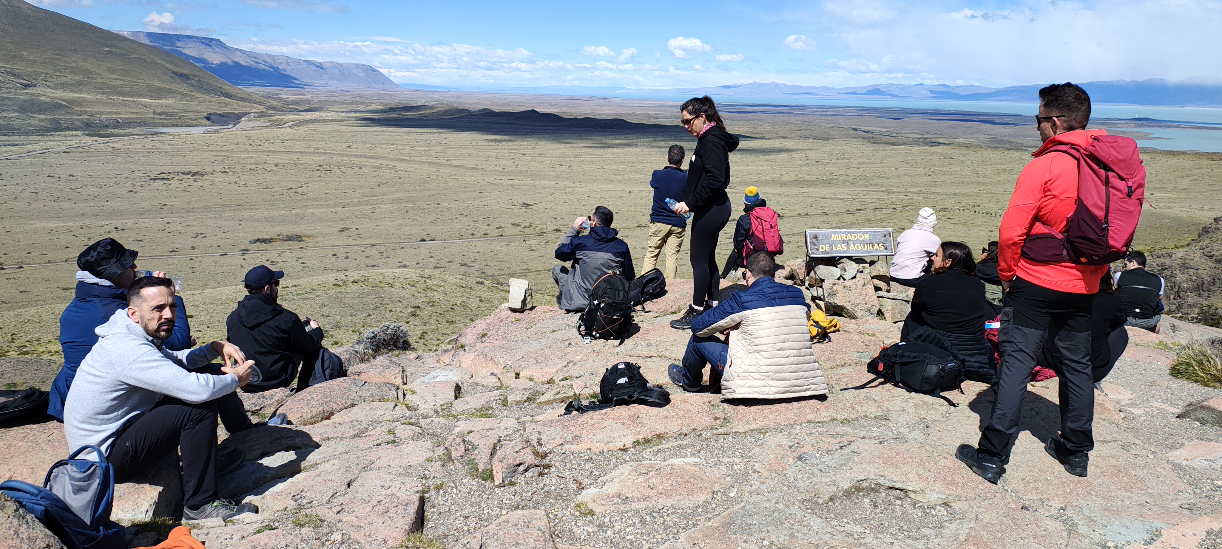 Luego se van al mirador de las Águilas que busca del lago Viedma y el desierto estepario que lo circunda. También llegan a pesar del ruido de sus cabezas humanas, aunque no ven ni escuchan…