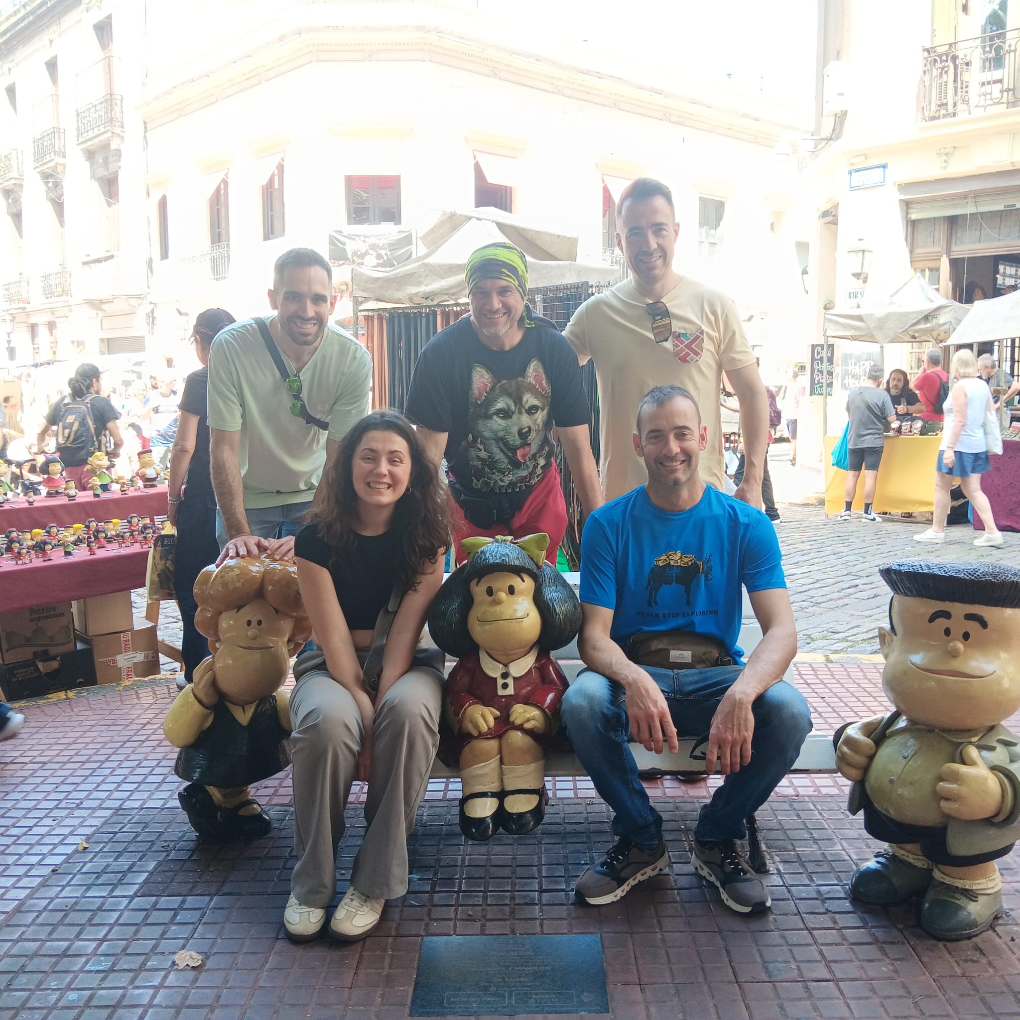 Tras la ducha humano bajó a la entrada del hotel, allí encontró a Marta, una joven de Alcázar de San Juan (Ciudad Real) y a María de La Coruña, ambas también del grupo de WeRoad y en pequeña compaña junto a Diego, Rober y Quim se fueron a visitar Buenos Aires; Plaza Rosada, Catedral, y el barrio de San Telmo con su mercado de Domingo y su estatua de Mafalda.