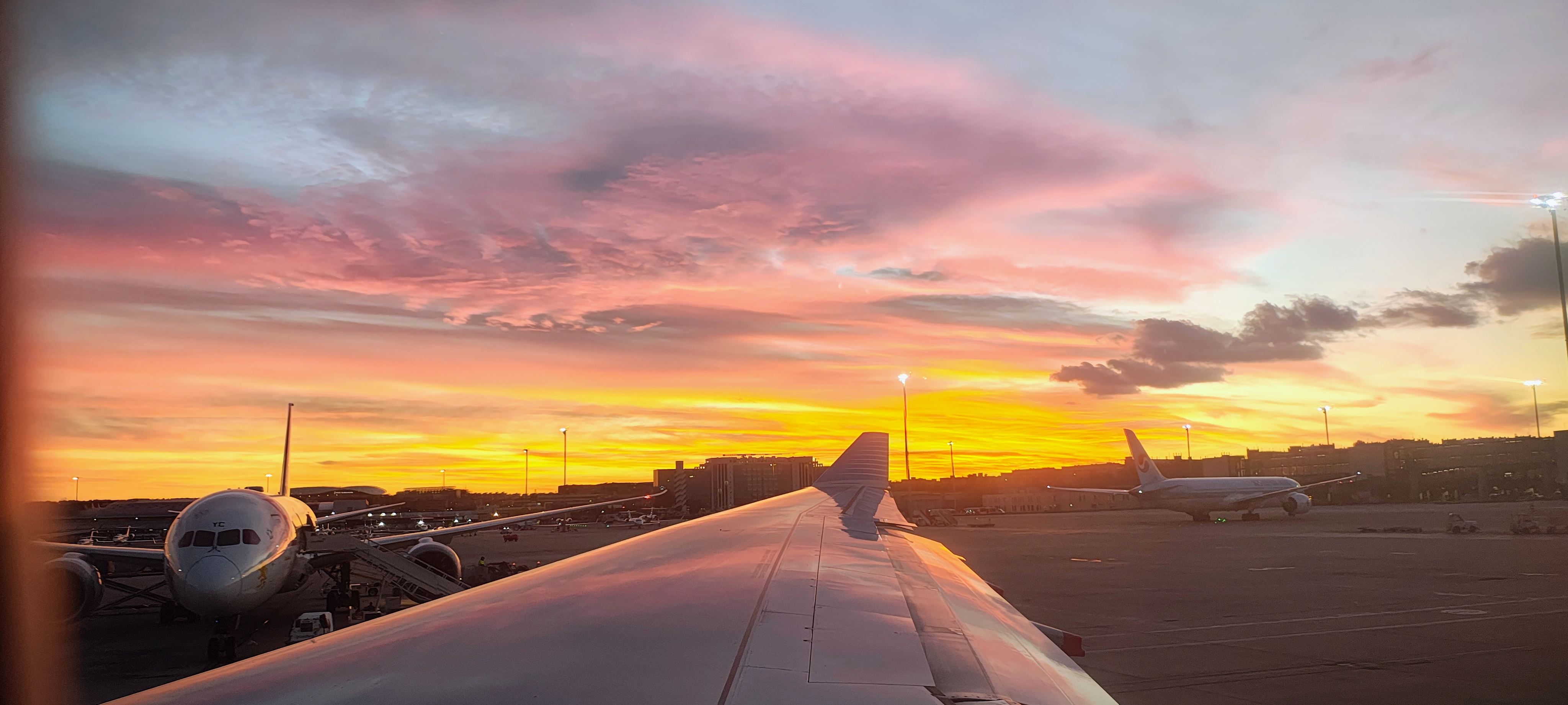Mientras el avión se introducía en el infinito del océano matizado por los colores amarillos, ocres y naranjas de la puesta de sol más larga que recordaba en su vida, el avión estaba persiguiendo el sol pero al no poder alcanzarlo la noche se hizo con el mundo, volviendo de oscuro el cielo hasta el fin de las trece horas de vuelo que surcaría entre las nubes.