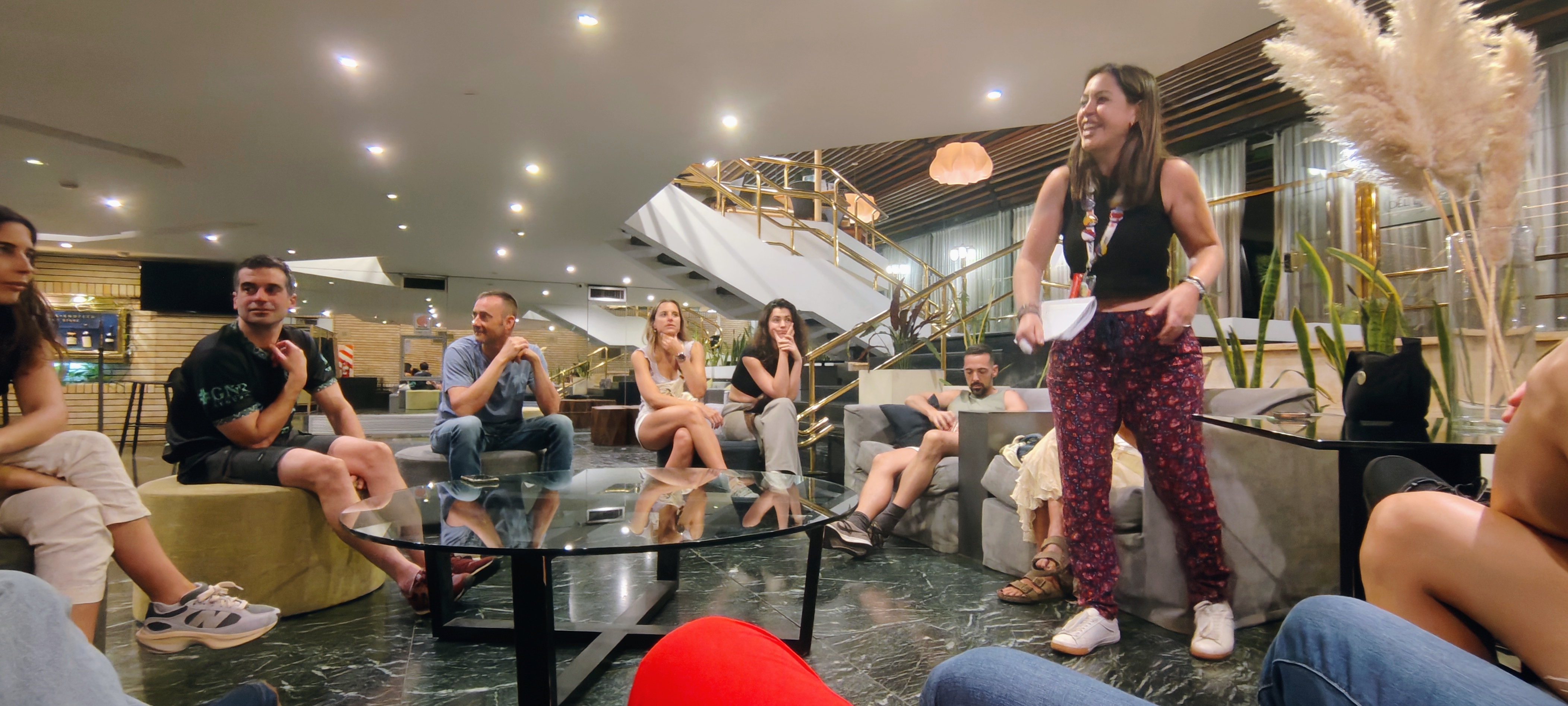Empatía, para que esto funcione, si alguien no llega a tiempo nos retrasa a todos, y tenemos estas dos semanas que estar conviviendo juntos, así que por favor, EMPATÍA. Ahora nos vamos a cenar junto al hotel porque os tengo una mala noticia. Salimos a la una y media del hotel.