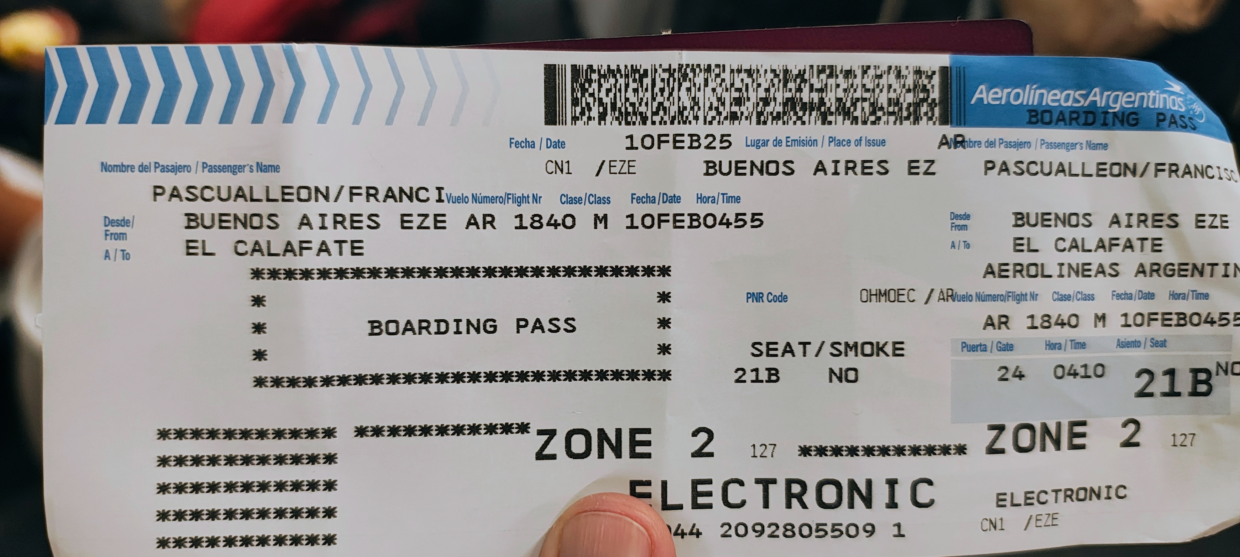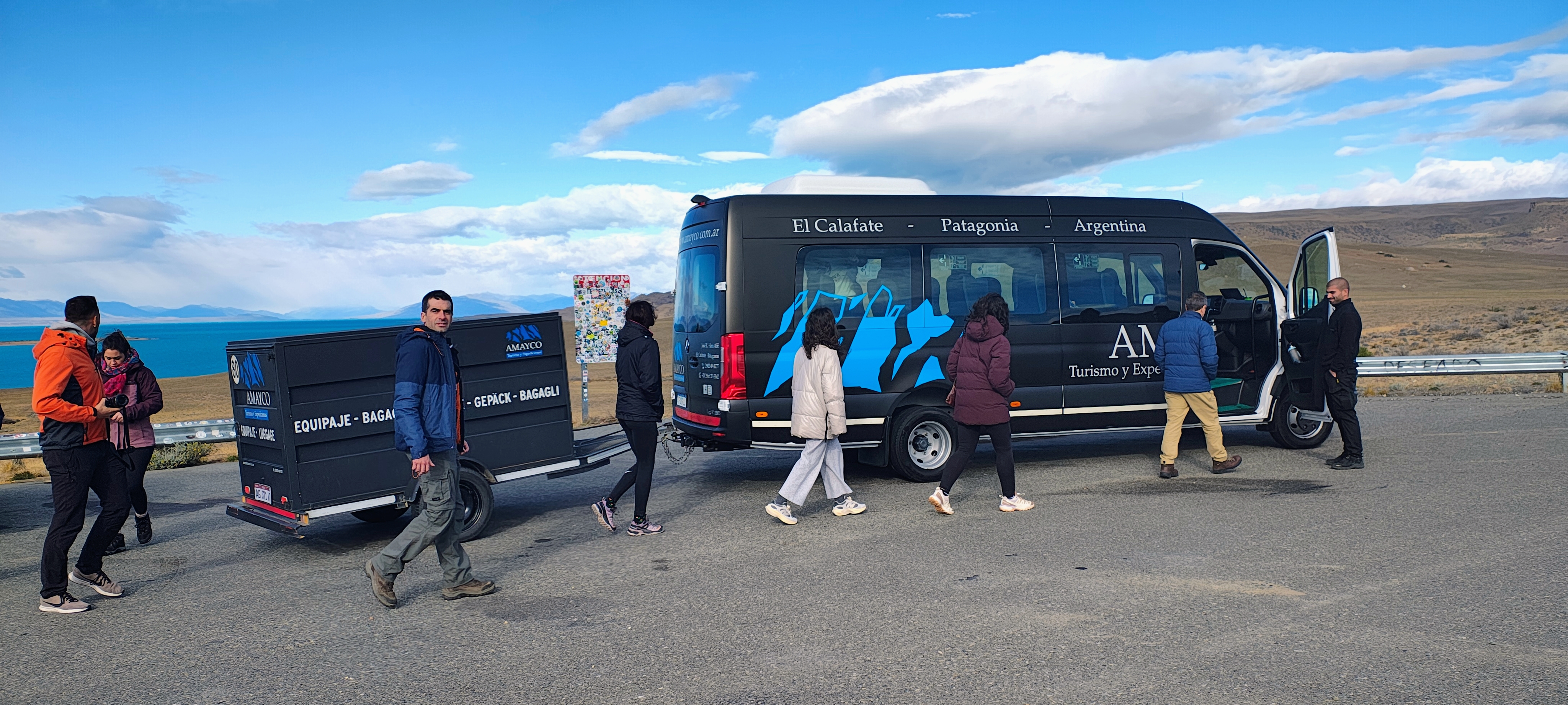 Y tras volar de noche con Aerolíneas Argentinas llegaron a las nueve de la mañana al aeropuerto de El Calafate, donde les esperaba un minibús con un remolque para el equipaje, empezaba otro viaje ,esta vez hasta el Chaltén, primer destino del grupo de humanos de WeRoad.