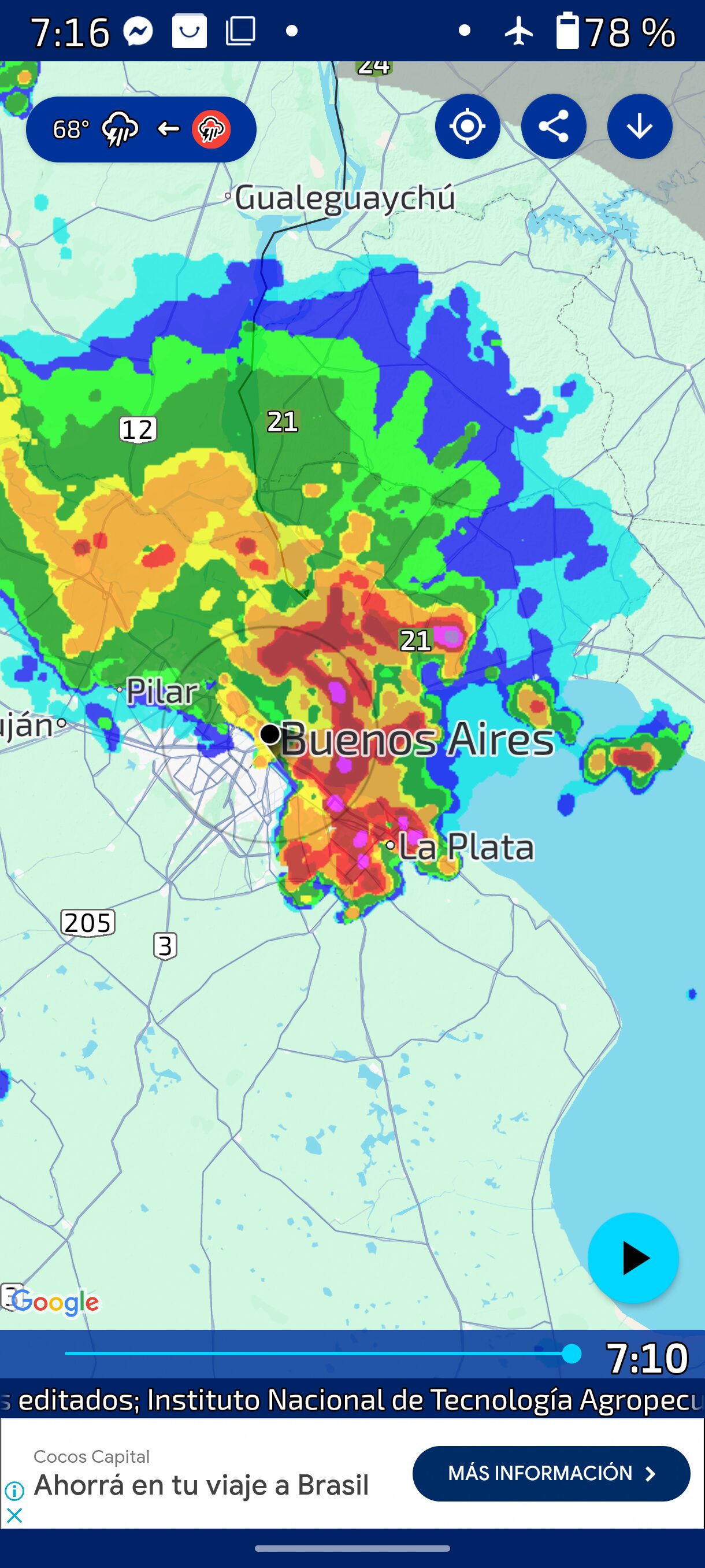 Humano respiró tranquilo al llegar al hotel con sus dos mochilas al confirmarle el conserje, un joven con barba bien cuidada y gafas llamado Patricio Alberto, que allí estaban alojado los de WeRoad, y como eran las cinco de la mañana, humano le dejó su equipaje en consigna y se decidió ir al Puerto Madero a ver el amanecer, pero al asomarse a la puerta del hotel se encontró con una enorme tormenta con múltiples rayos – esto no estaba en las predicciones del tiempo-, le dijo al conserje, mientras le contestaba Patricio que allí en Buenos Aires tras las olas de calor había un reventón en forma de tormenta que bajaba las temperaturas…, un reventón enorme que parecía que podía caer el cielo…