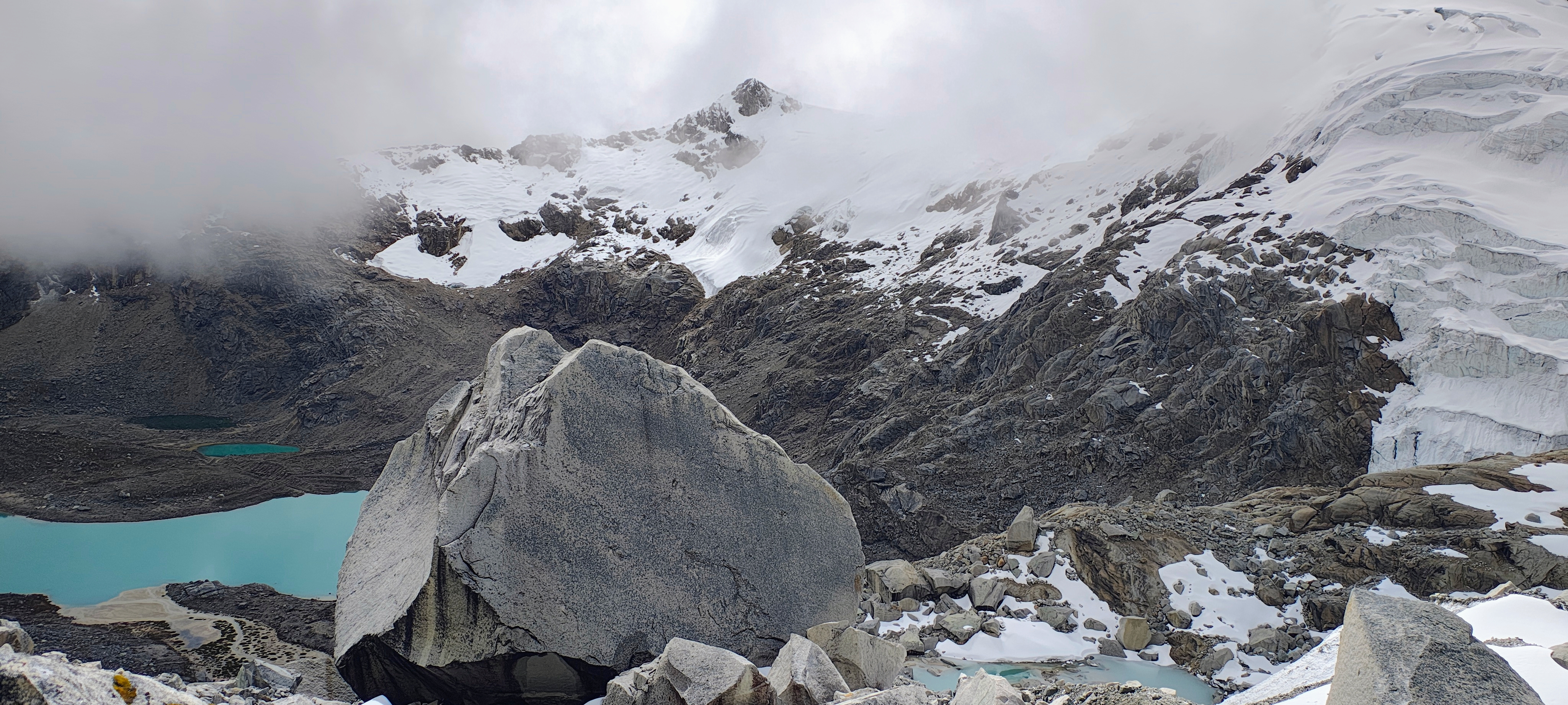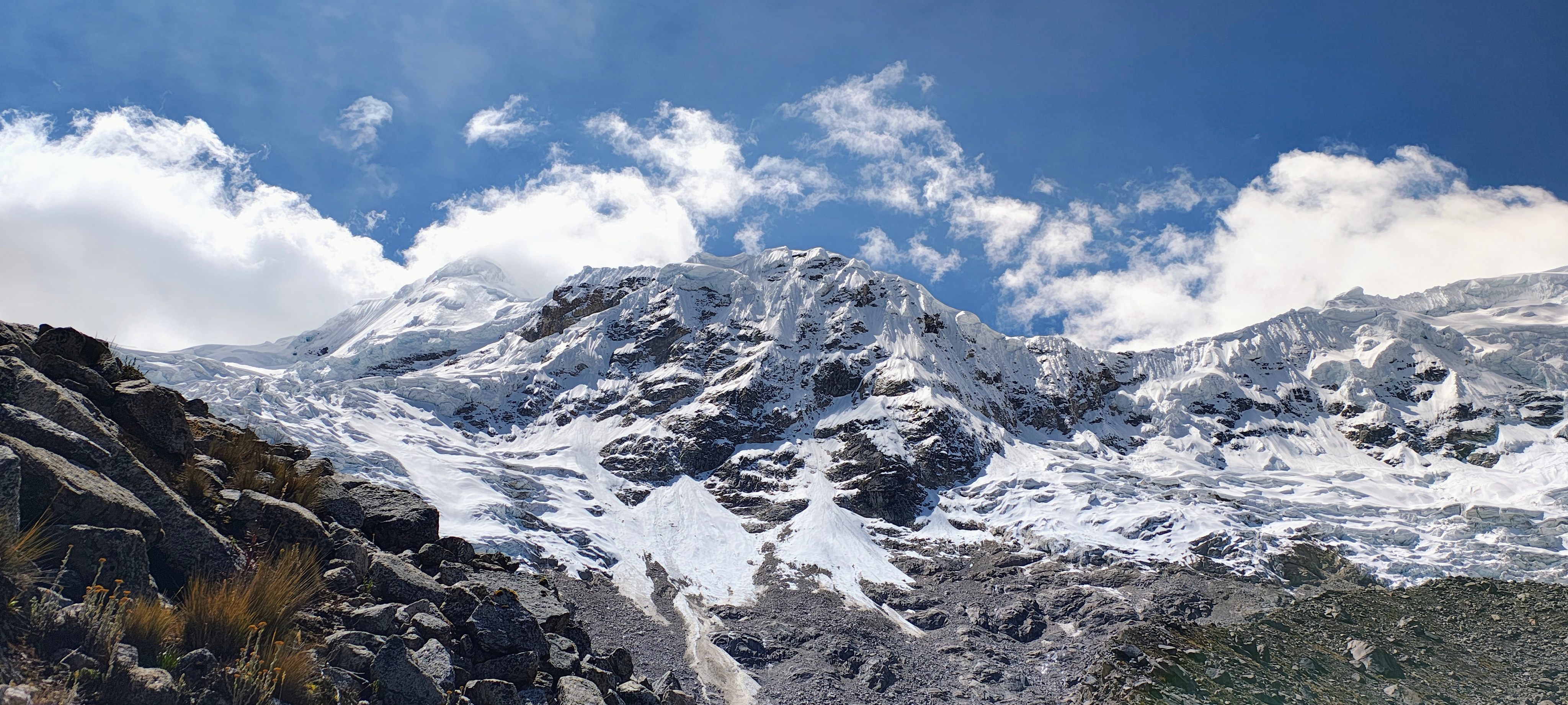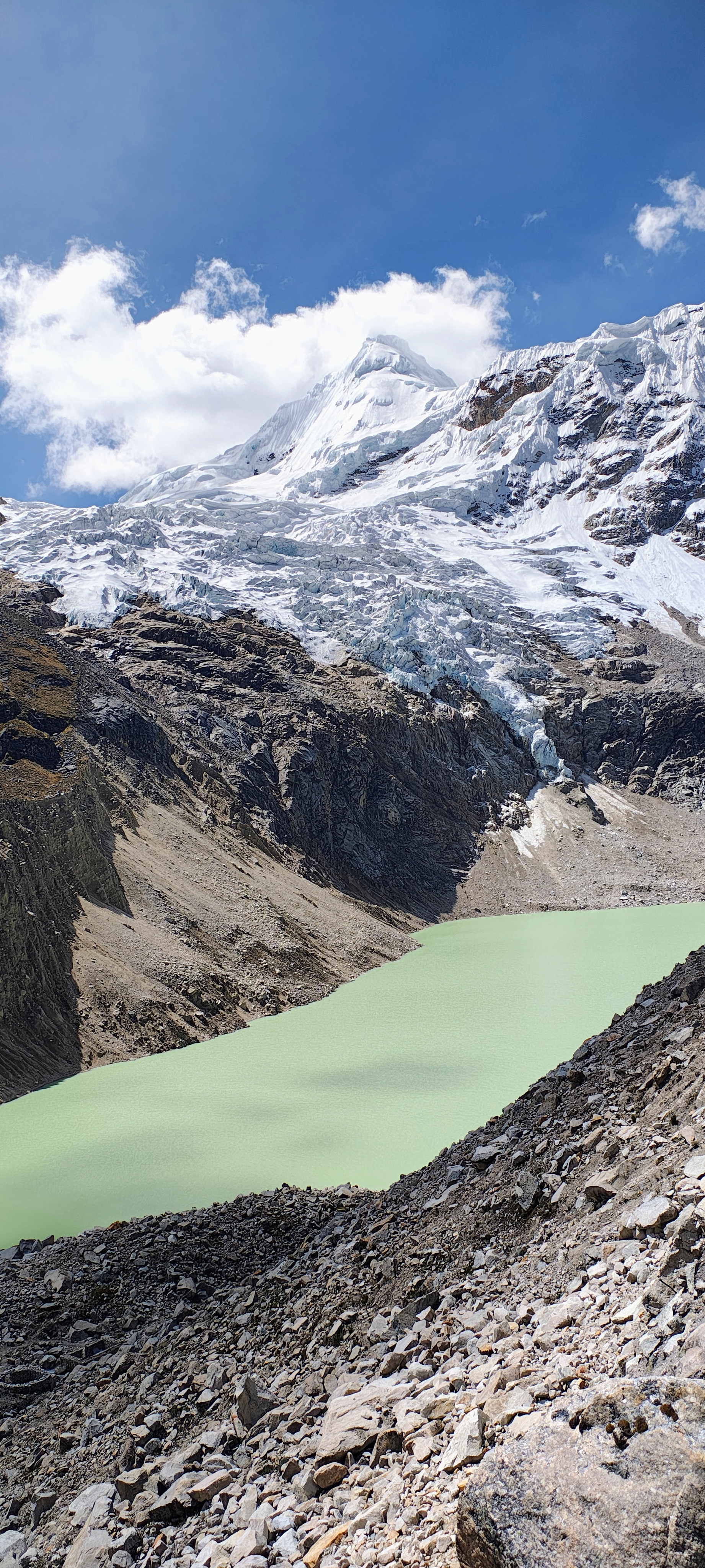 Nos paramos en unas rocas más grandes para fotografiar el Tocllaraju.