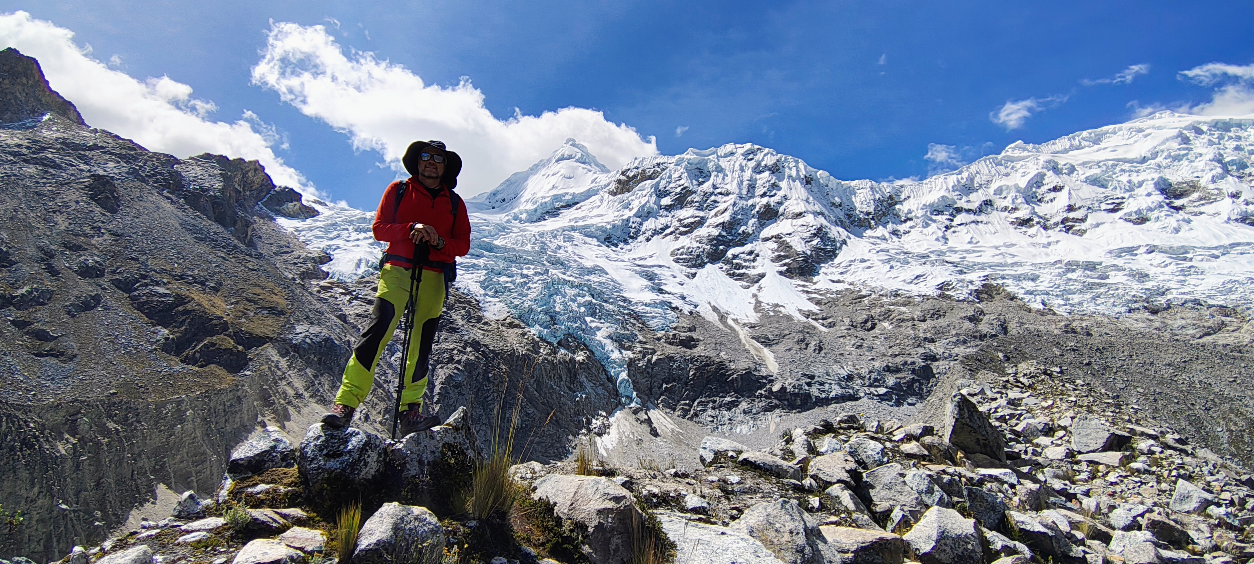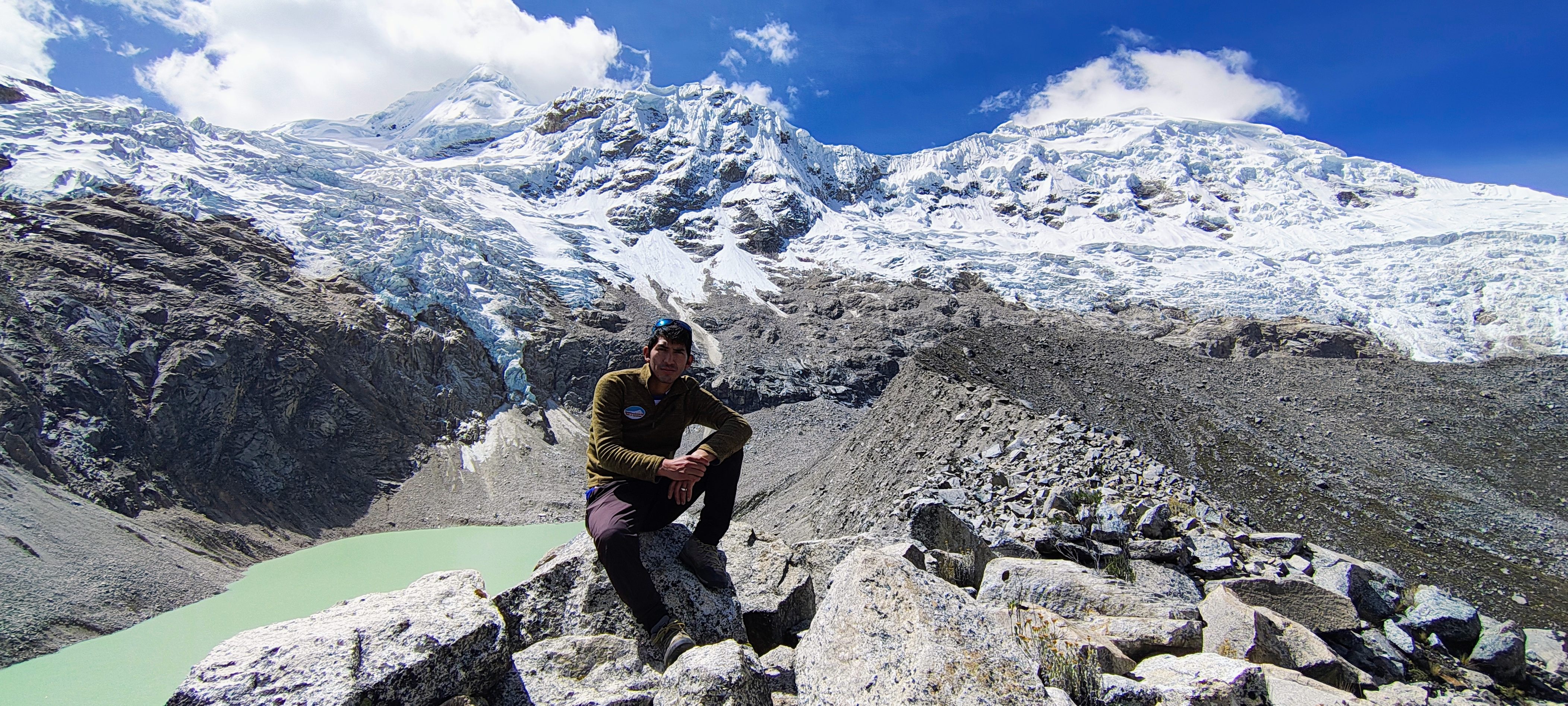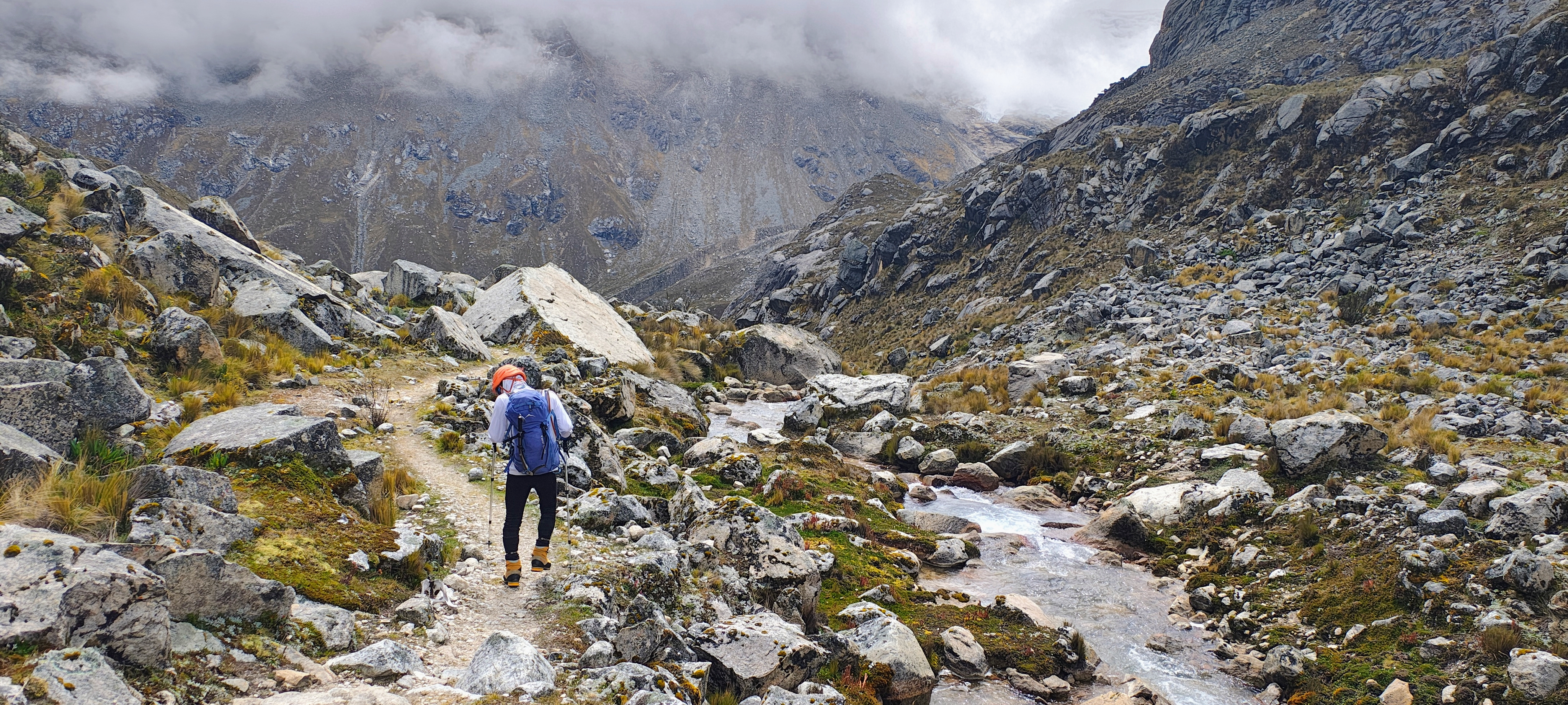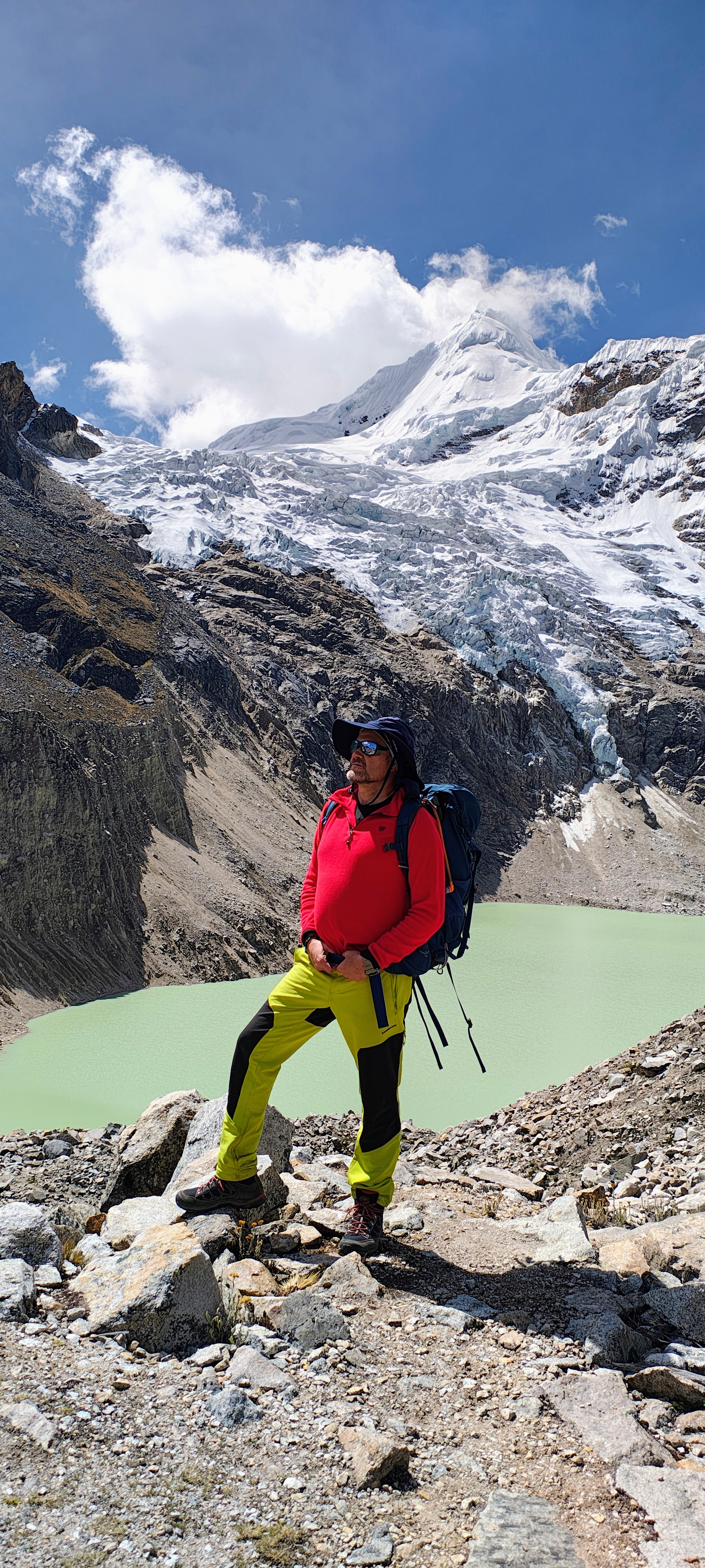 Nos paramos en unas rocas más grandes para fotografiar el Tocllaraju.