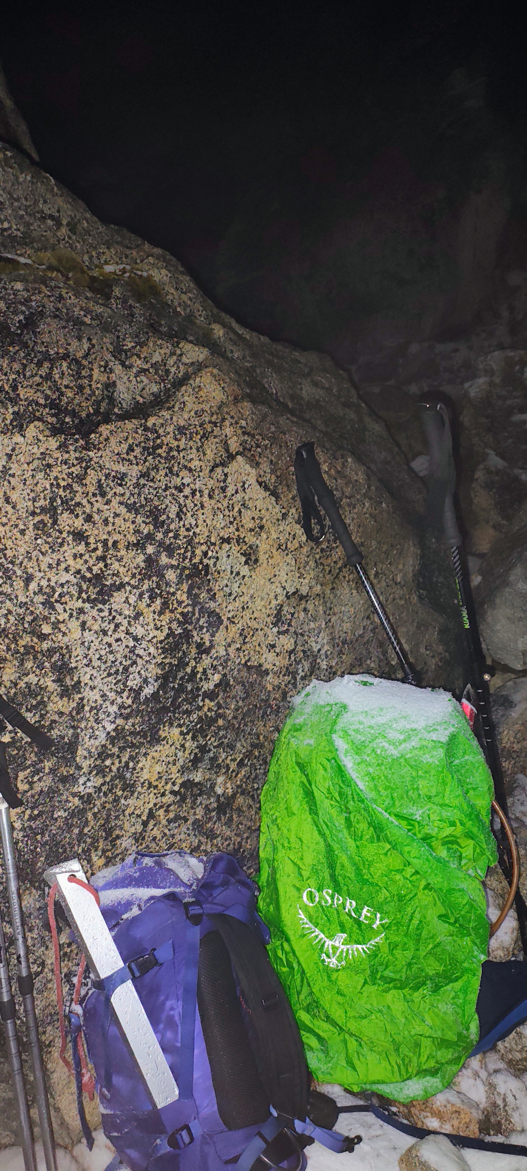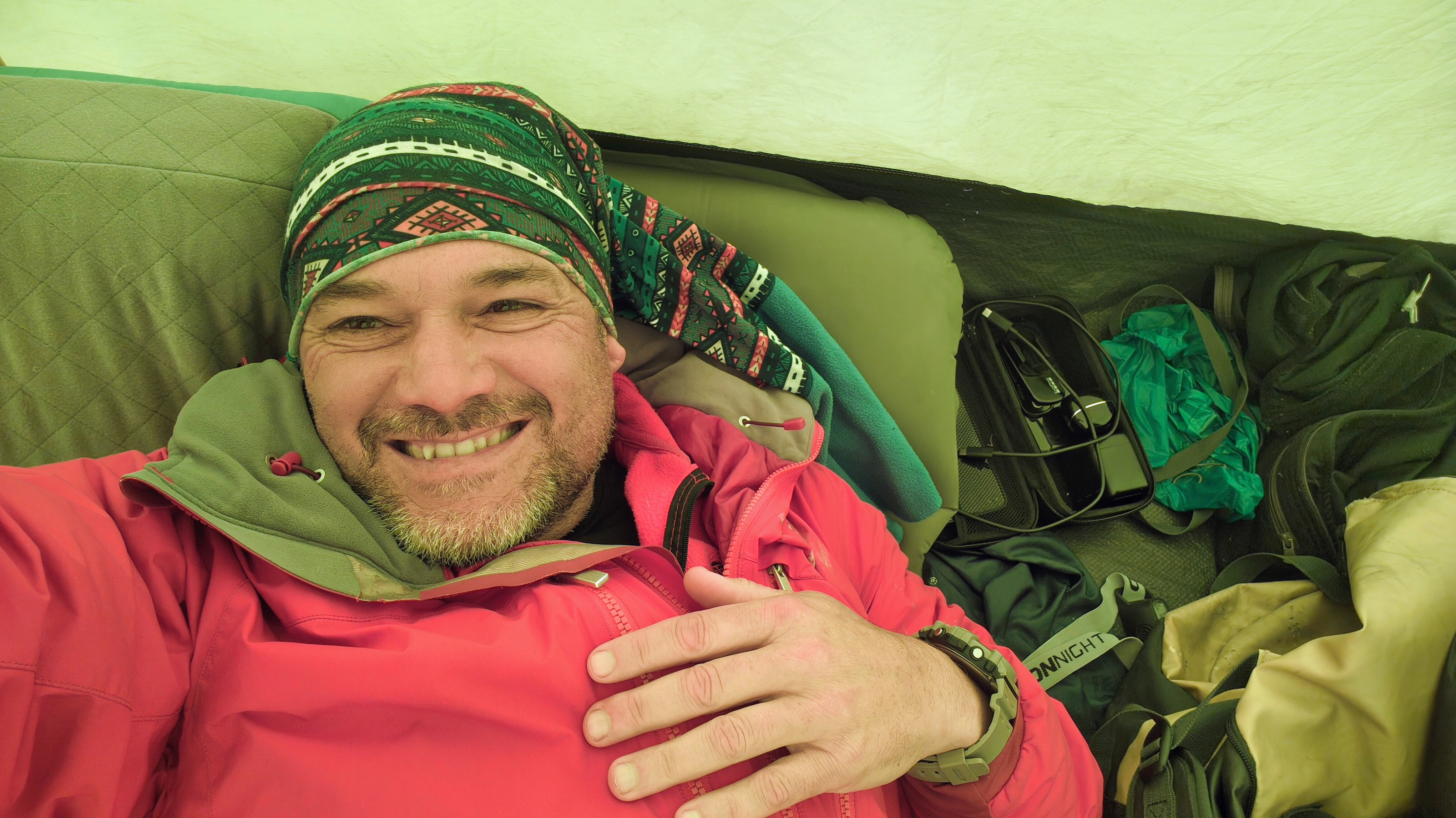 Me meto en la tienda a las siete y media intentando dormir hasta la hora convenida, apenas  cinco horas con suerte, pero a las ocho y media comienza a llover, el sonido de la lluvia no me deja dormir, a las nueve y media sigue lloviendo, a las diez  y media también llueve intermitentemente, no estoy durmiendo nada.