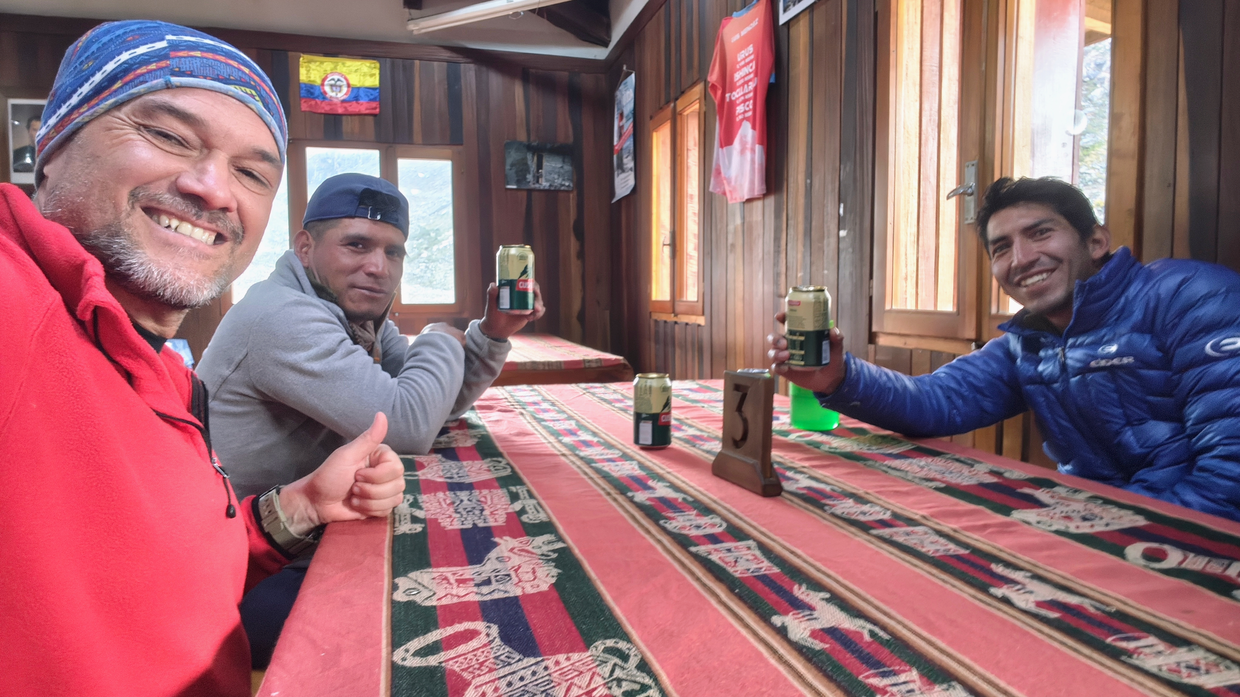 Nos pasamos el resto de la tarde celebrando el cumpleaños de Hosterlin en el refugio, allí llega otro guía peruano que al final no ha subido al Ishinca, salían a las tres  y media para la cima y a esa hora ya se había cerrado la lluvia, nosotros ya estábamos bajo la nieve a esa hora, y la nevada no nos impedía avanzar. Pero eso ya era épica pasada , yo sólo tomé dos cervezas que es mi tope, pero cayeron cerca de veinte.