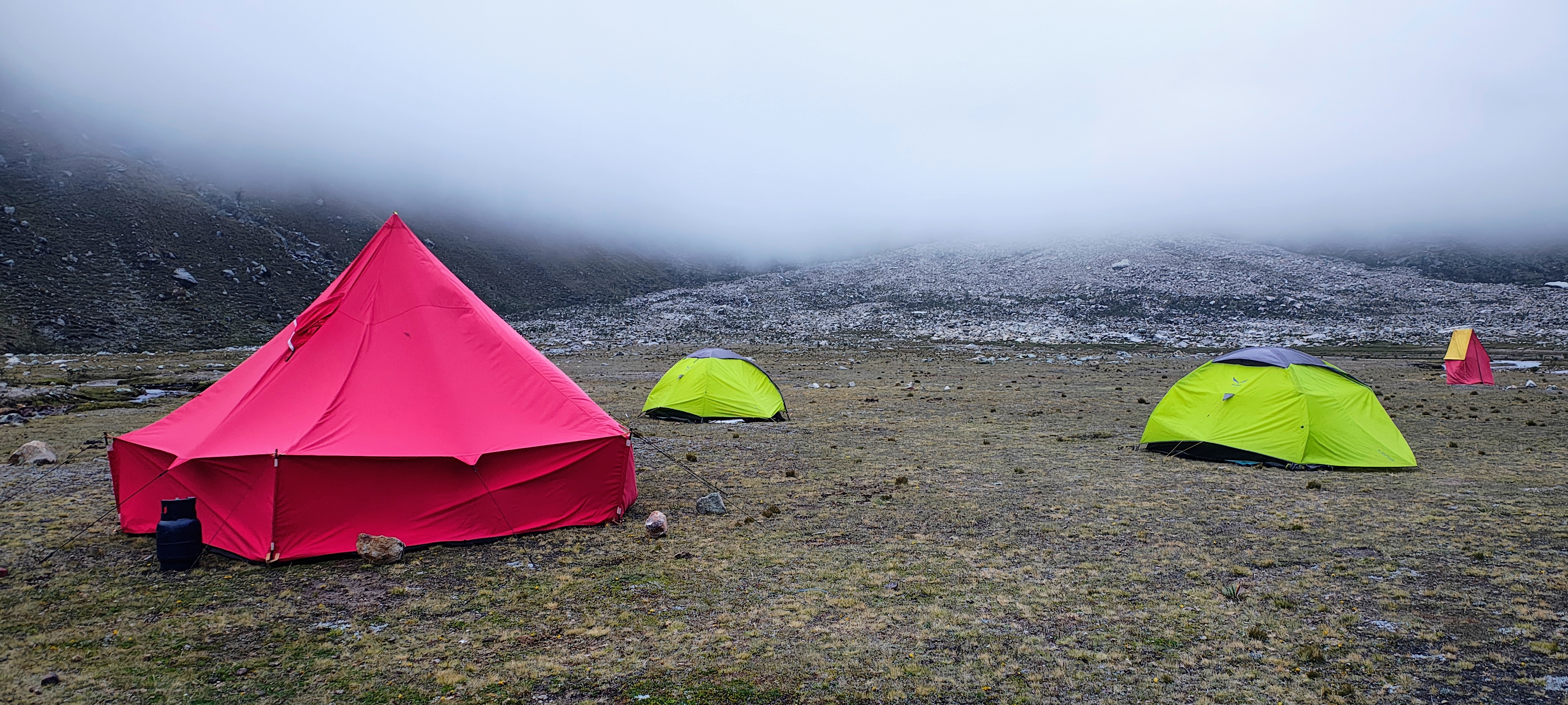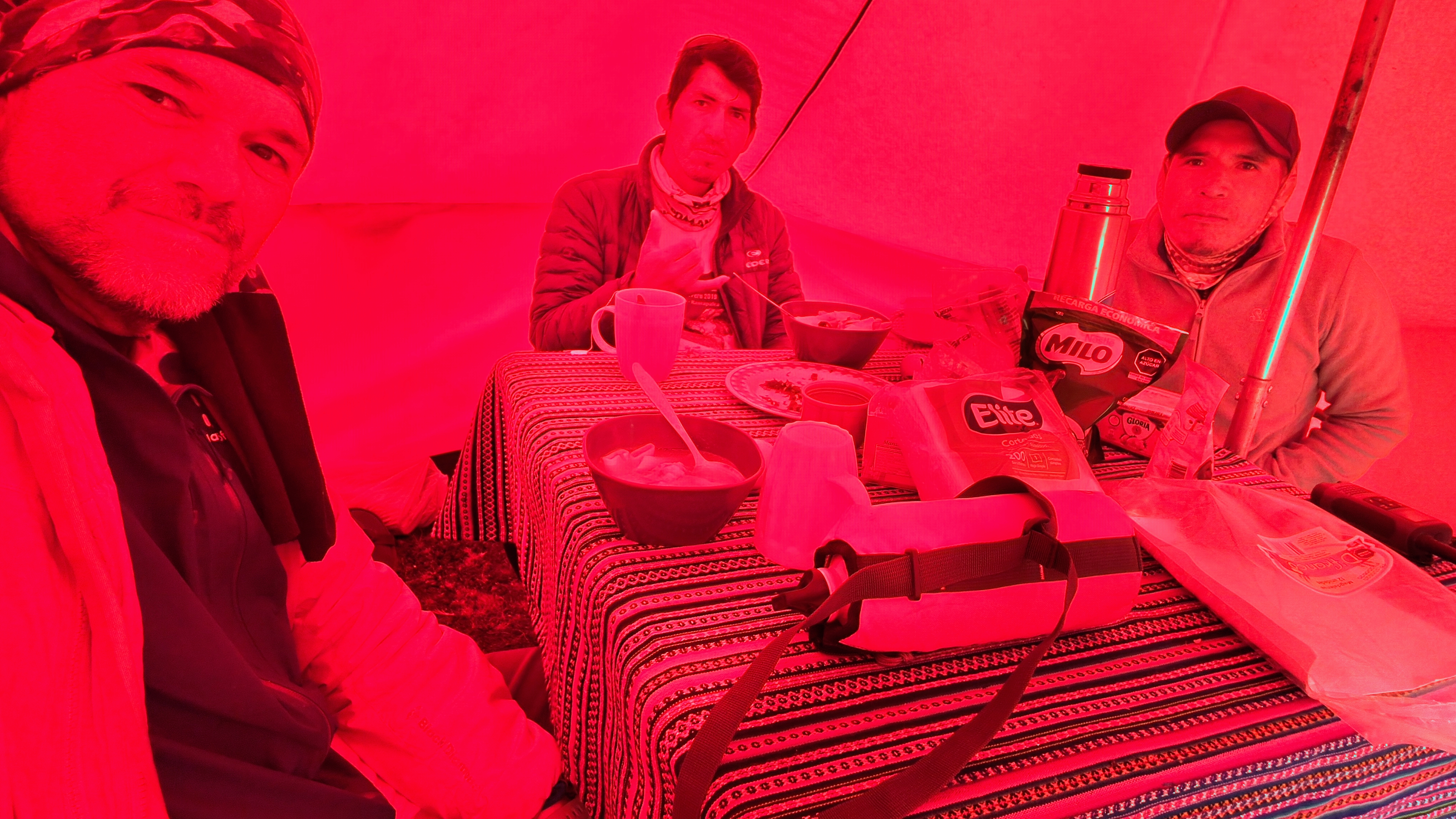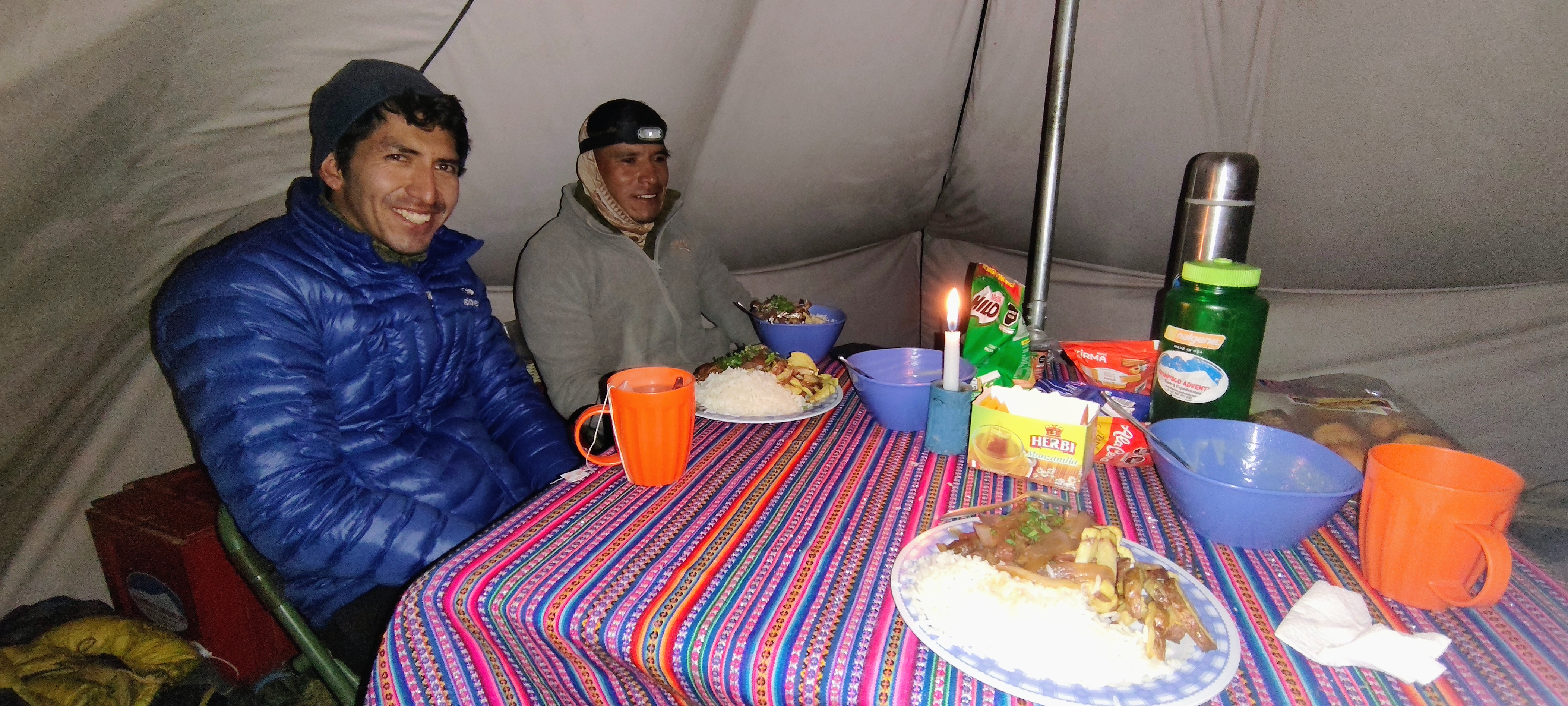 Fredy nos prepara algo ligero de comer y en poco nos volvemos a las tiendas, pues más tarde nos acercaremos al refugio de Ishinca.
