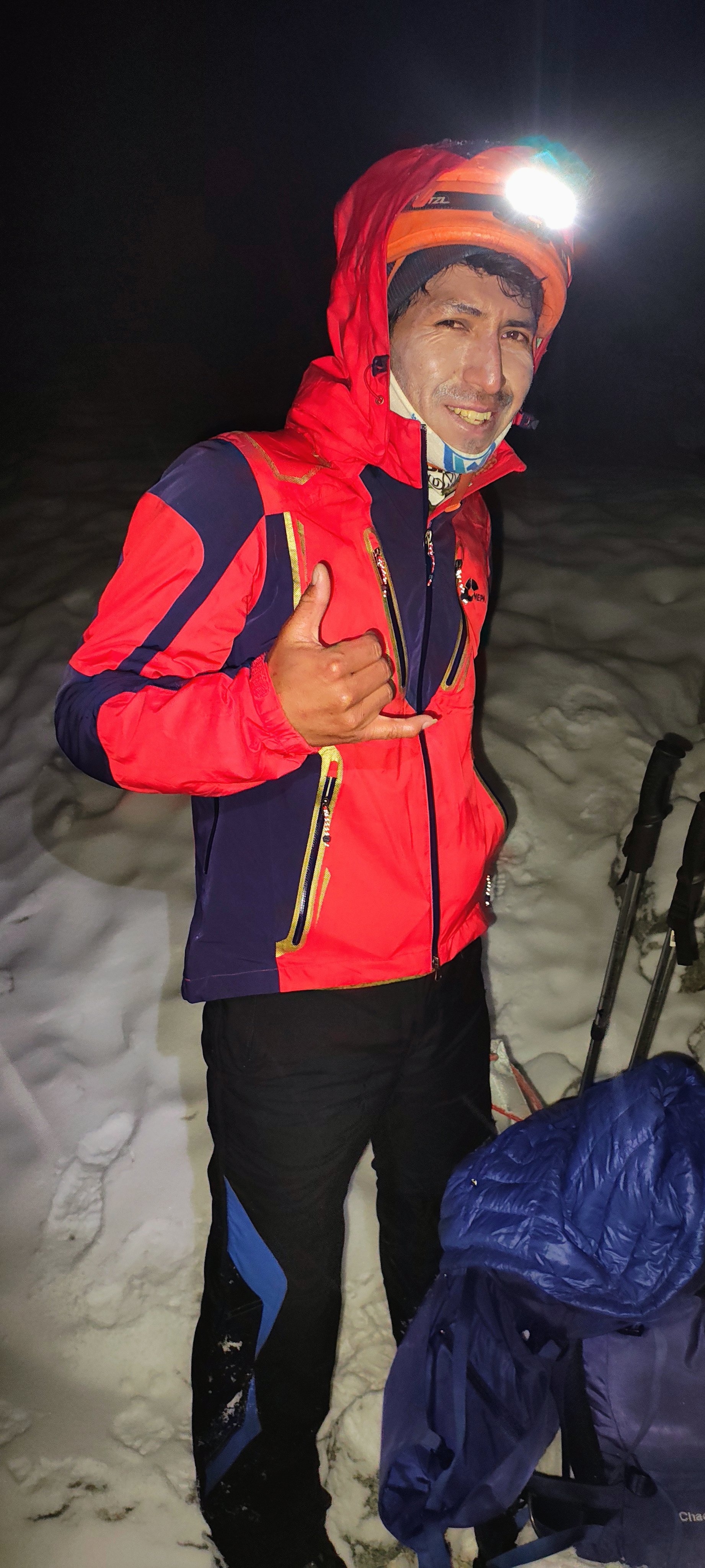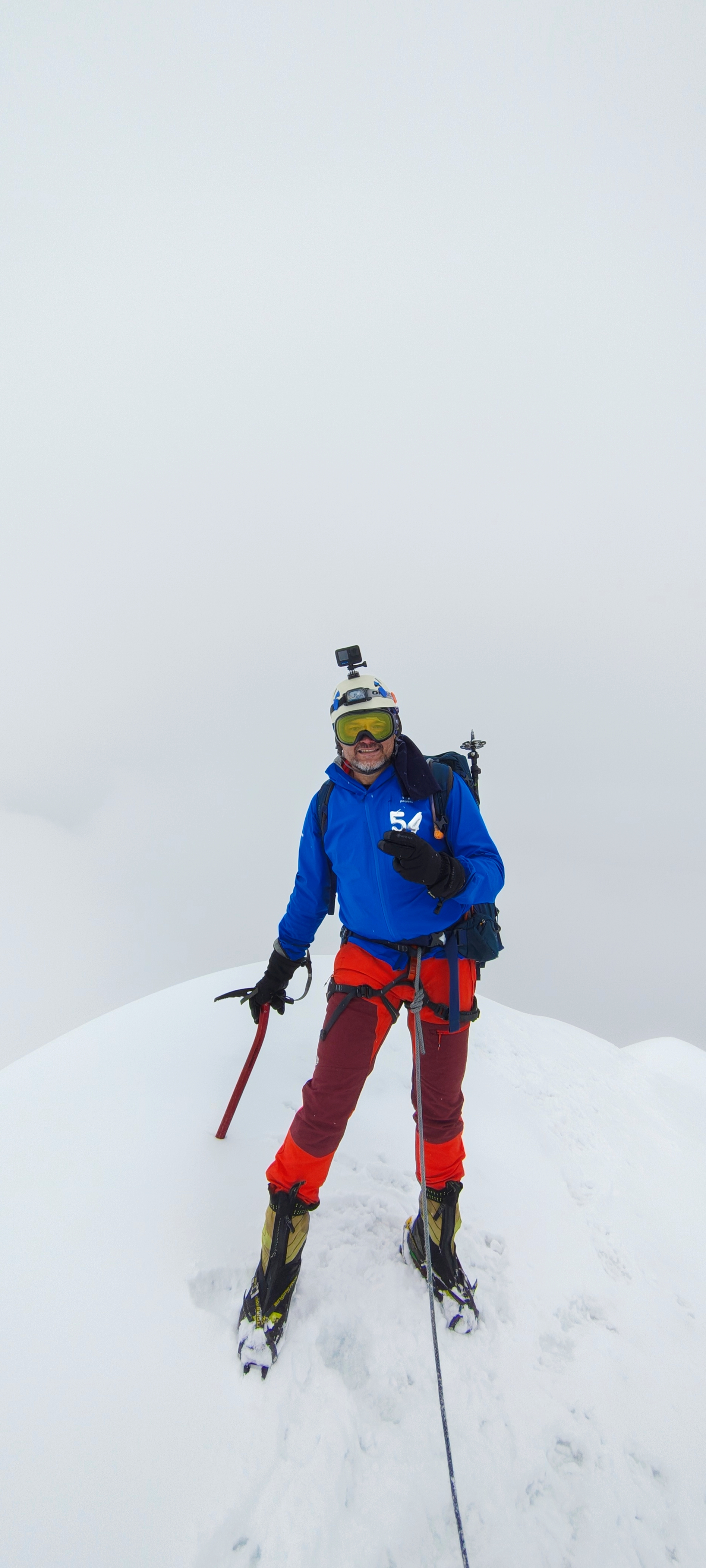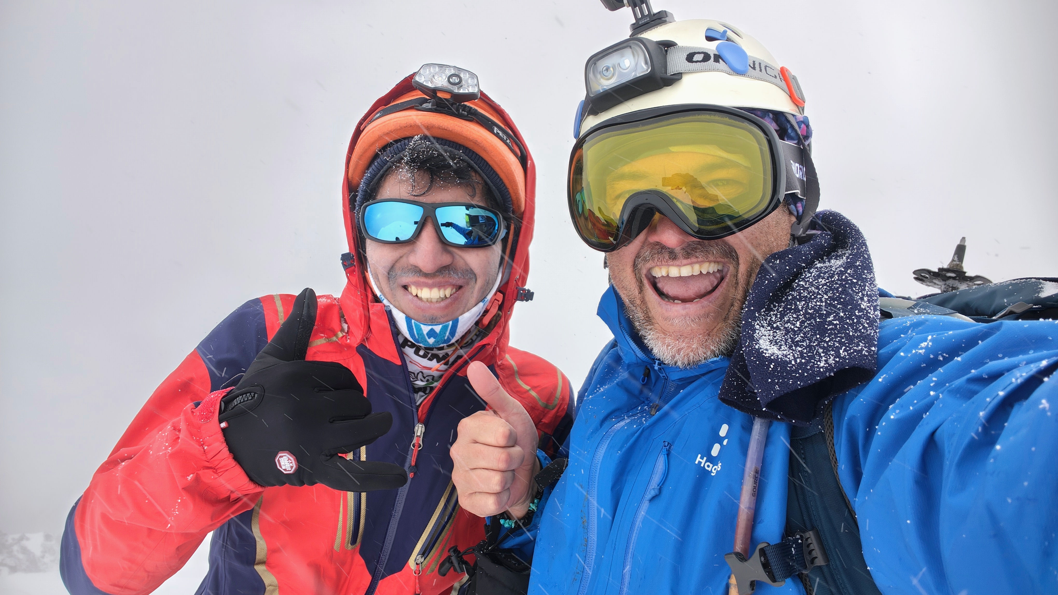 Nos acercamos a la cumbre y hay una pared de nieve, se hace un poco largo, me doy cuenta que voy a perder la apuesta, así que voy más despacio para perderlo por mucho, aunque la realidad es que me estaba asfixiando…