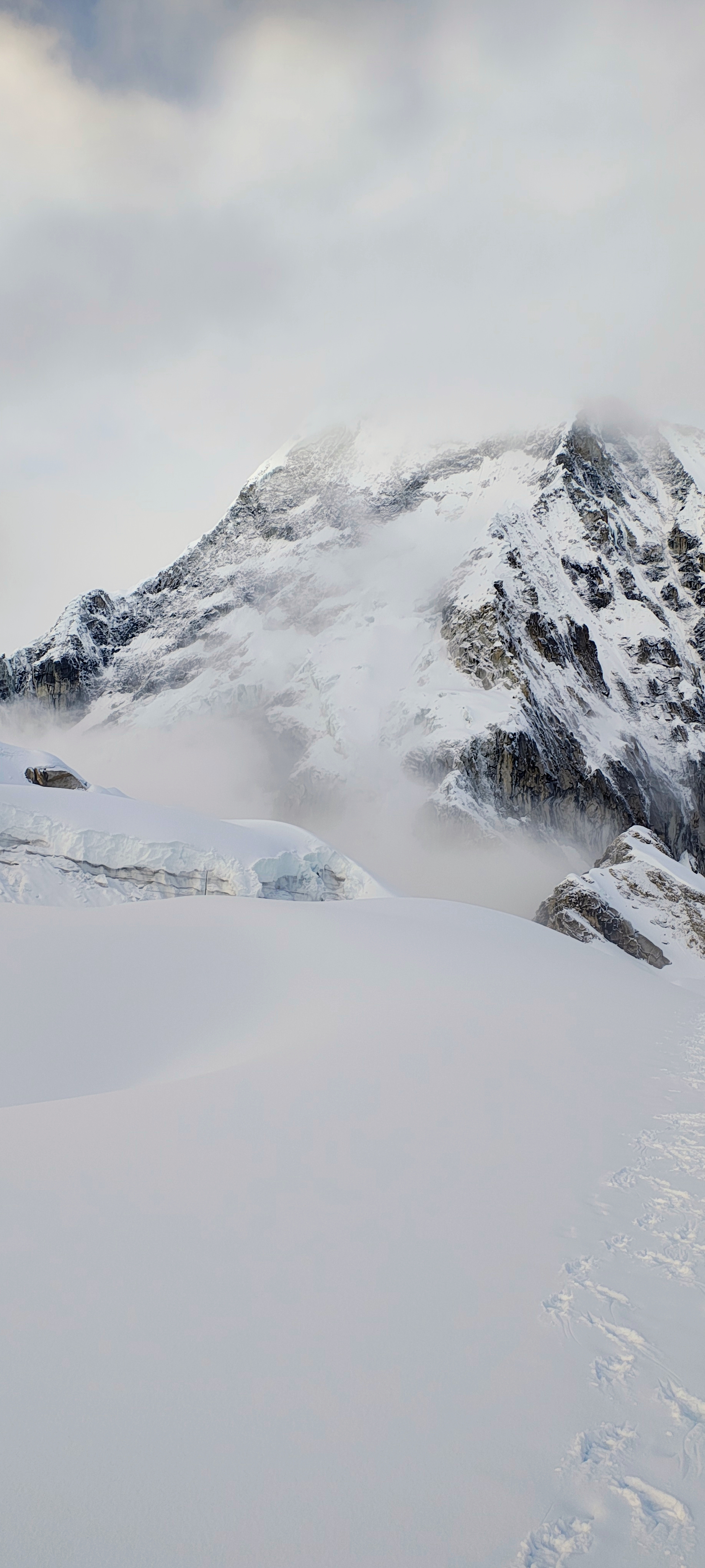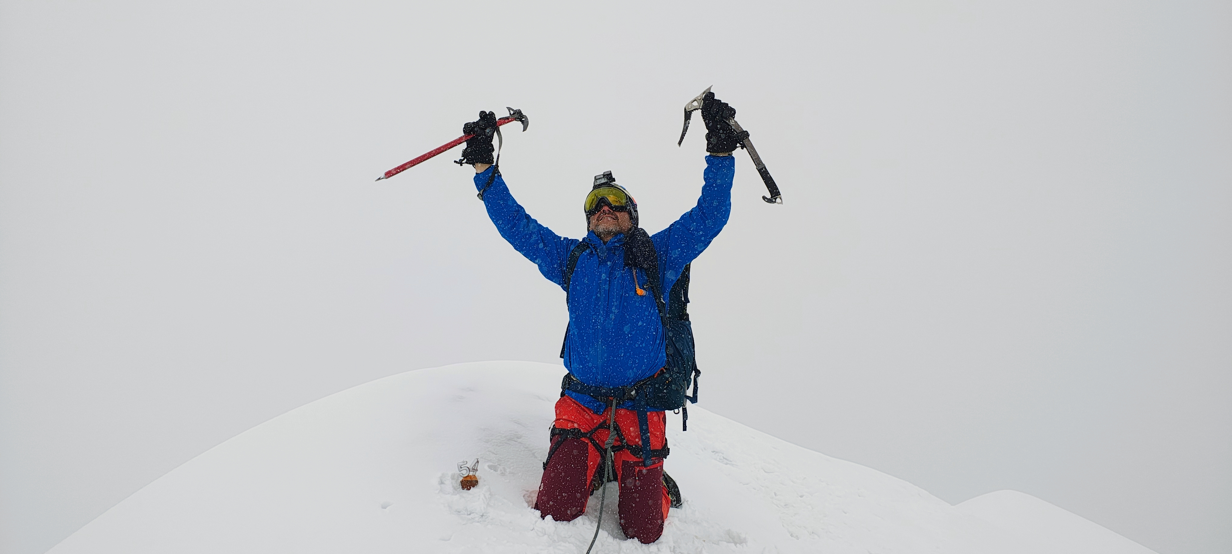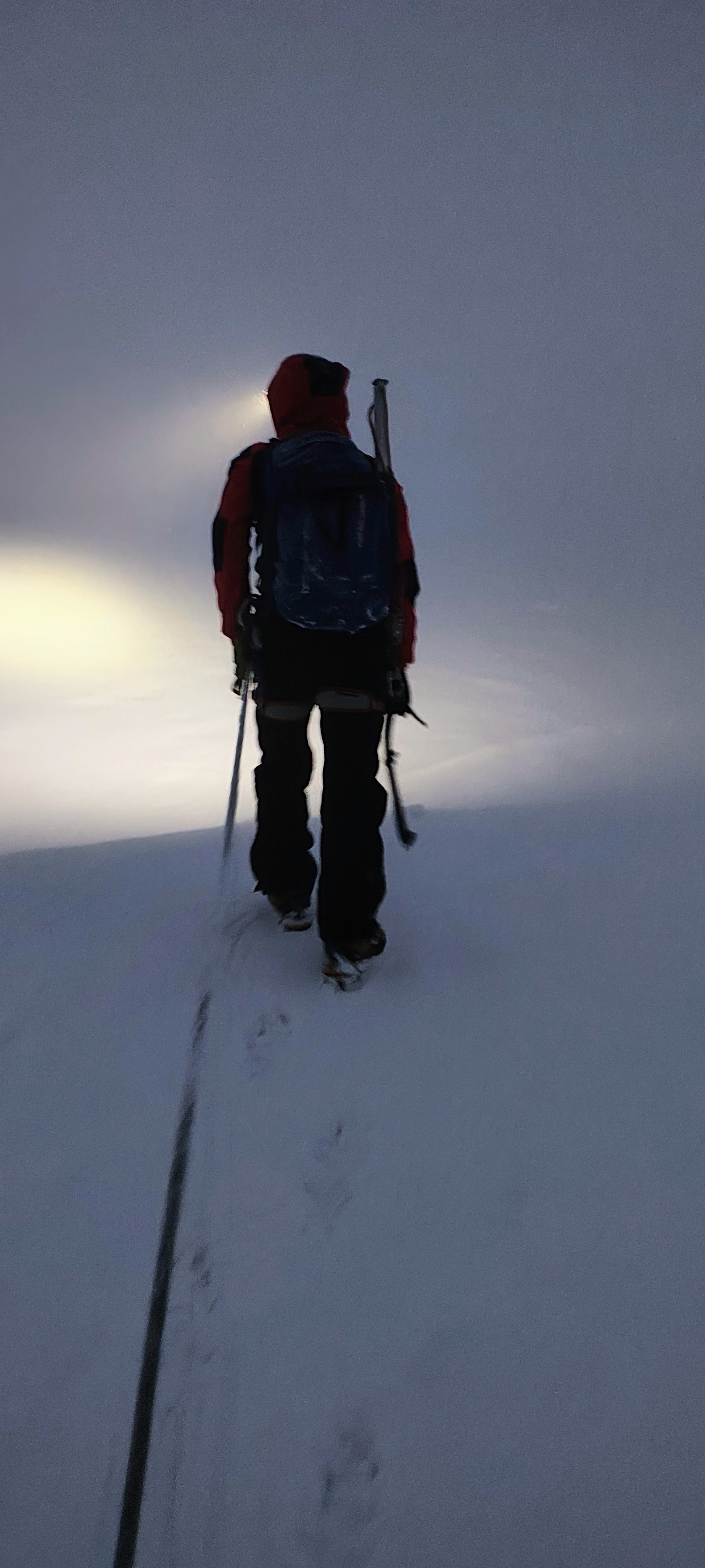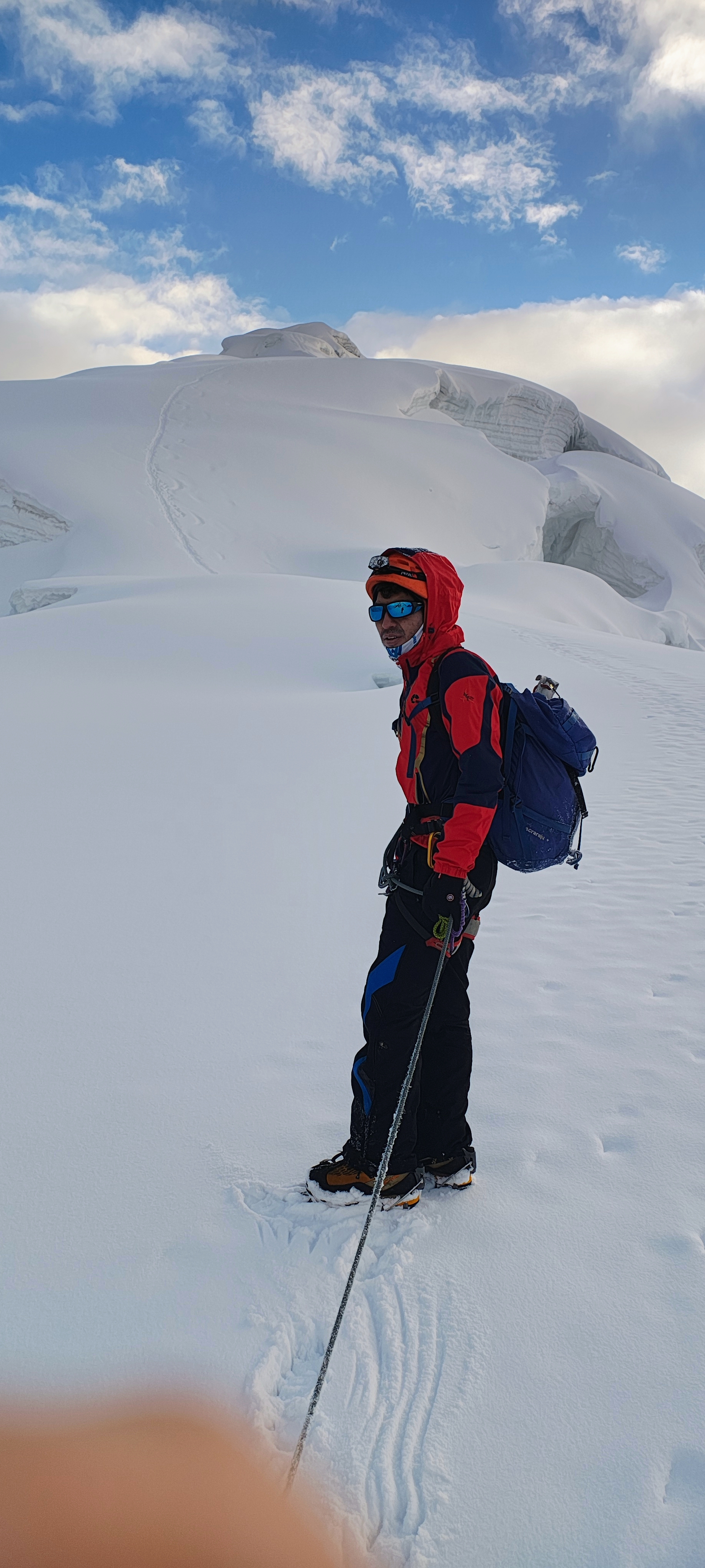 Nos acercamos a la cumbre y hay una pared de nieve, se hace un poco largo, me doy cuenta que voy a perder la apuesta, así que voy más despacio para perderlo por mucho, aunque la realidad es que me estaba asfixiando…