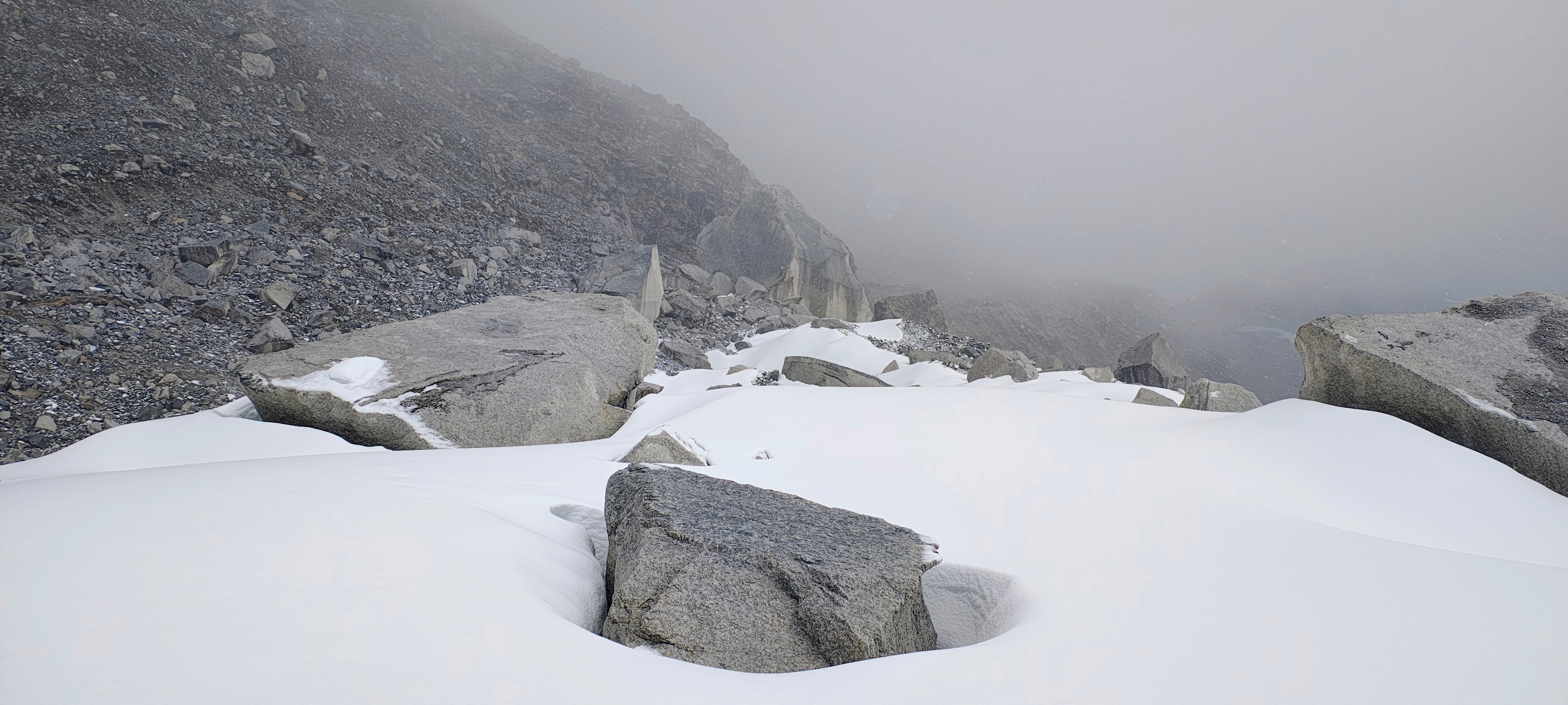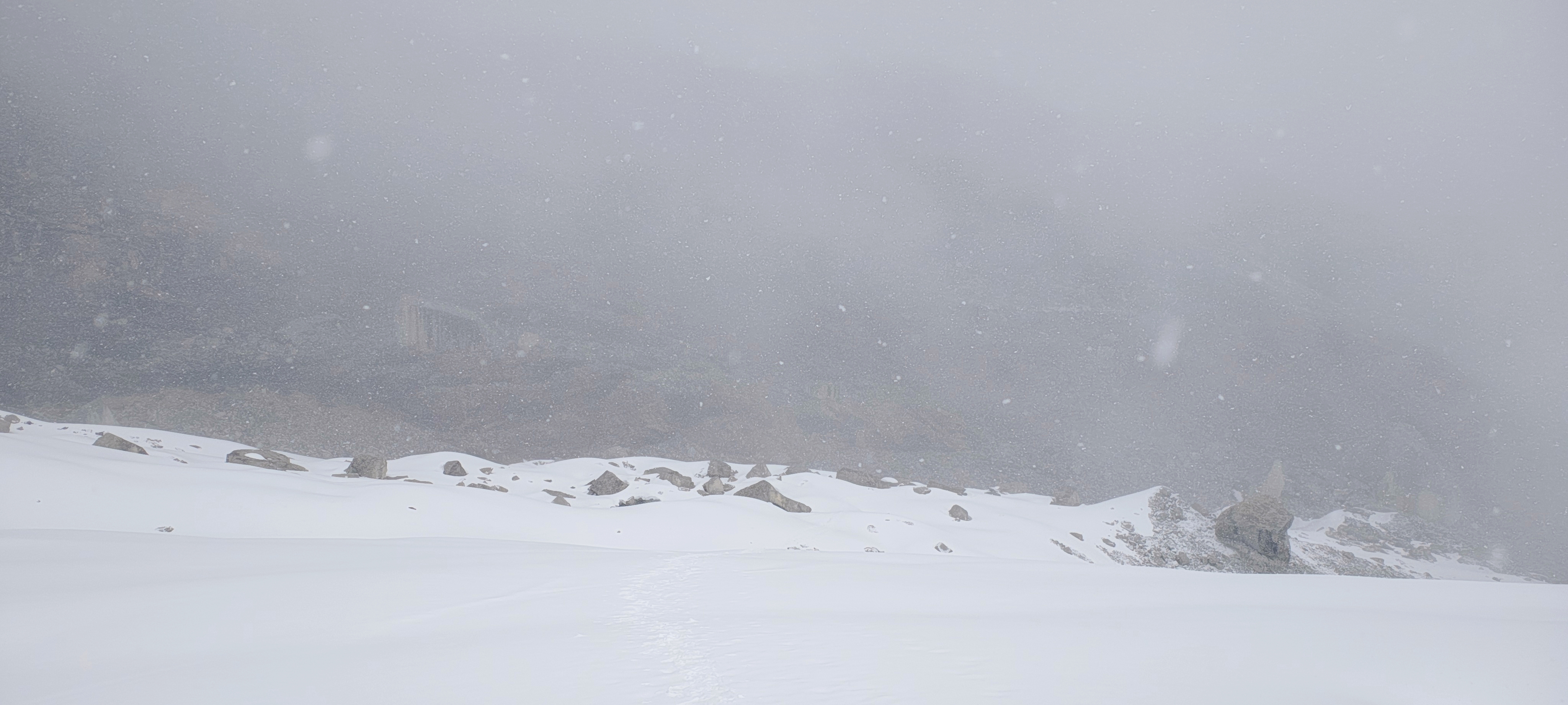 Y en el descenso se cierra del todo y comienza nevar cada vez más fuerte.