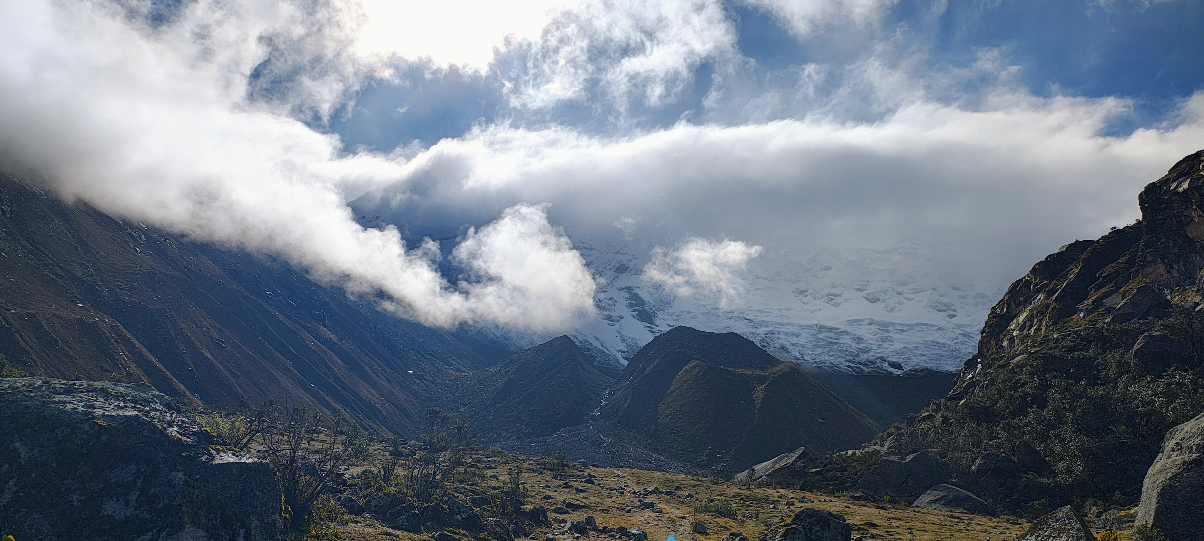 Y seguimos esperando sin abrirse, Hosterlin me contó que este tiempo no es normal en estas fechas, siempre está despejado desde Marzo hasta octubre que es verano aquí, me dice que se debe a la muerte de los tres estudiantes en el Nevado  del Artesonraju, la montaña está triste por la desgracia y llora por ello.