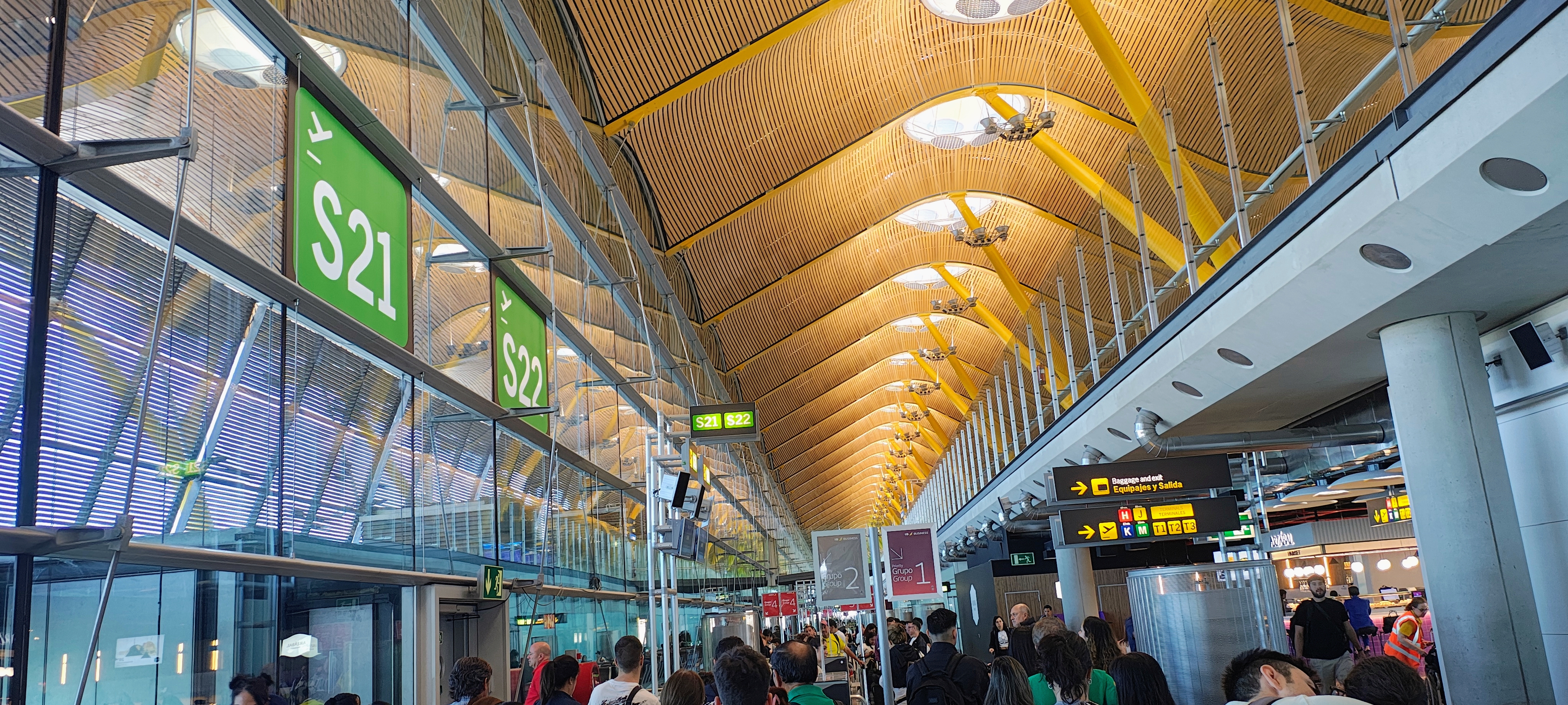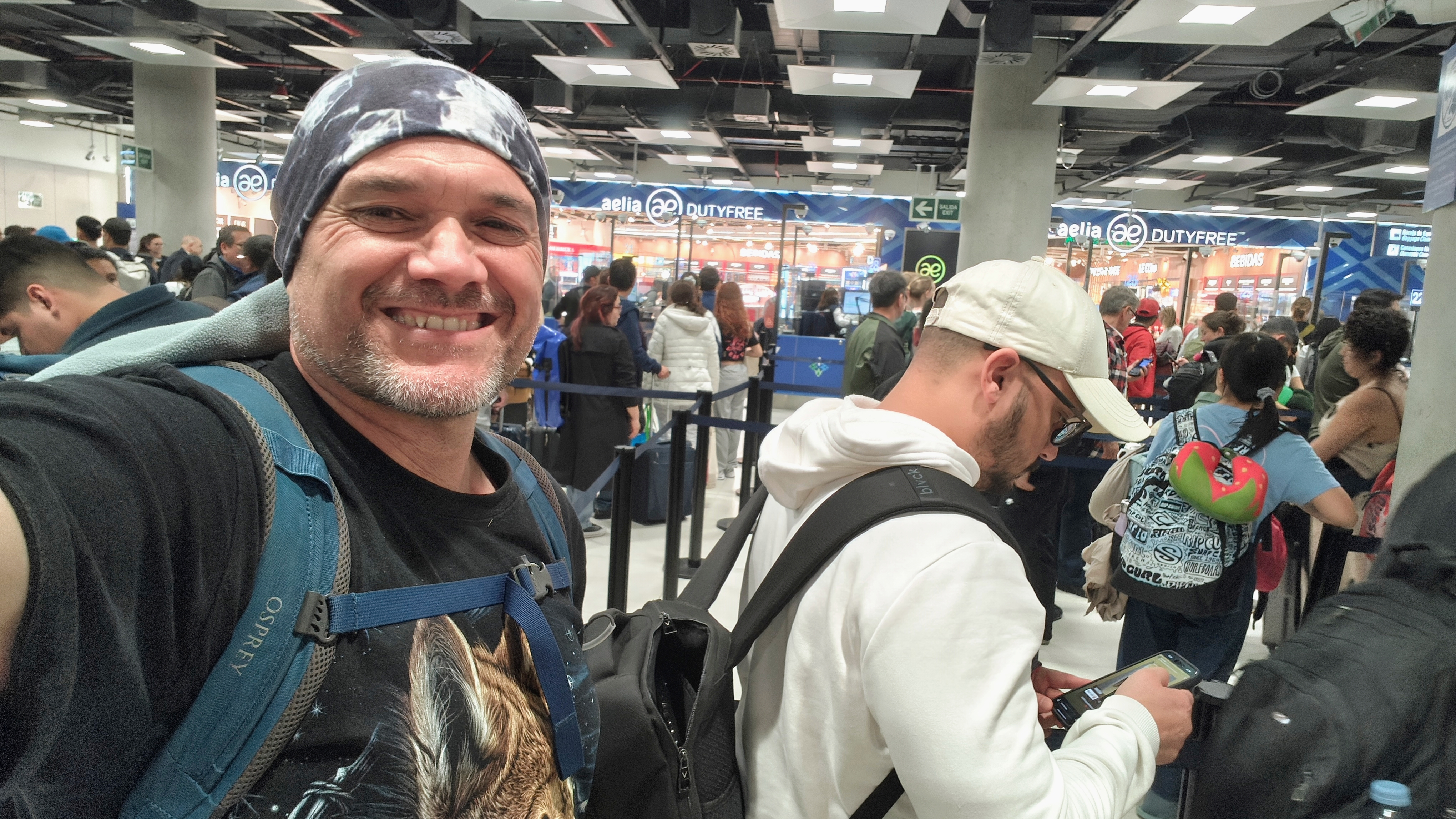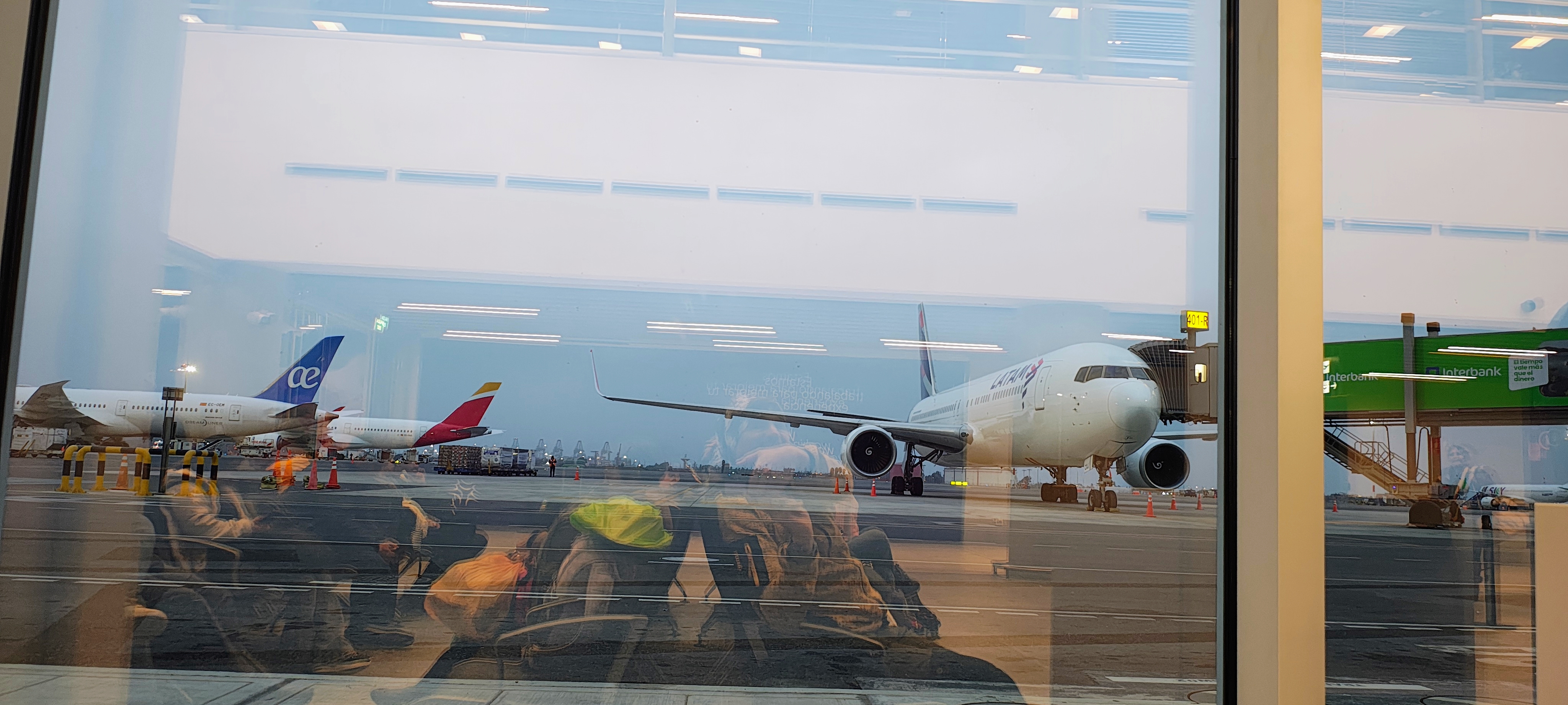 El avión salía a las once de la mañana, y tras dejar mi enorme petate lleno de cacharros para la nieve y el hielo en el mostrador de facturación me dirigí hasta la terminal satélite de la T4 de barajas, tras llevarme la pequeña sorpresa de que al comprar el billete en la aplicación “go to gate” pagué para tener ventanilla y luego en el mostrador de la compañía me dijeron que las aplicaciones no pueden vender asientos, lo hacen sólo las compañías aéreas, así que sin ventanilla, me colocaron en pasillo.