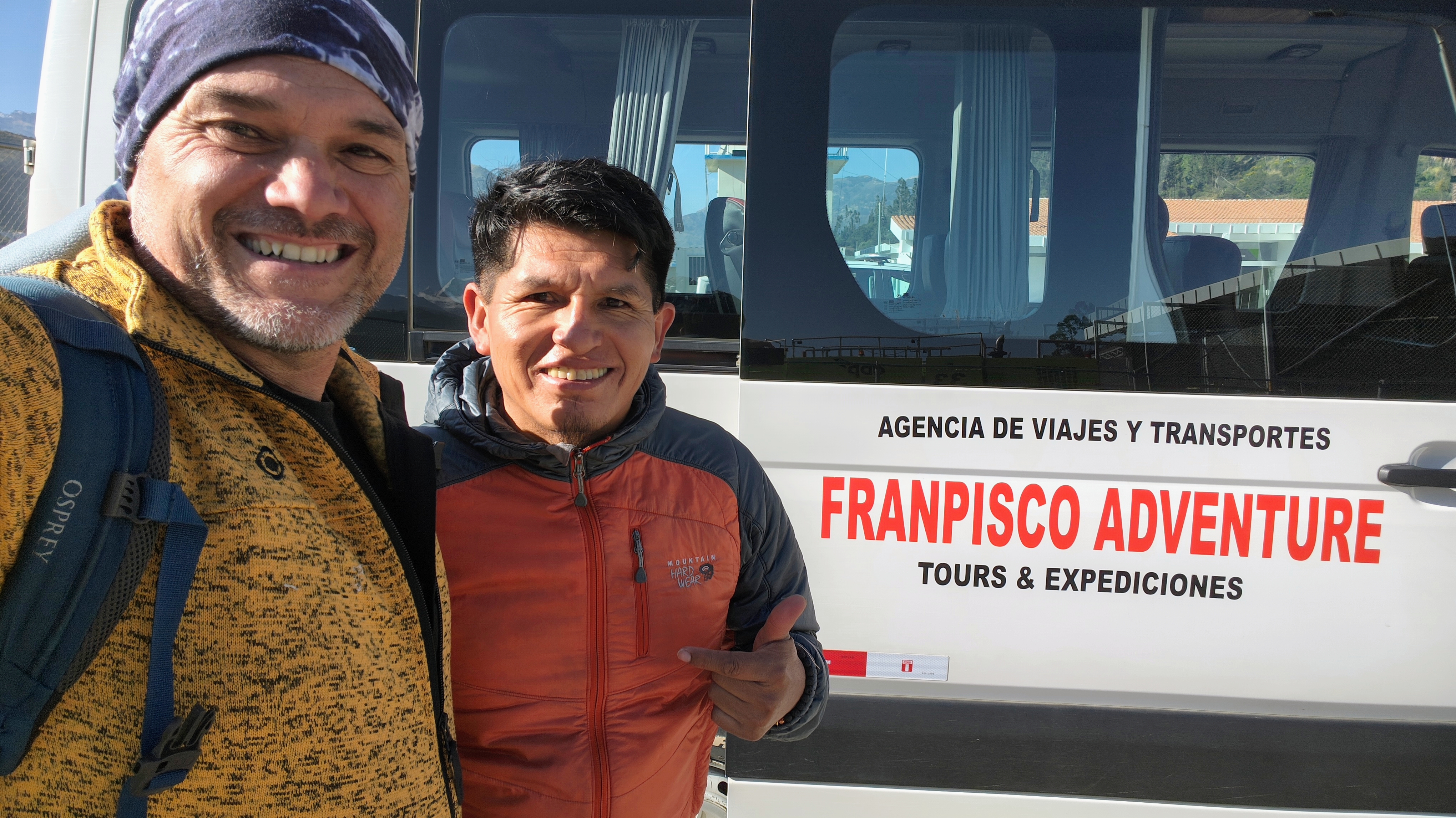 El avión despegaba a las 7.30 h, y dura 45 minutos, a las 8.15 h llego al aeropuerto, es impresionante la mole del Huascarán al bajarse del avión, con el cielo azul detrás, y más allá de la única cinta de equipajes del pequeño aeropuerto estaba Francisco esperándome, con su acento peruano y diciéndome repetitivamente tocayo, lo que me agradaba y hacía gracia.