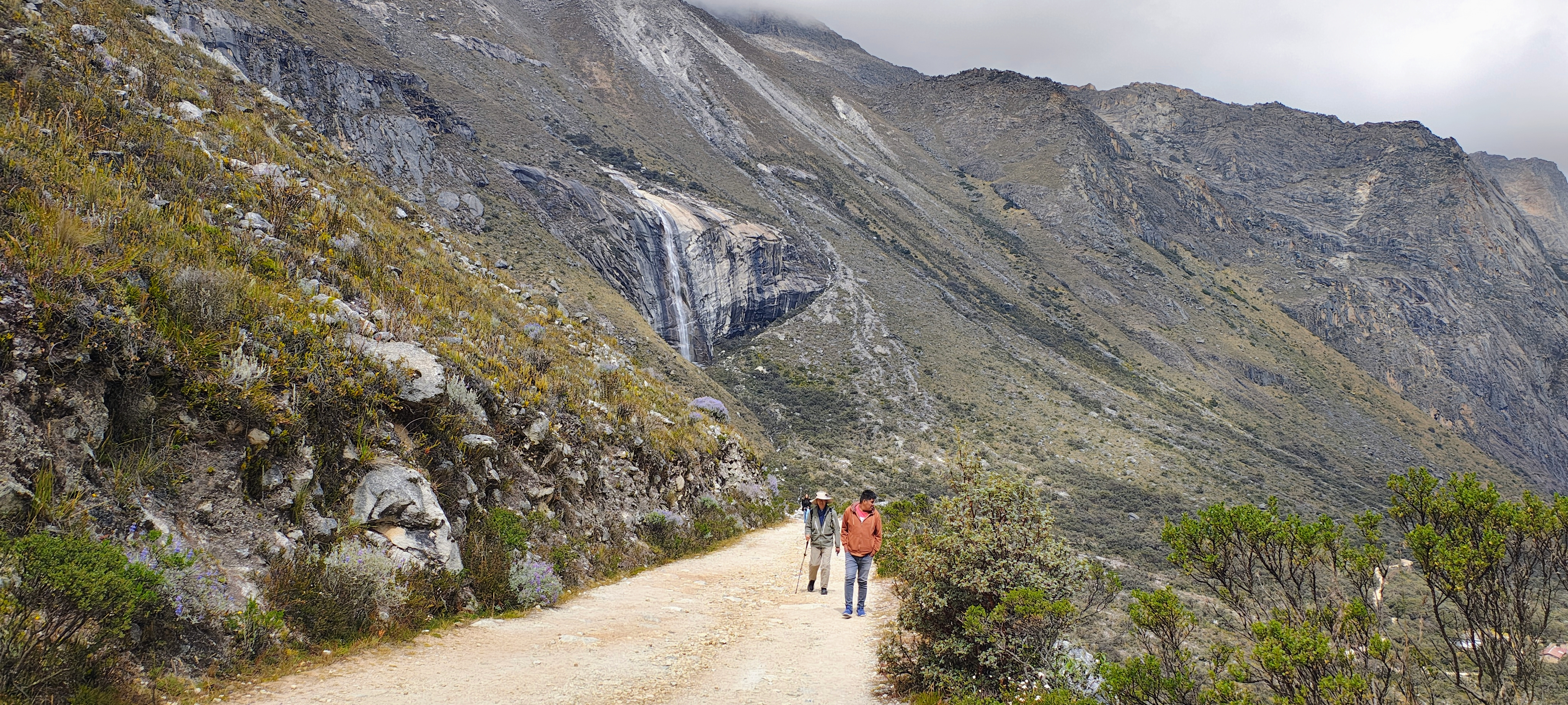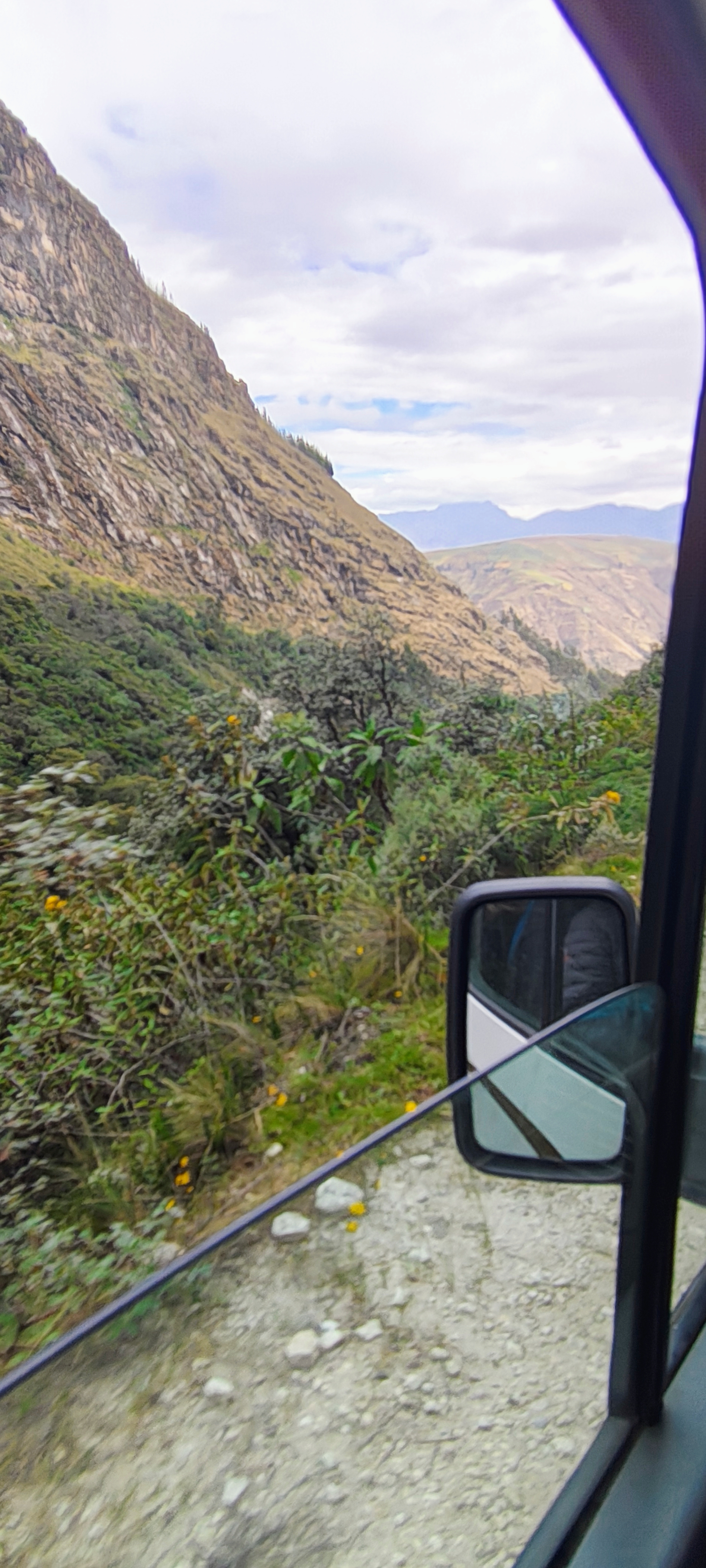 Volvemos en el autobús para empezar a ascender otra vez por una quebrada esta vez por la de Llanganuco, el autobús se retuerce en el camino de tierra ascendiendo al valle que nos espera.