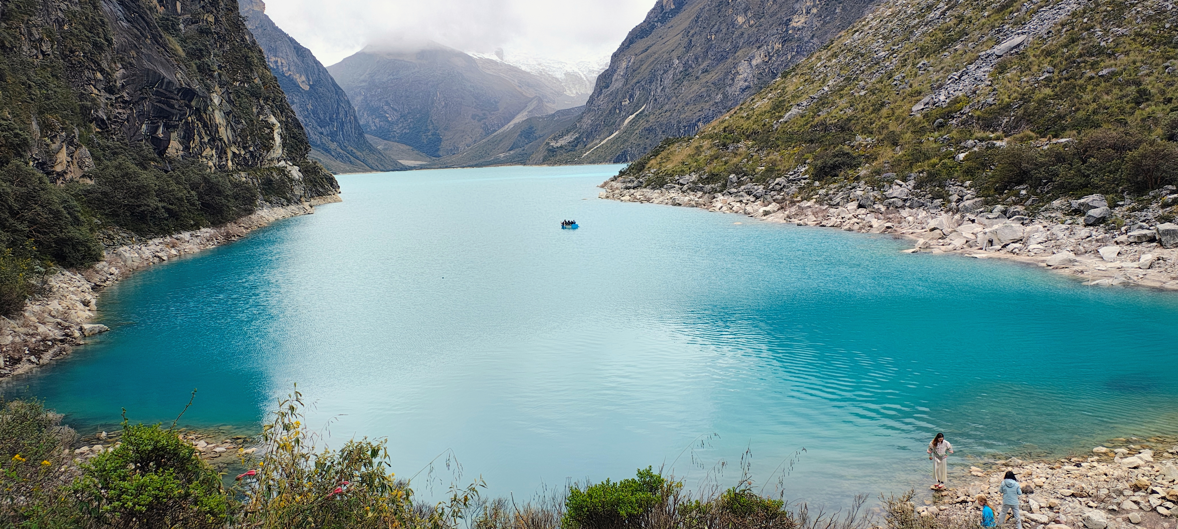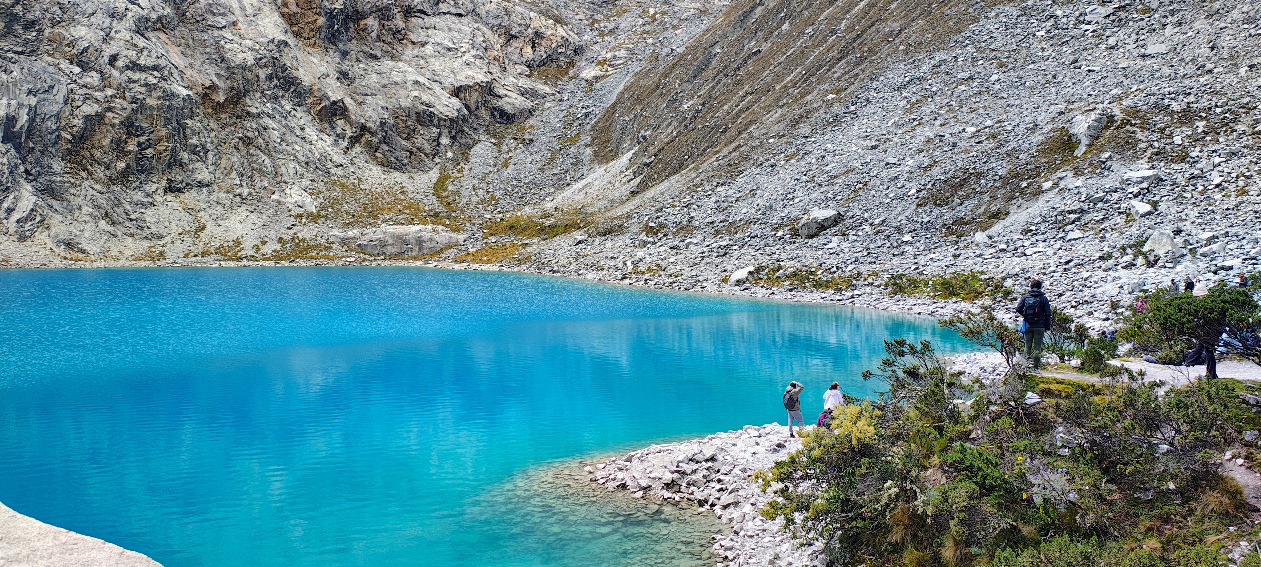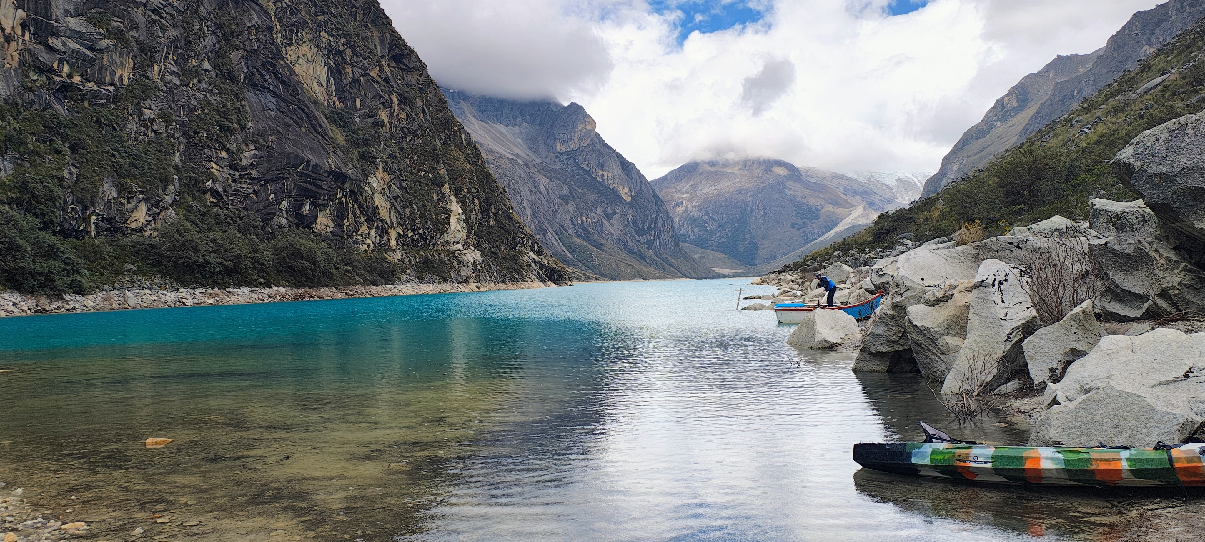 Bajamos al pie de la laguna donde se encontraban el resto de viajeros y otros de excursiones diferentes, te ofrecen montar en Kayak por 10 soles durante 15 minutos, pero preferimos disfrutar de las vistas, pues apenas en media hora nos volvemos, 4 horas de viaje de ida, dos en la laguna y cuatro de vuelta, demasiado viaje. Empieza a llover débilmente, no veremos hoy las cumbres.