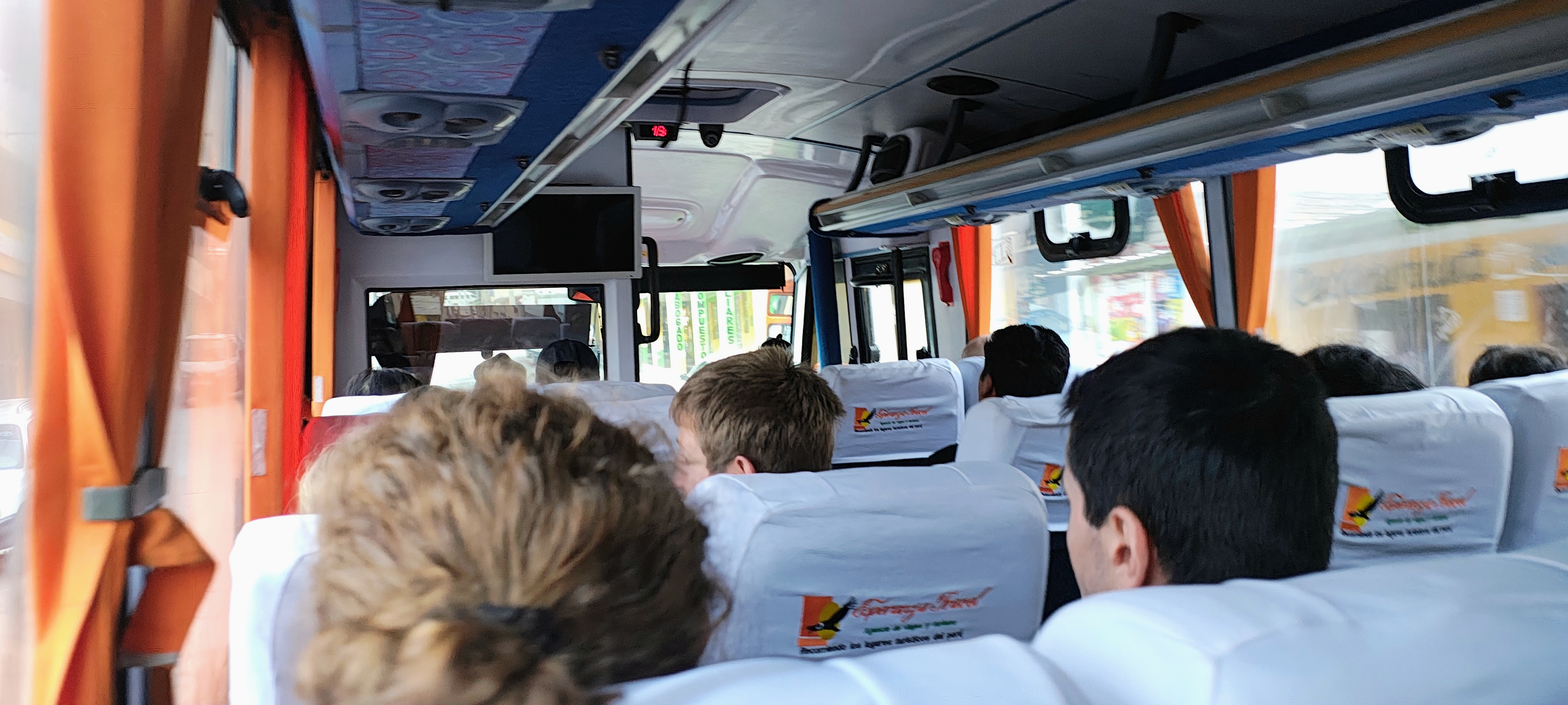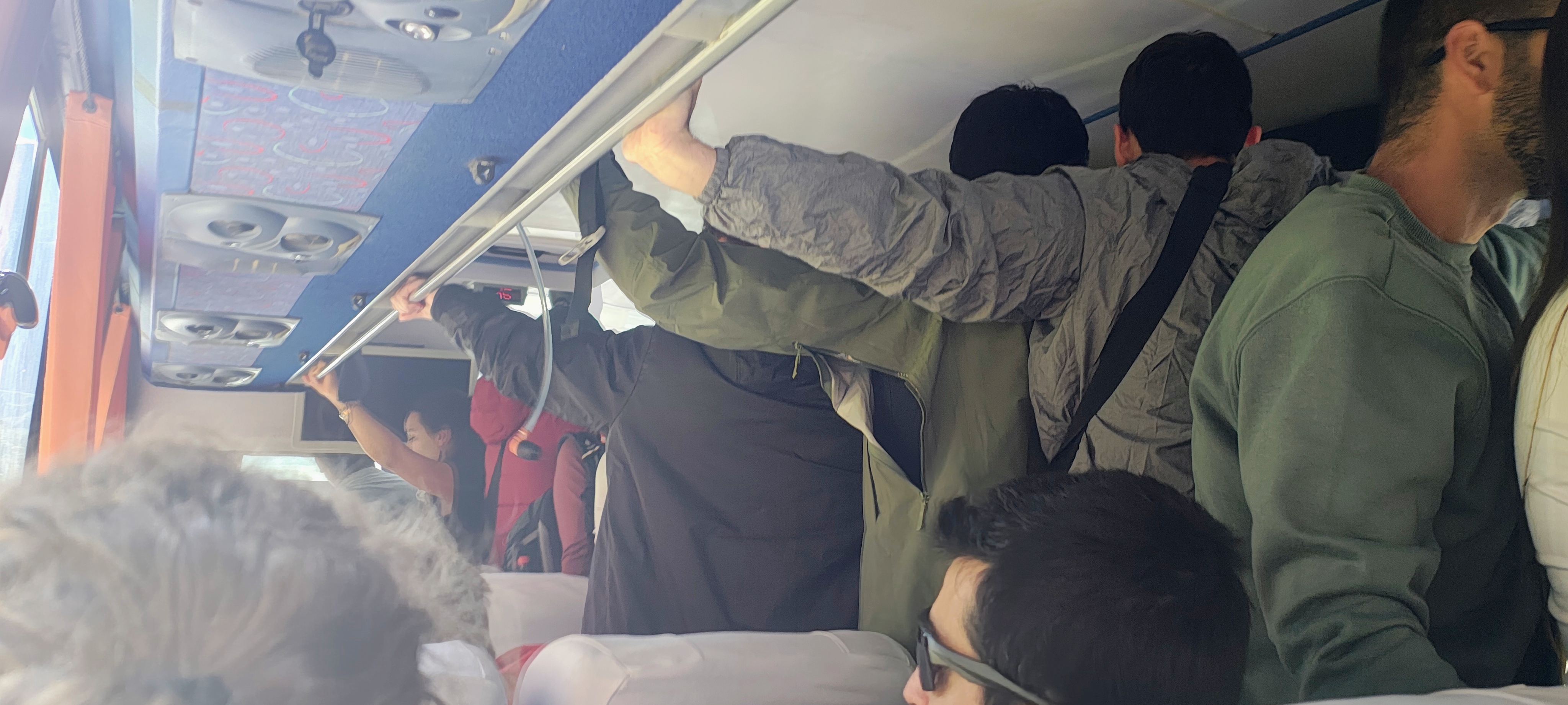 Subimos y en poco volvemos a parar, el otro autobús de la compañía se ha averiado y todos los ocupantes se suben en el nuestro, dicen que será por solo dos kilómetros, por fortuna no hay barranco en esta zona…