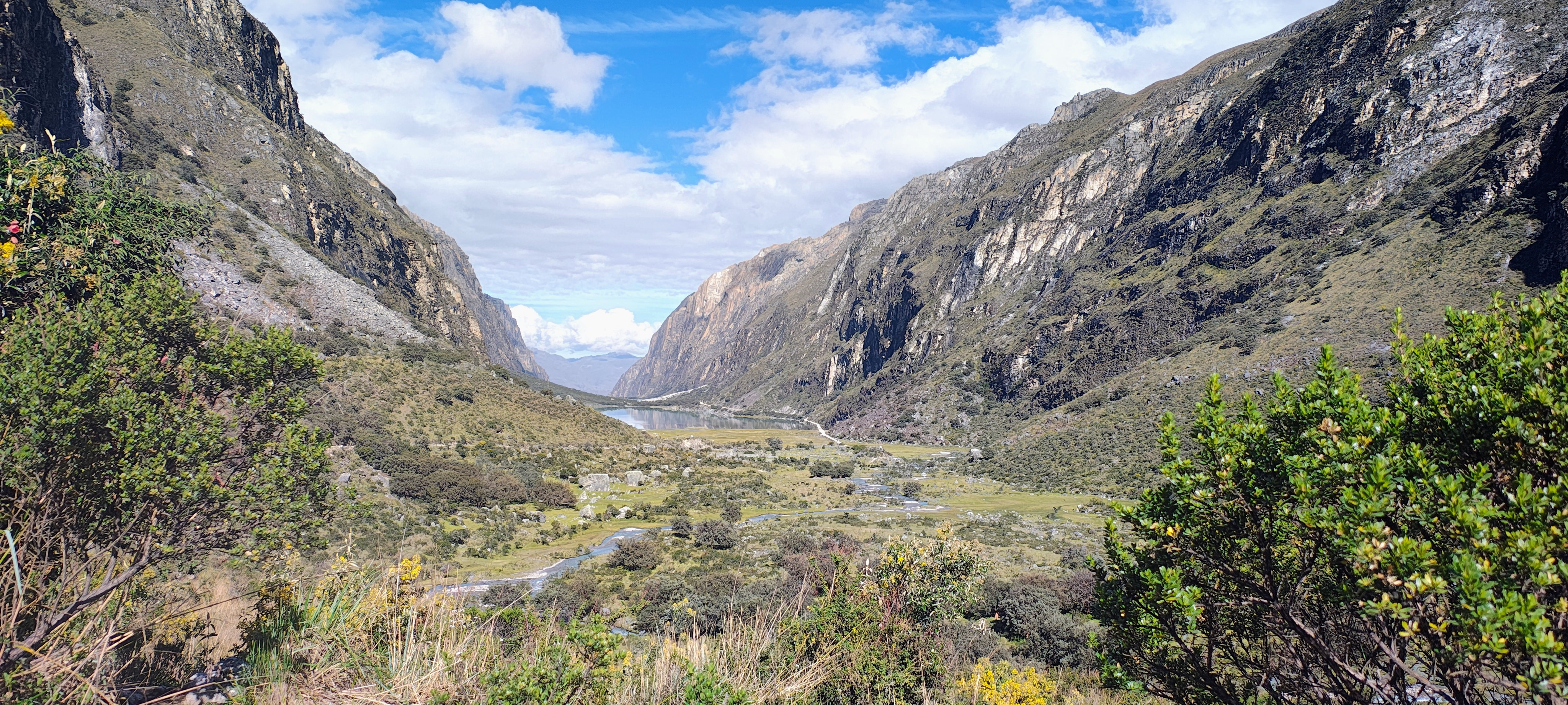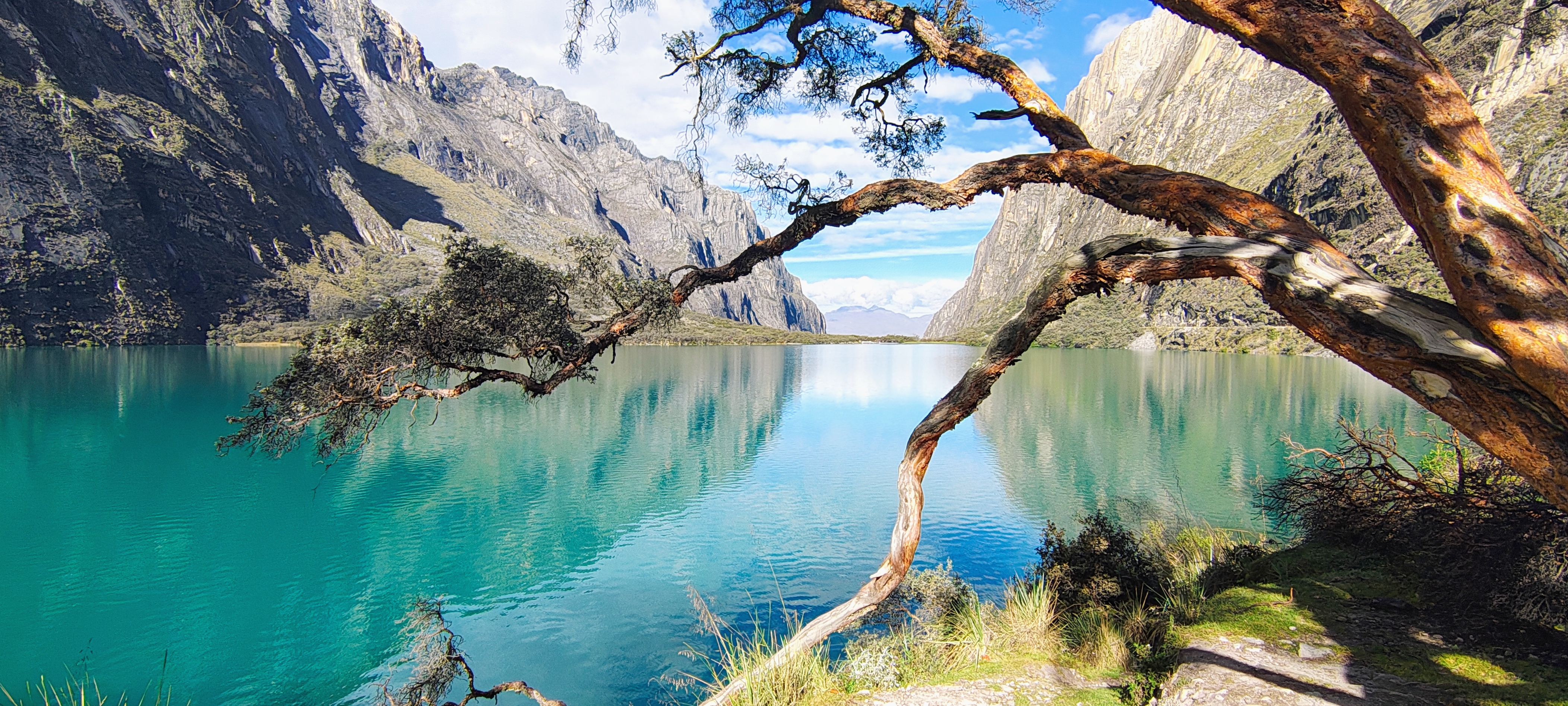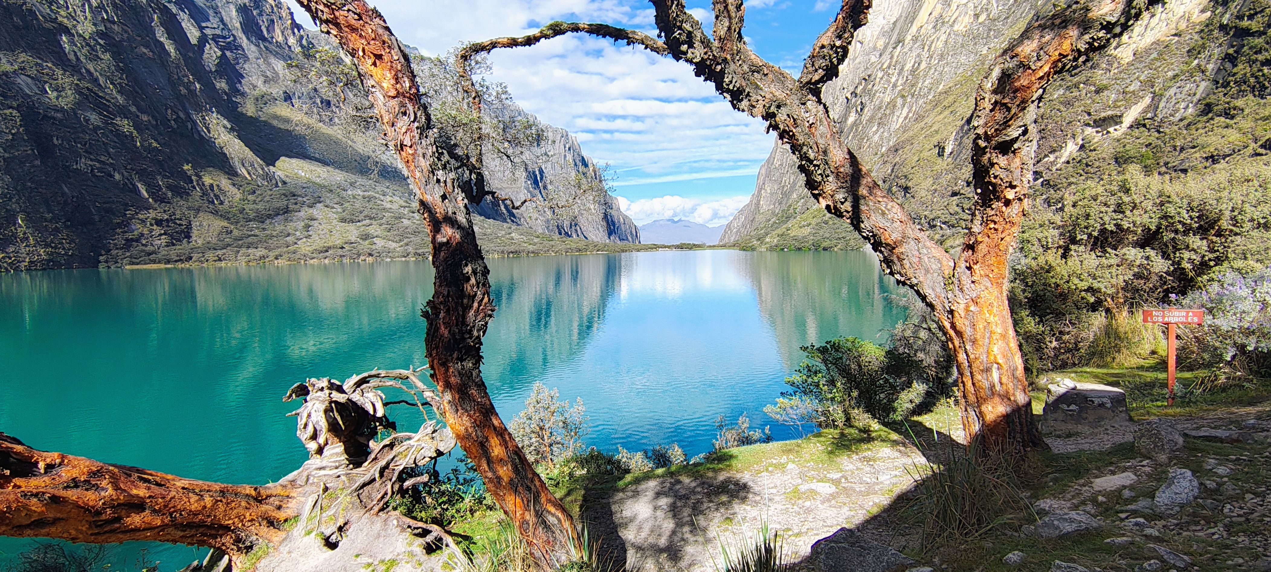 Llanganuco son dos lagunas enmarcadas por grandes paredes a ambos lados pero sin estar encajonadas, sus aguas verdosas nos advierten de la presencia de peces y fauna, pues son las lagunas de color azul turquesa las que no tienen peces por su elevado contenido en minerales, según nos había contado ayer Gina, las de Llanganuco tienen algunos destellos turquesa, así que tendrán peces a destellos…