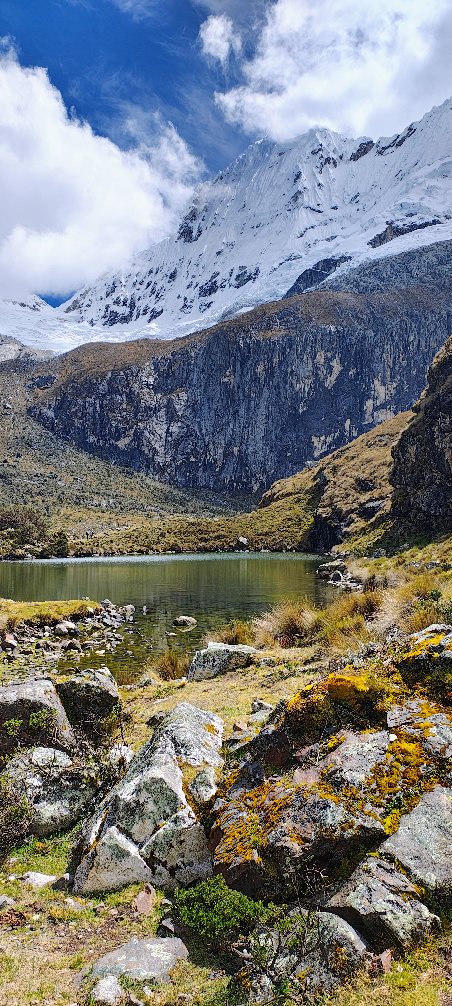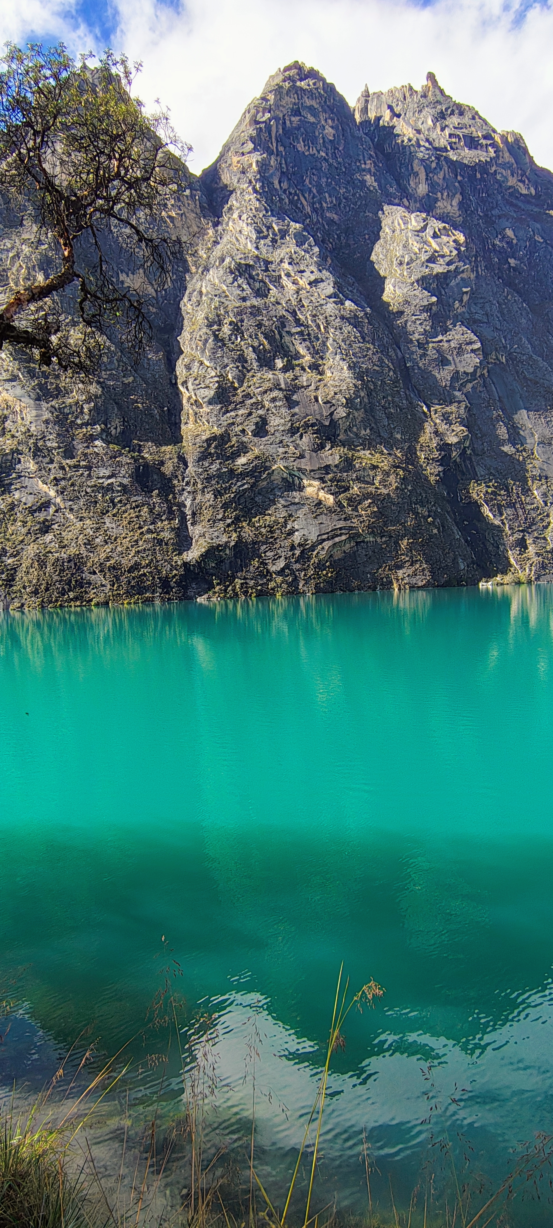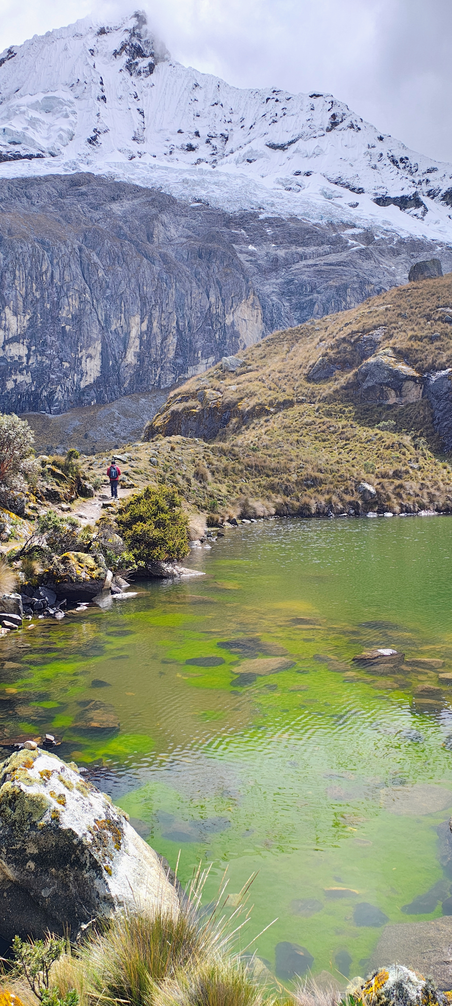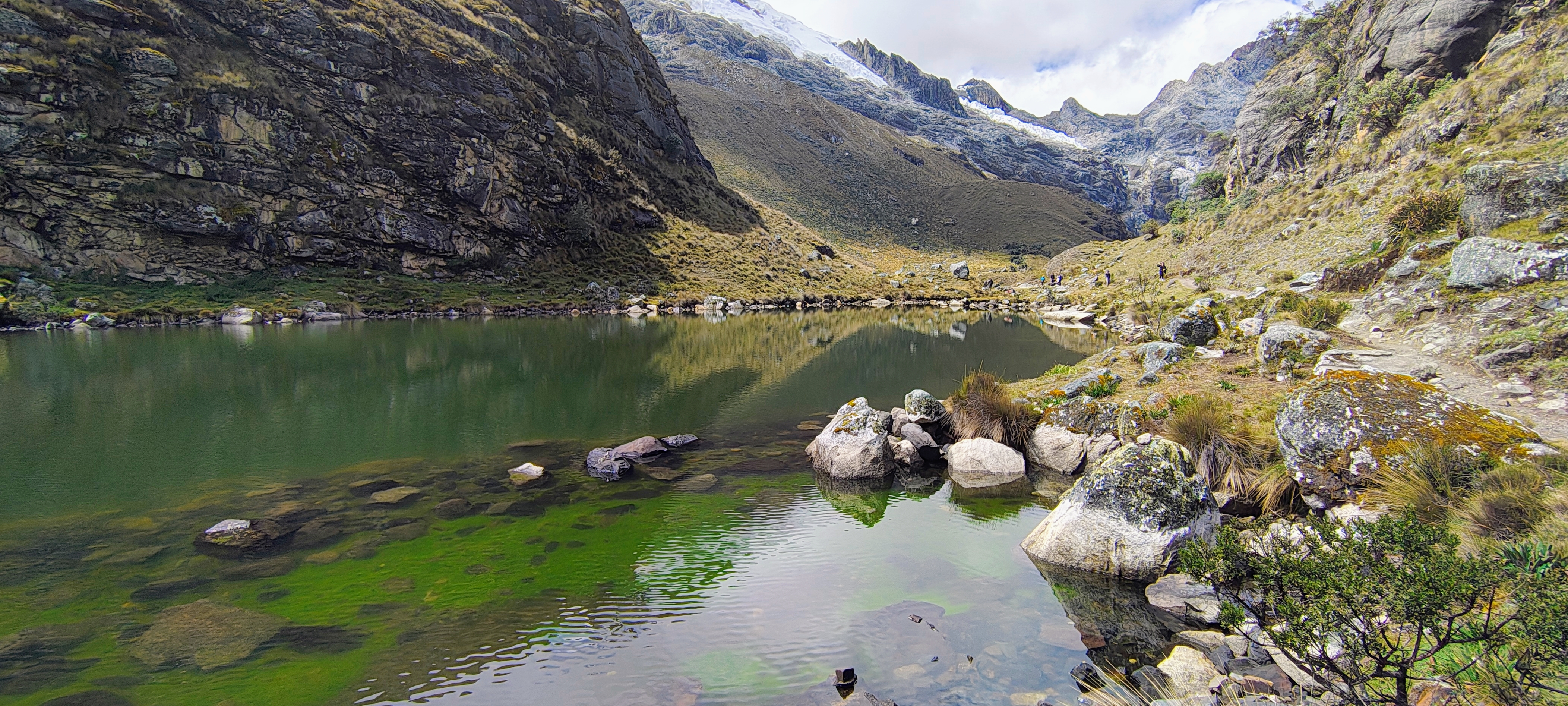 Llanganuco son dos lagunas enmarcadas por grandes paredes a ambos lados pero sin estar encajonadas, sus aguas verdosas nos advierten de la presencia de peces y fauna, pues son las lagunas de color azul turquesa las que no tienen peces por su elevado contenido en minerales, según nos había contado ayer Gina, las de Llanganuco tienen algunos destellos turquesa, así que tendrán peces a destellos…