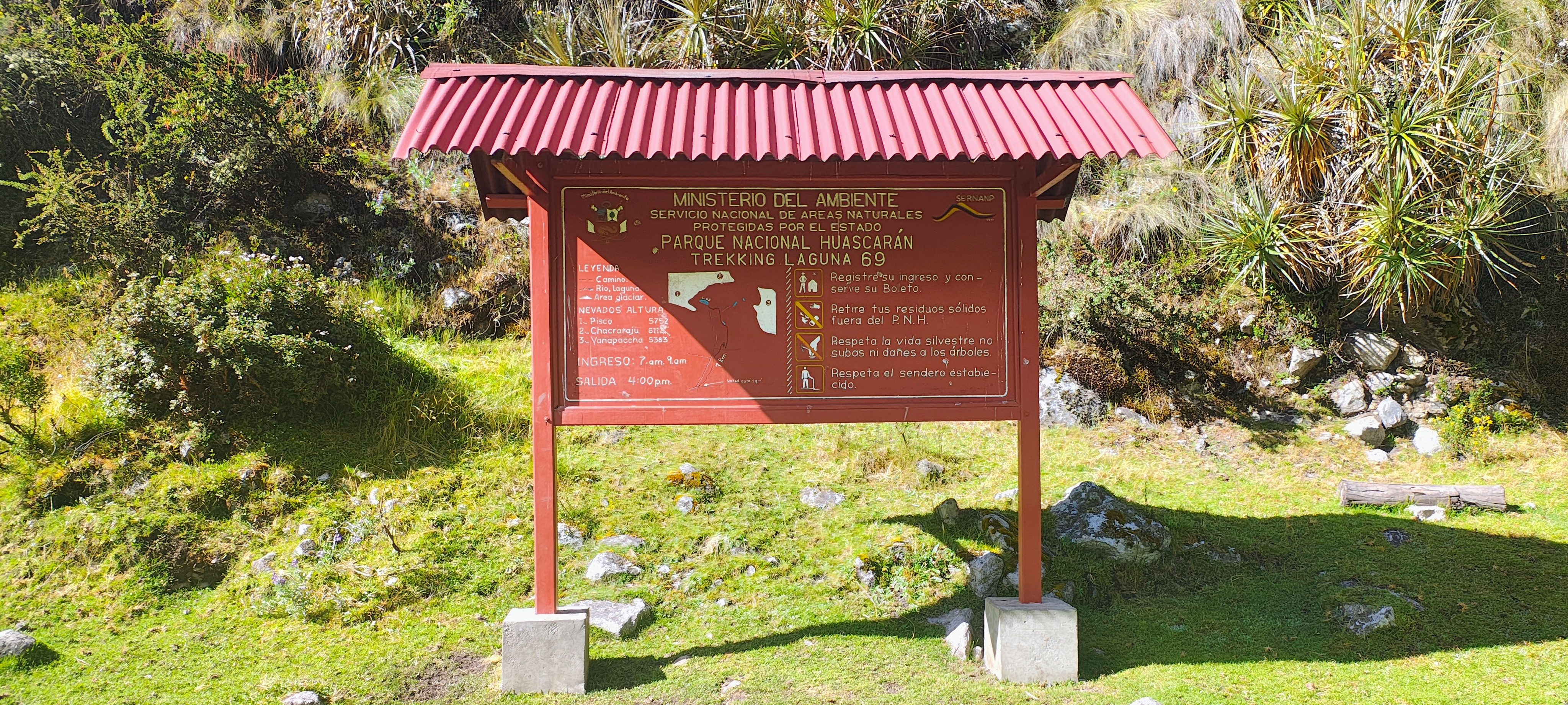 Tras continuar nos paramos en la entrada al parque donde tuvimos que pagar 10 soles en la barrera del Parque nacional del Huascarán en la zona central de la Cordillera Blanca.