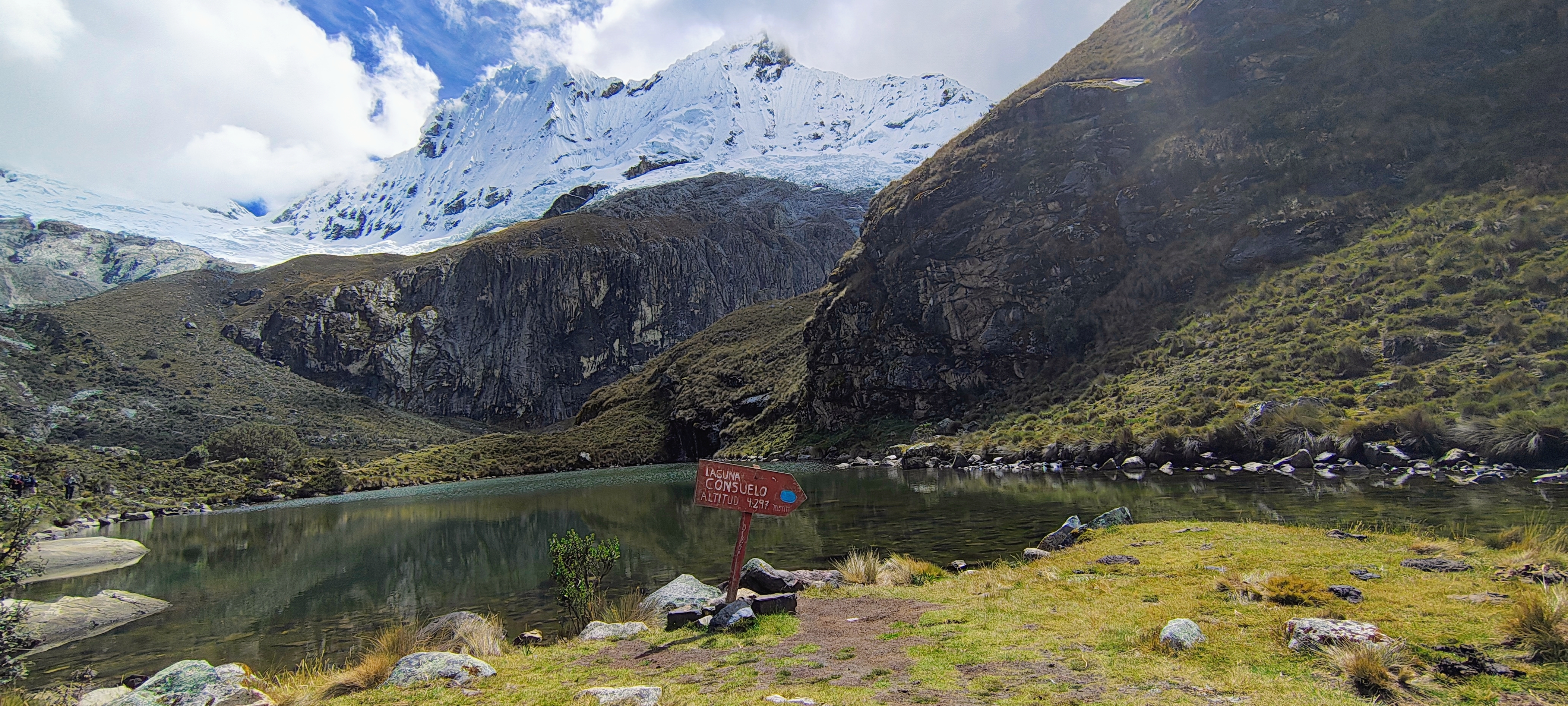 Salgo a otra zona llana y en medio está la pequeña laguna de Consuelo, unas fotos y sigo avanzando.