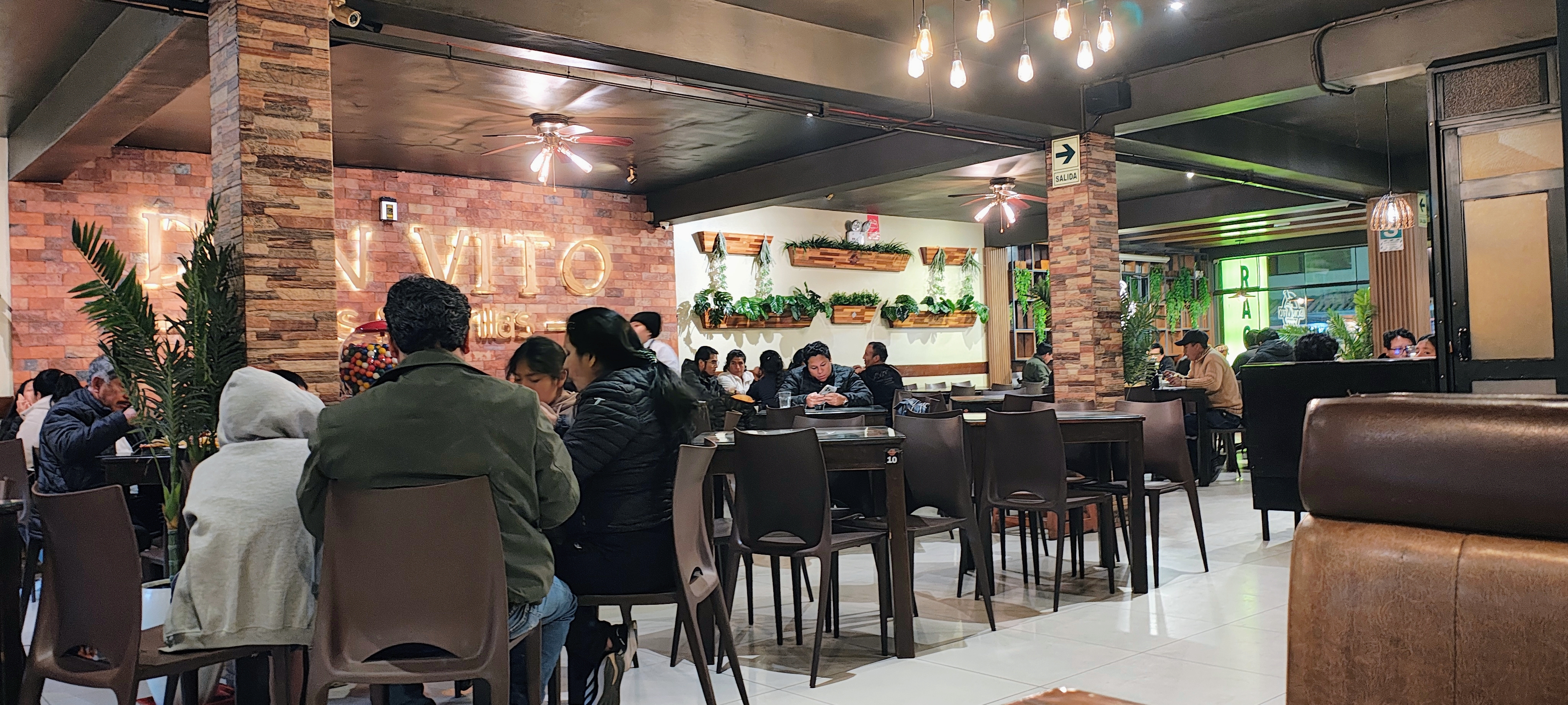 Me despido de Luz, de su marido, de Valerie y de Anastasia, me vuelvo al hotel, tras la ducha bajo y subo, pues pared con pared hay un restaurante de pollos asados llamado Don Vito, donde me ponen pollo con patatas fritas y anticucho (corazón a la plancha en un pincho), será mi única comida del día tras los huevos fritos.