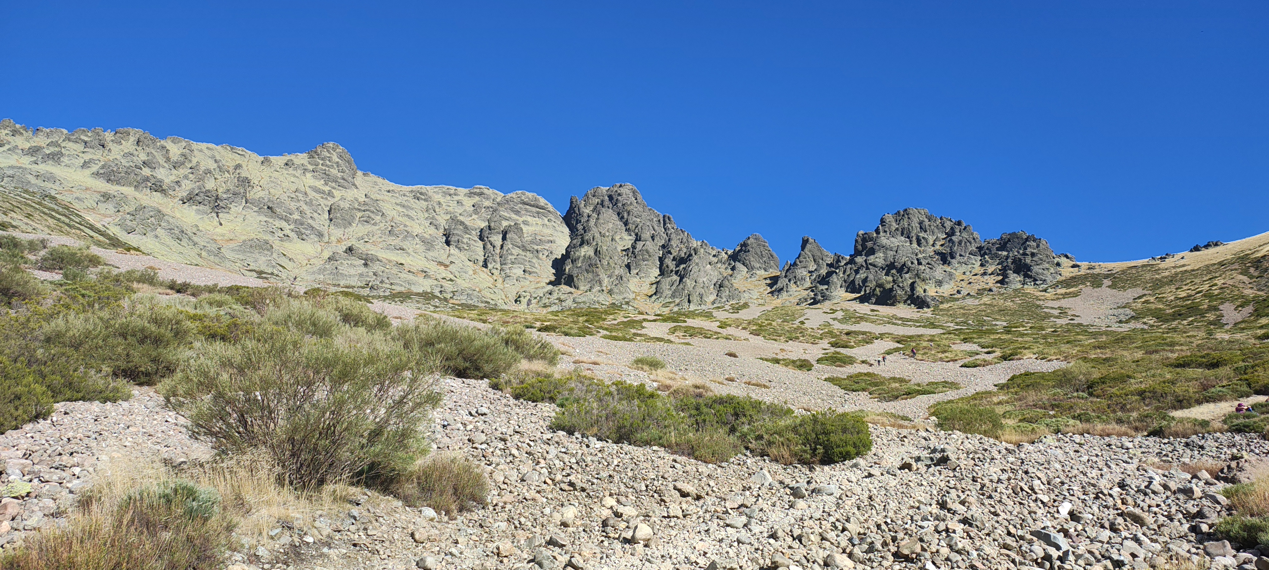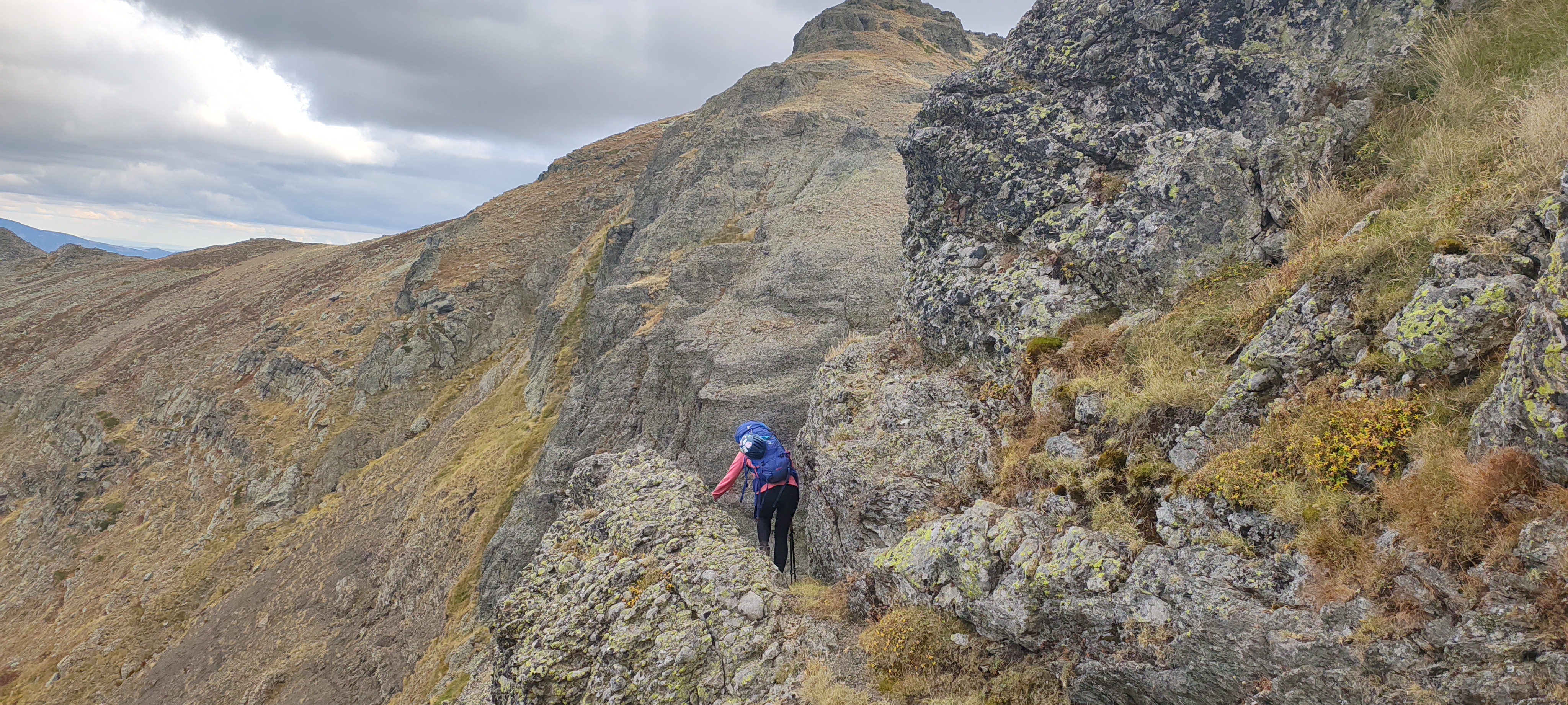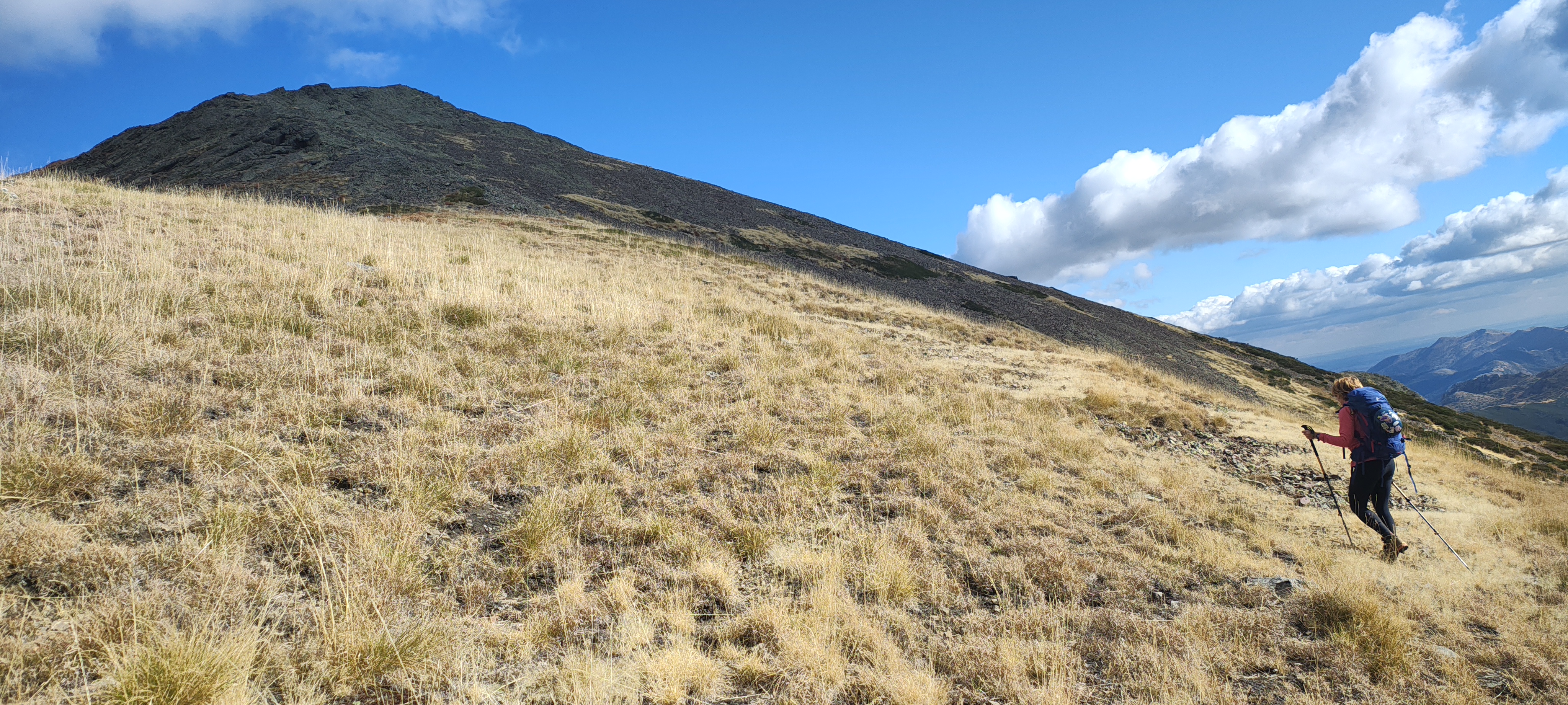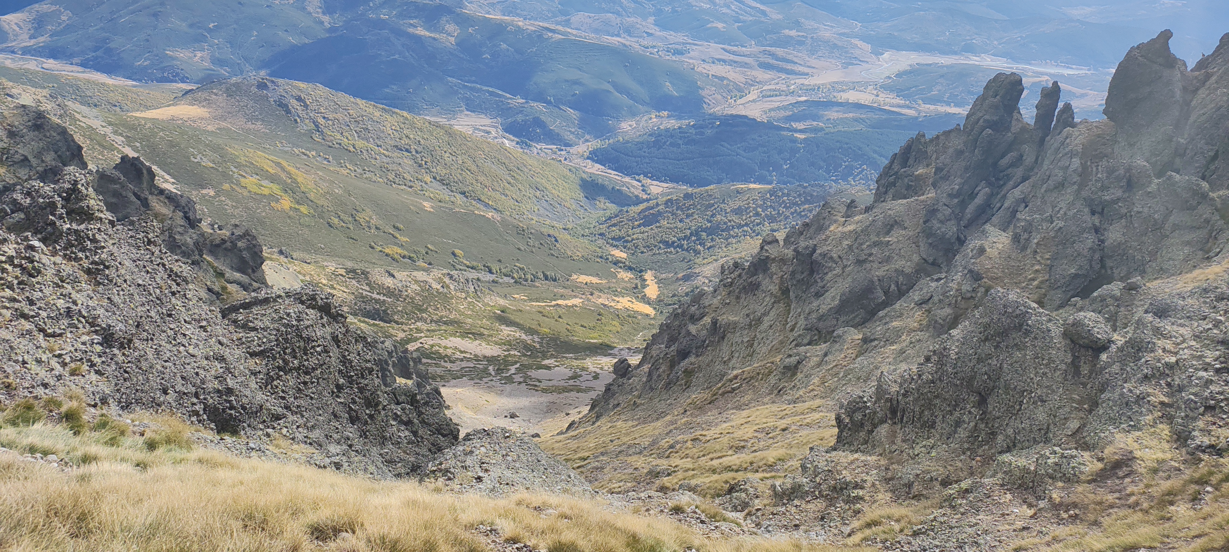 Hay bajo nosotros un collado con un paso rocoso, y al otro lado está el Monte de las Huelgas, puede ser peligroso pasar, eso me pone bastante, así que intentaremos cruzar hasta la otra cumbre.