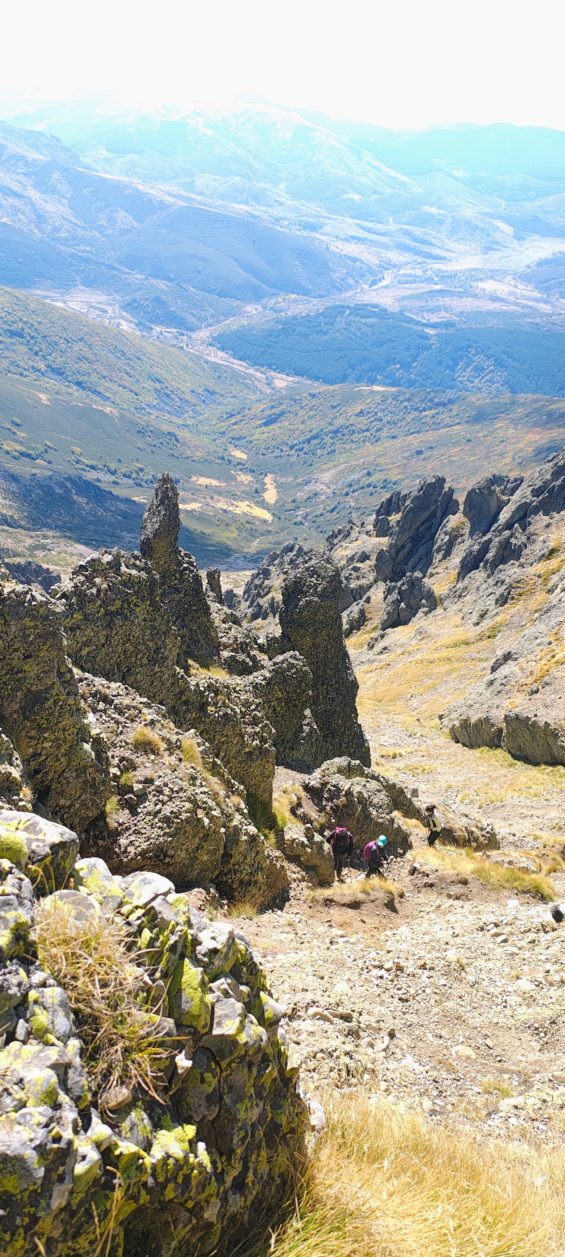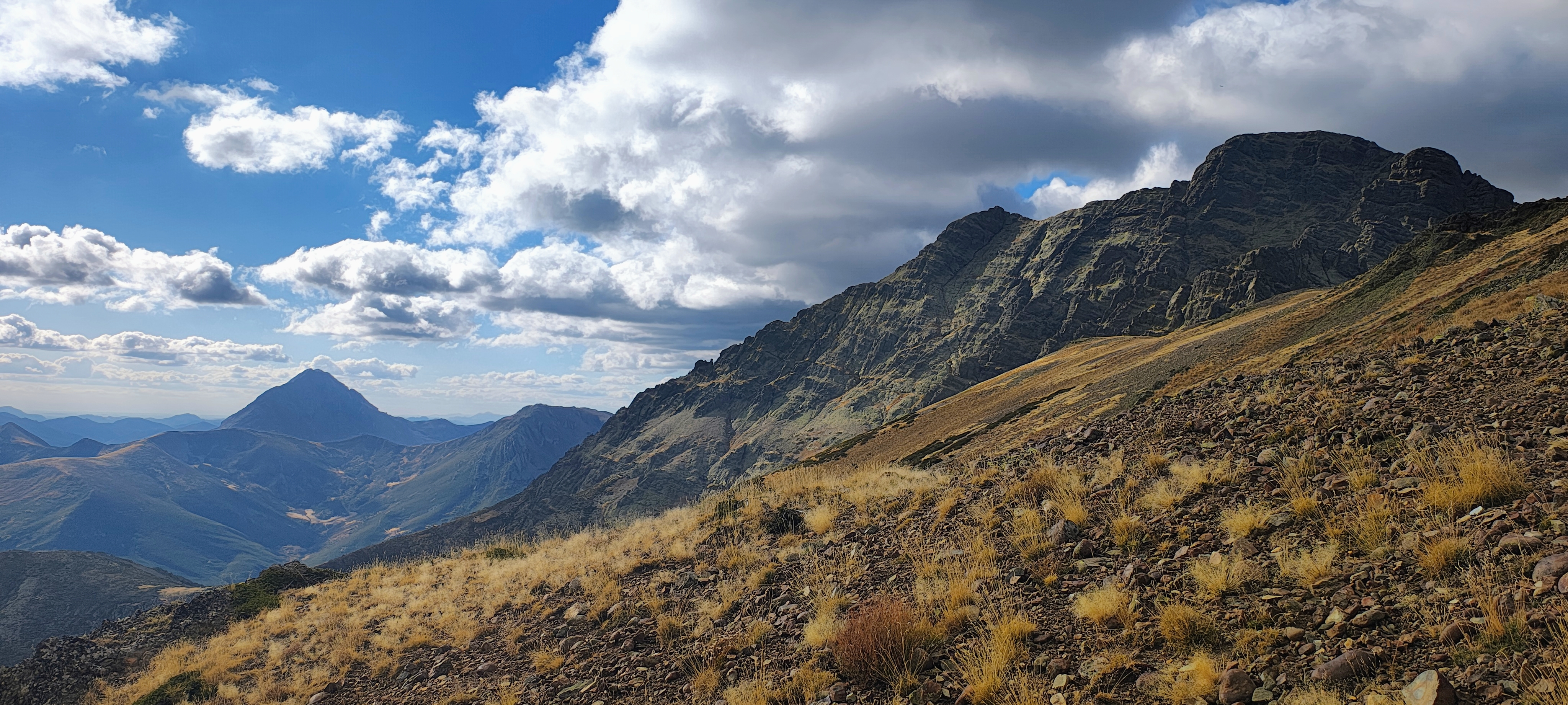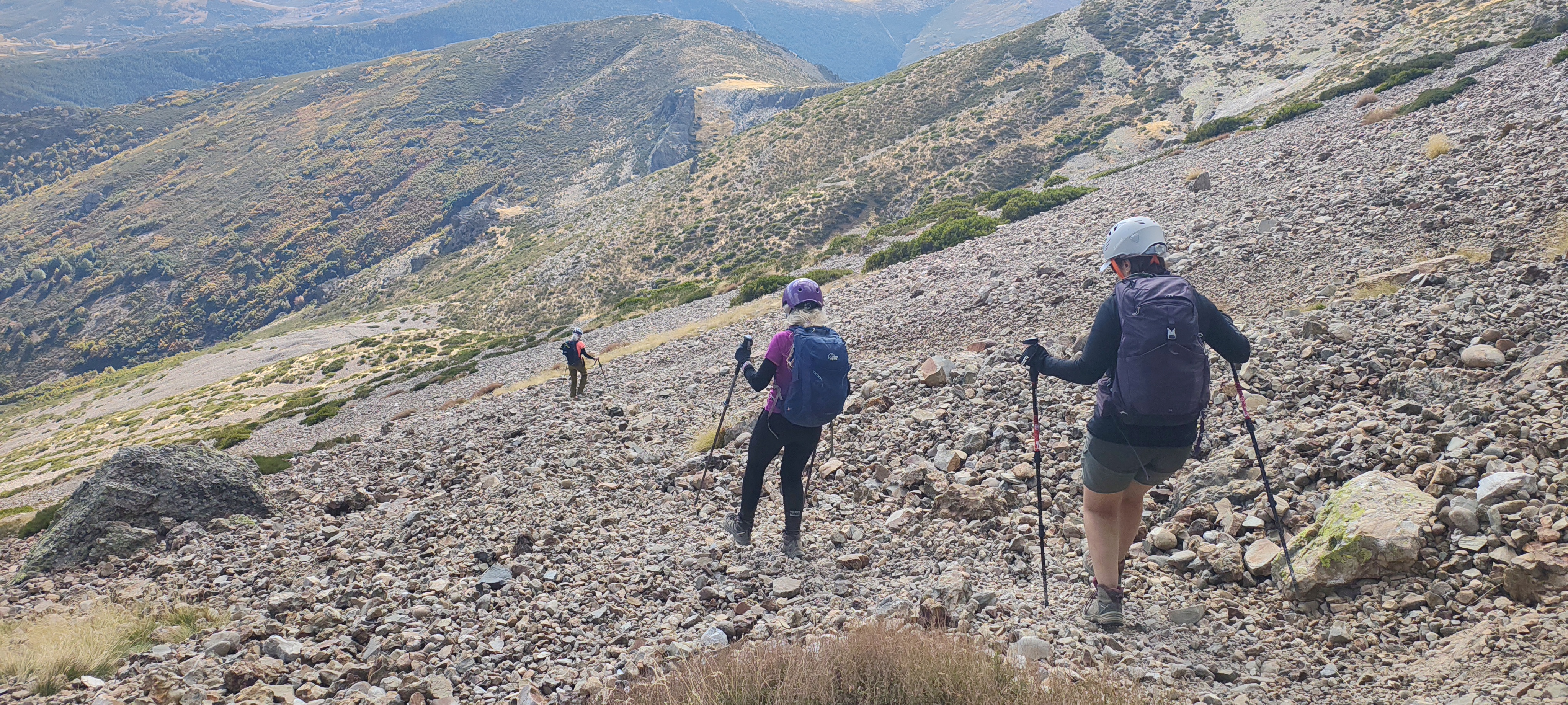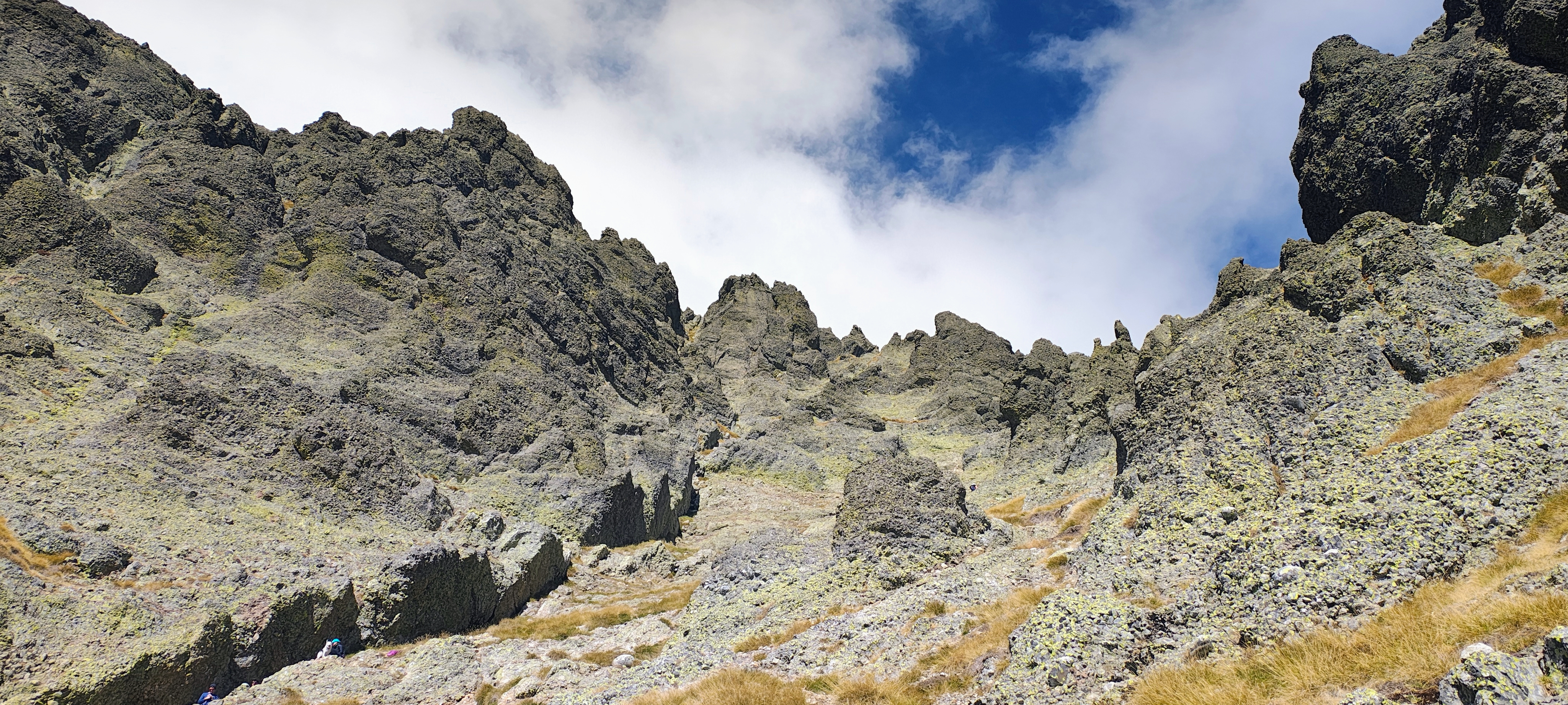 Hay bajo nosotros un collado con un paso rocoso, y al otro lado está el Monte de las Huelgas, puede ser peligroso pasar, eso me pone bastante, así que intentaremos cruzar hasta la otra cumbre.