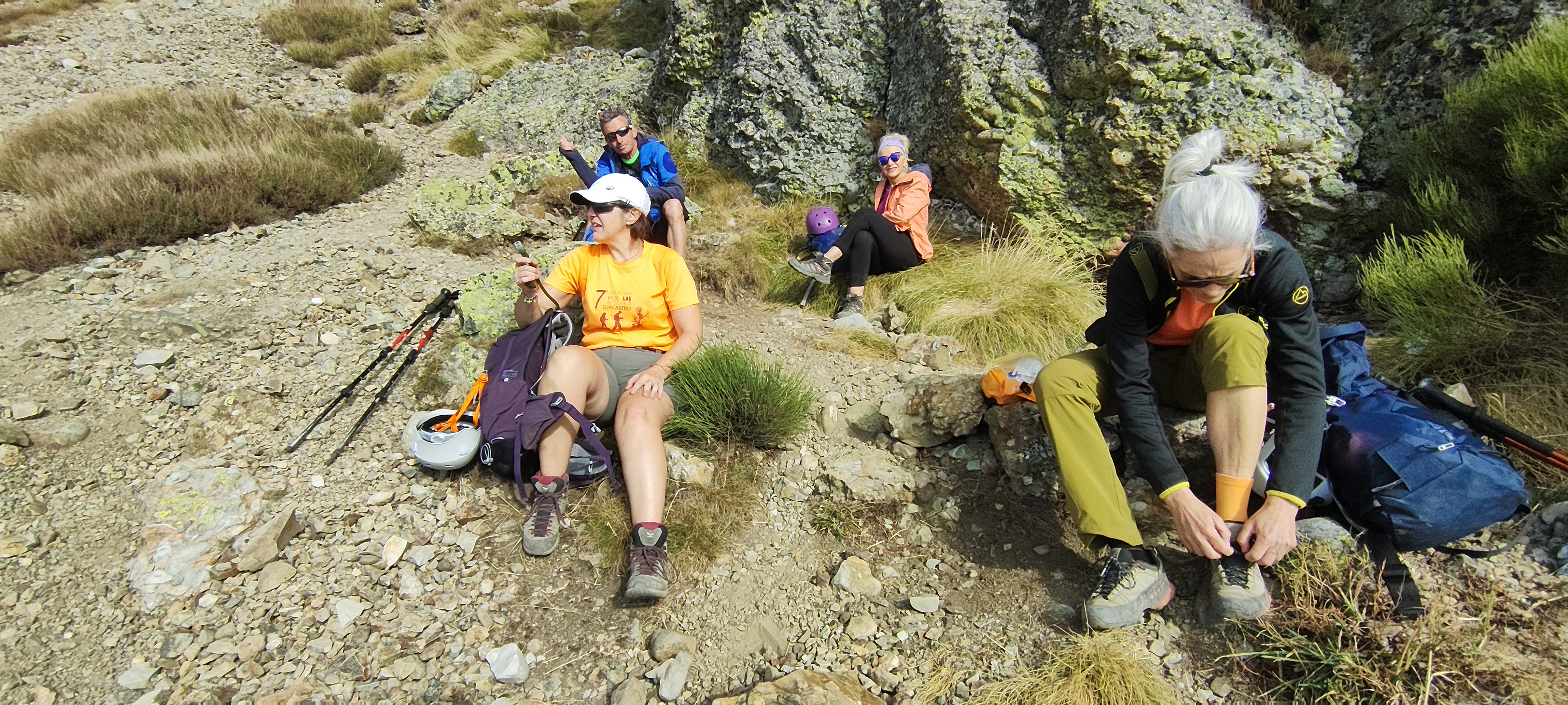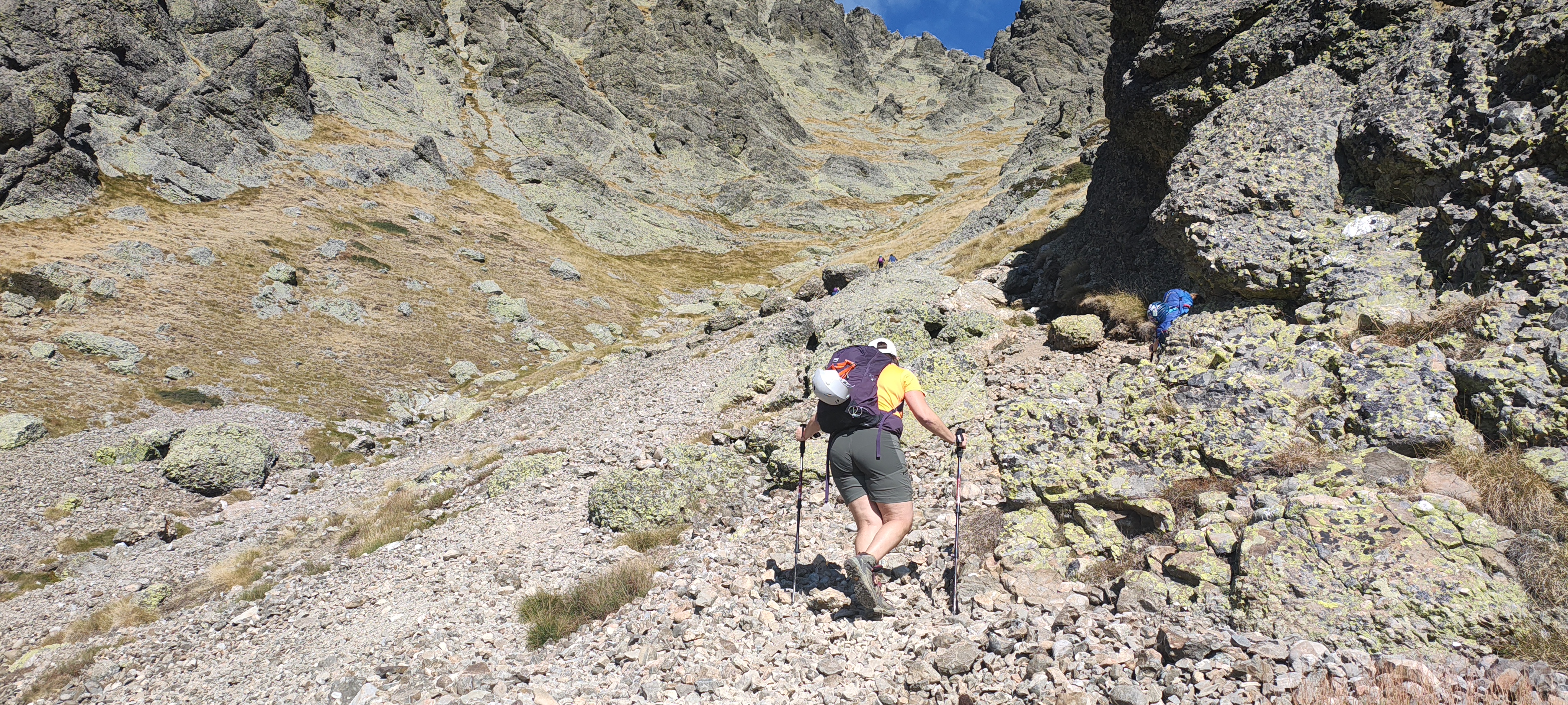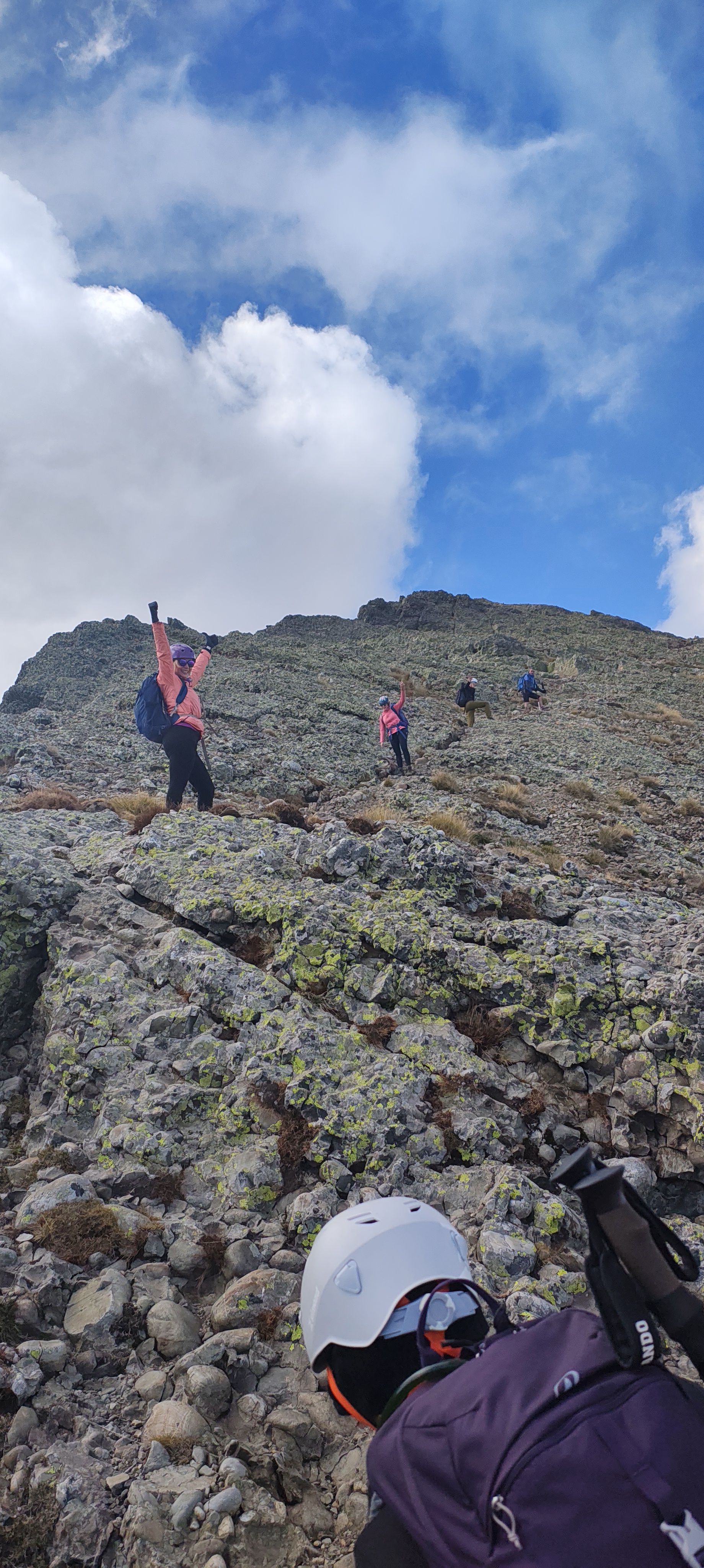 No sé el tiempo que pasó, pero se ha parado el grupo bajo una gran roca a retomar el aliento, ahora viene lo peor, se tornaran las piedras sueltas sobre roca dura de base, más difícil todavía.