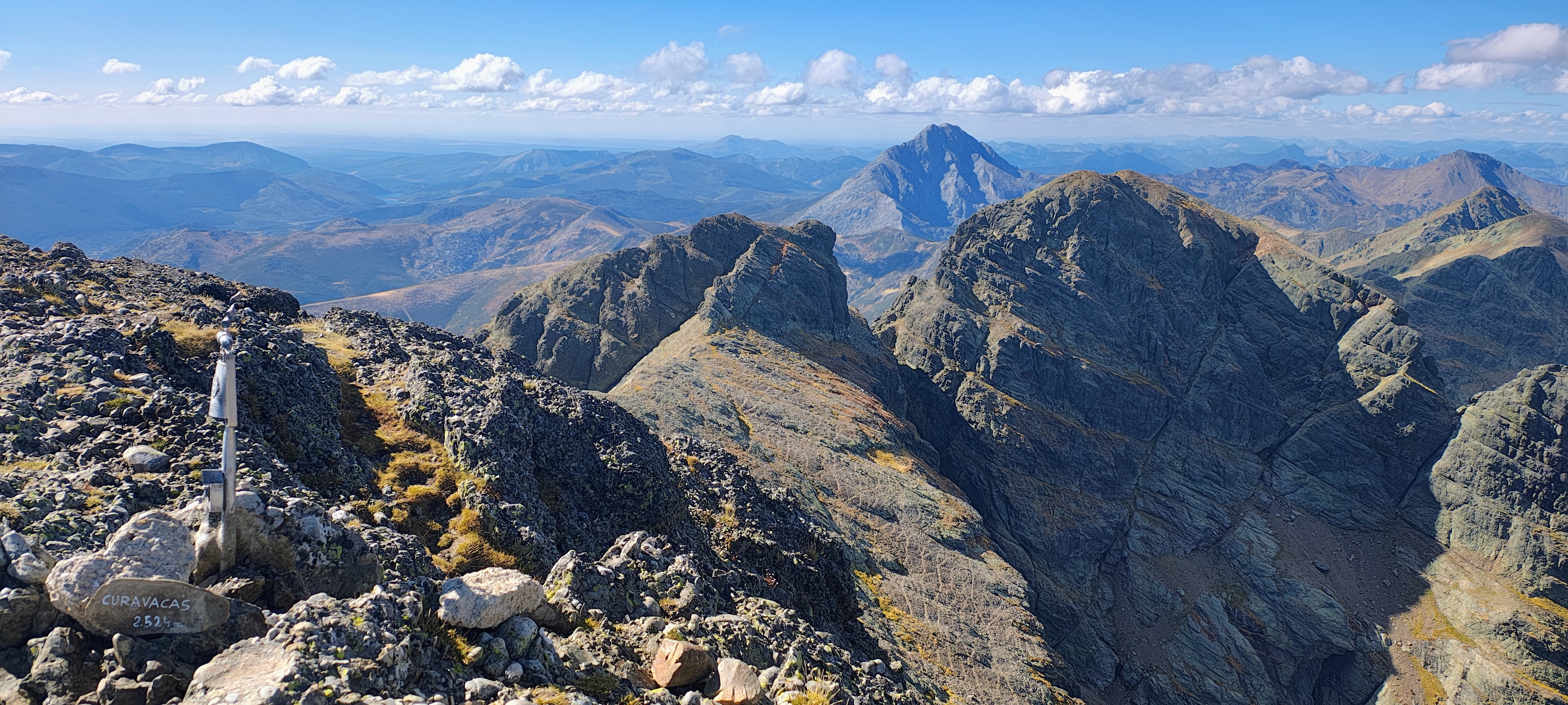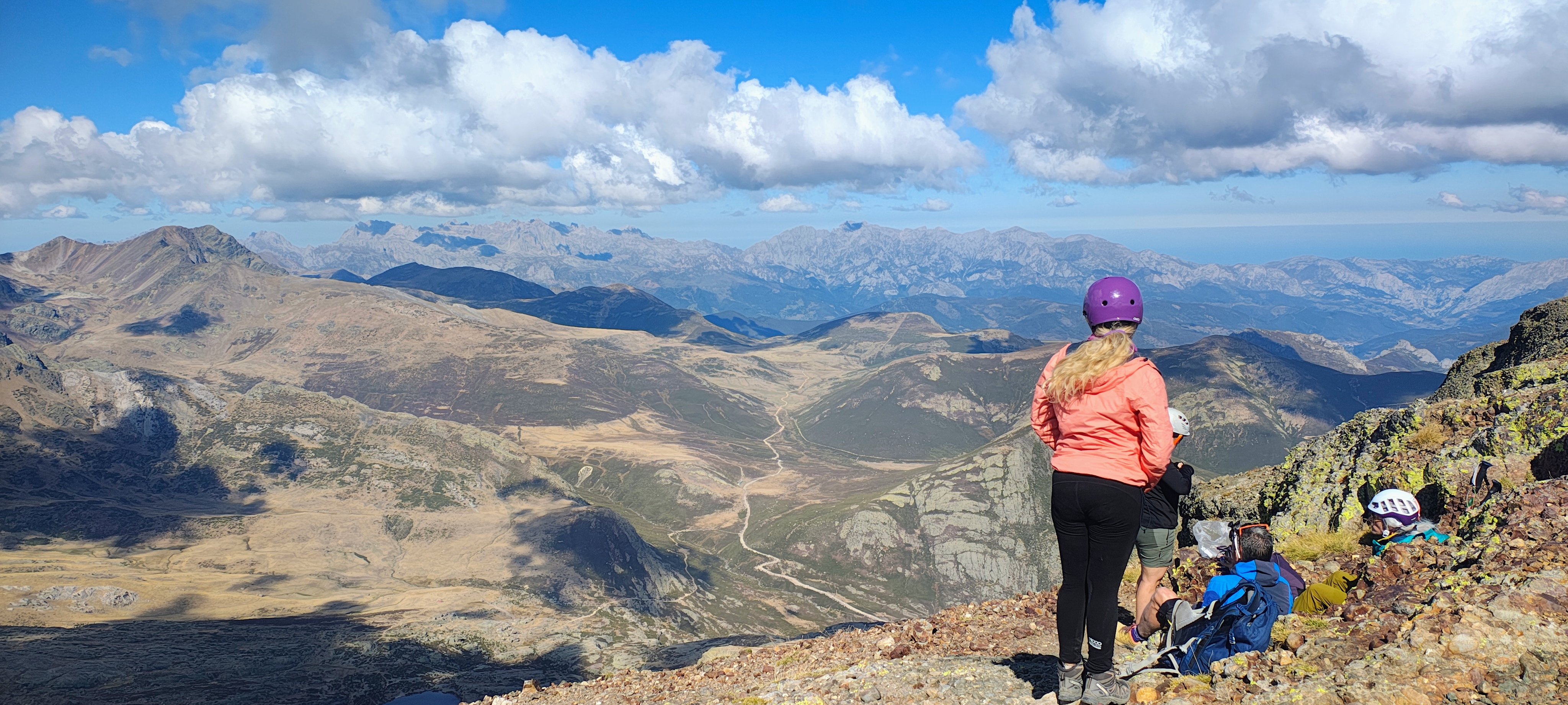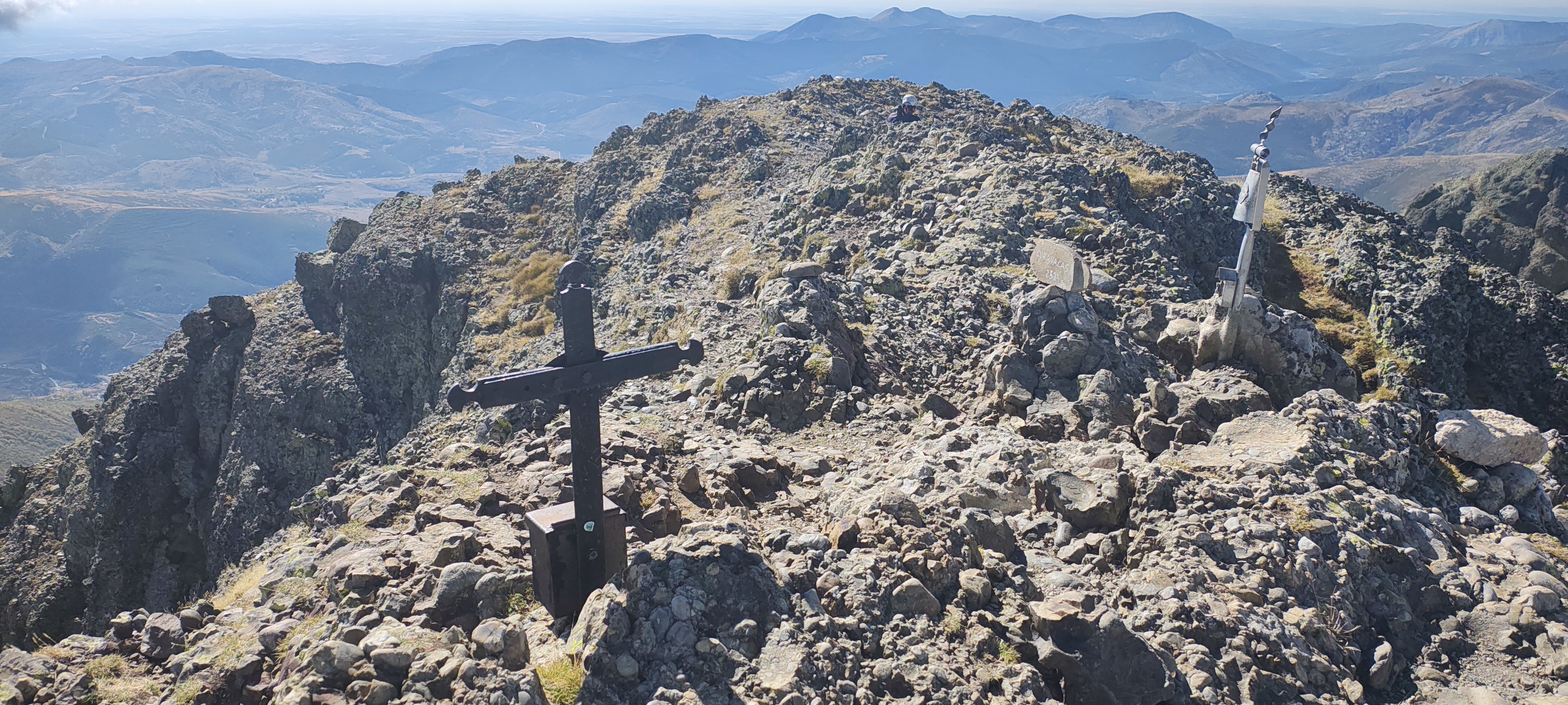 Hay una cruz en el sitio, nos hacemos fotos. Las vistas son mejores que en el Espigüete y hay menos gente.
