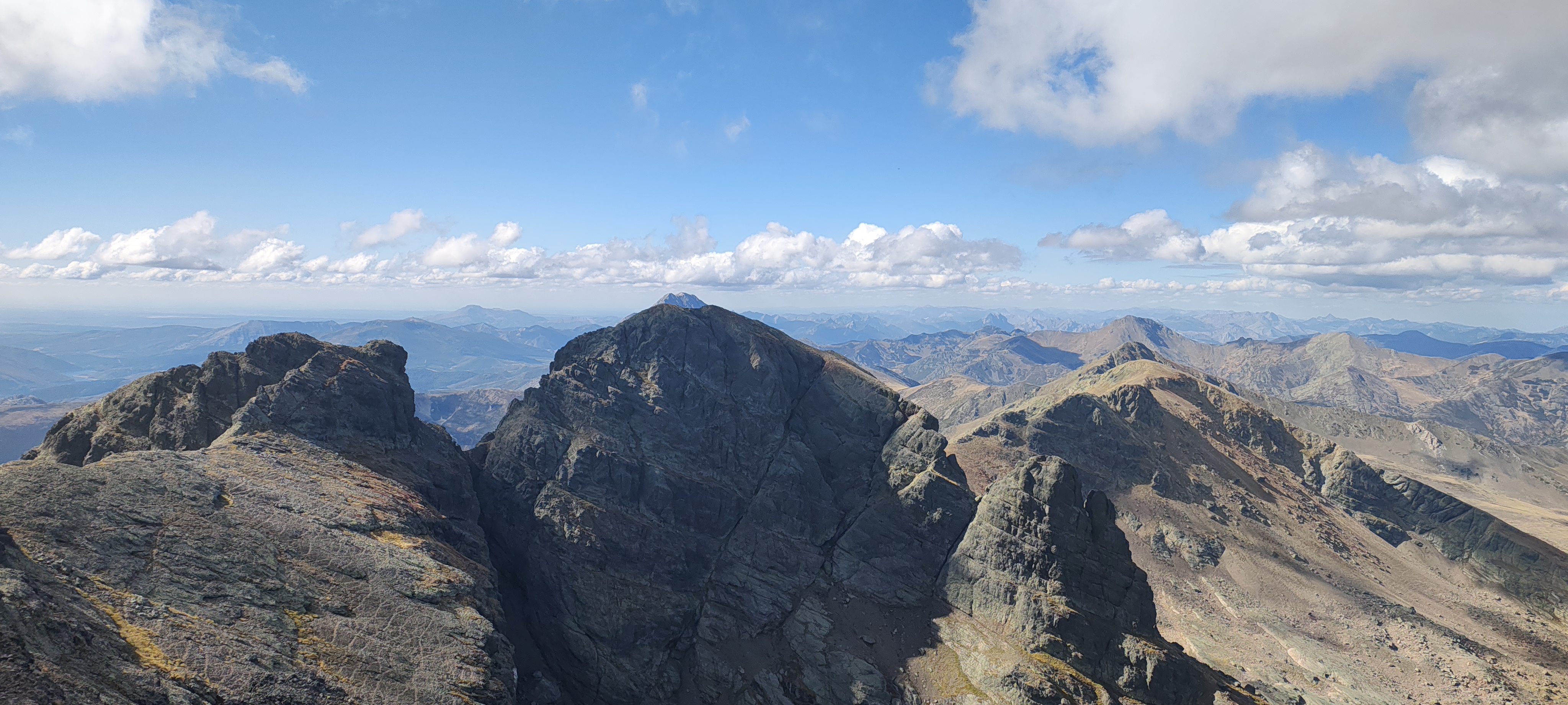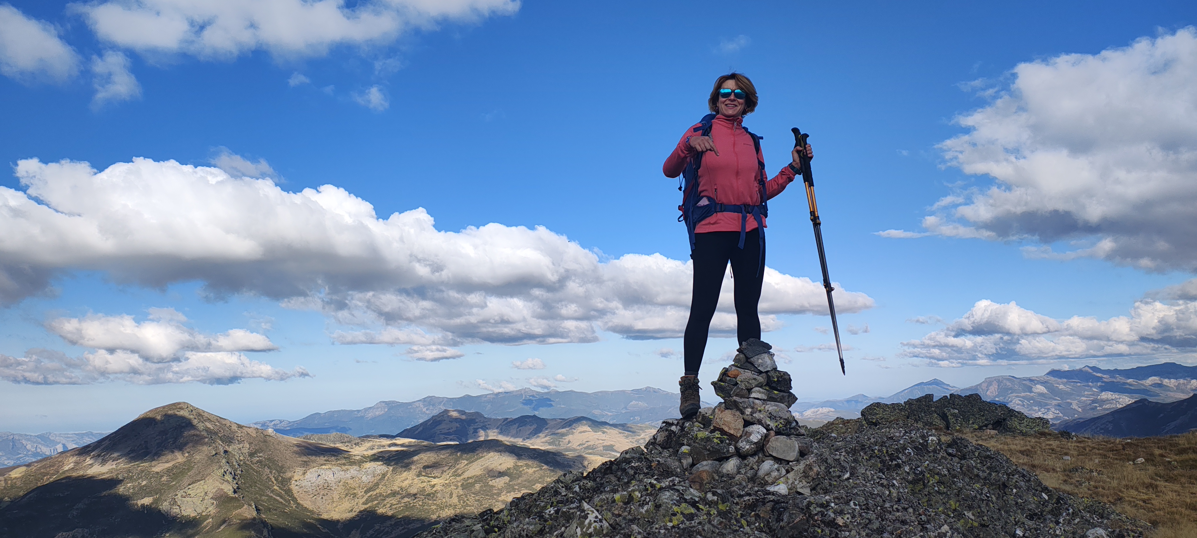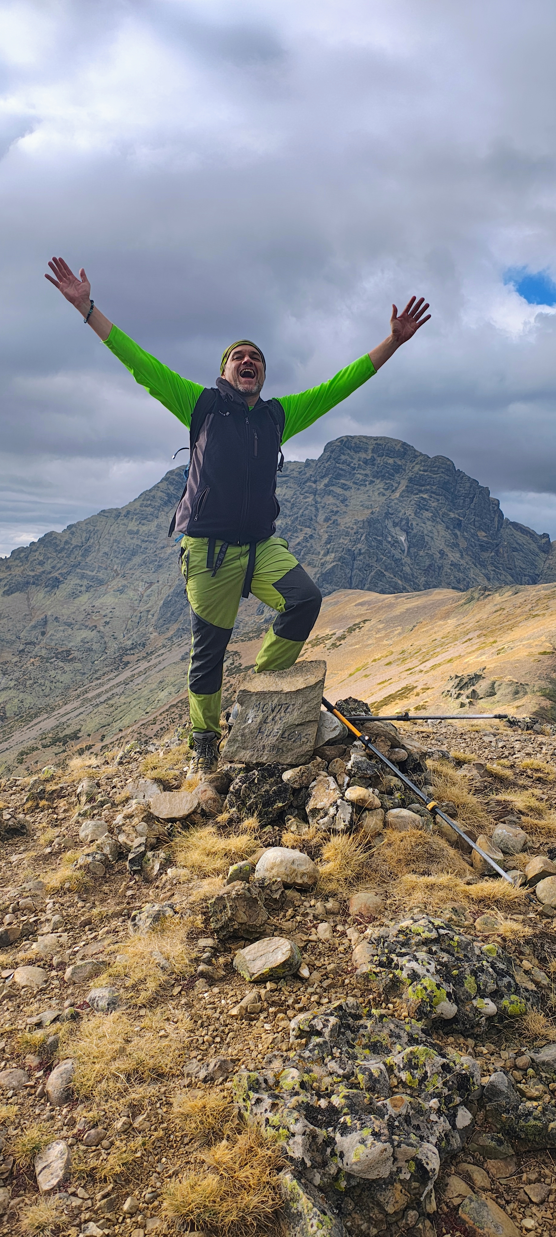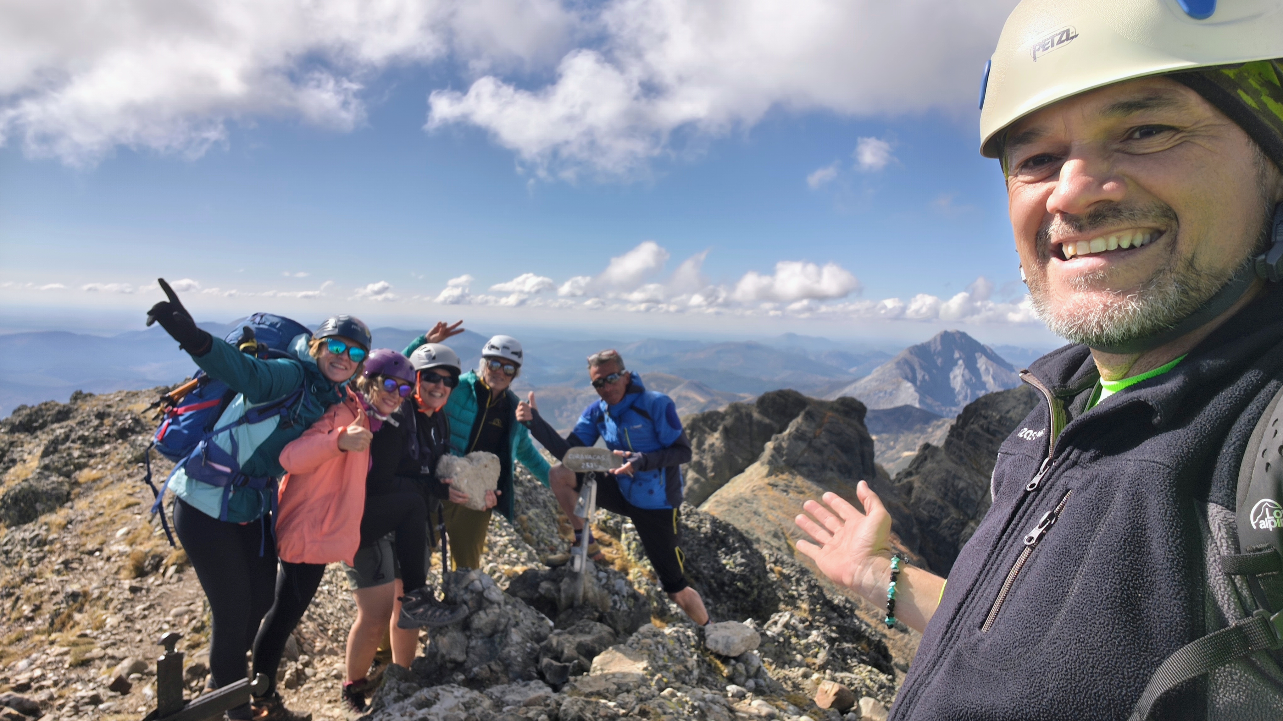 Hay una cruz en el sitio, nos hacemos fotos. Las vistas son mejores que en el Espigüete y hay menos gente.