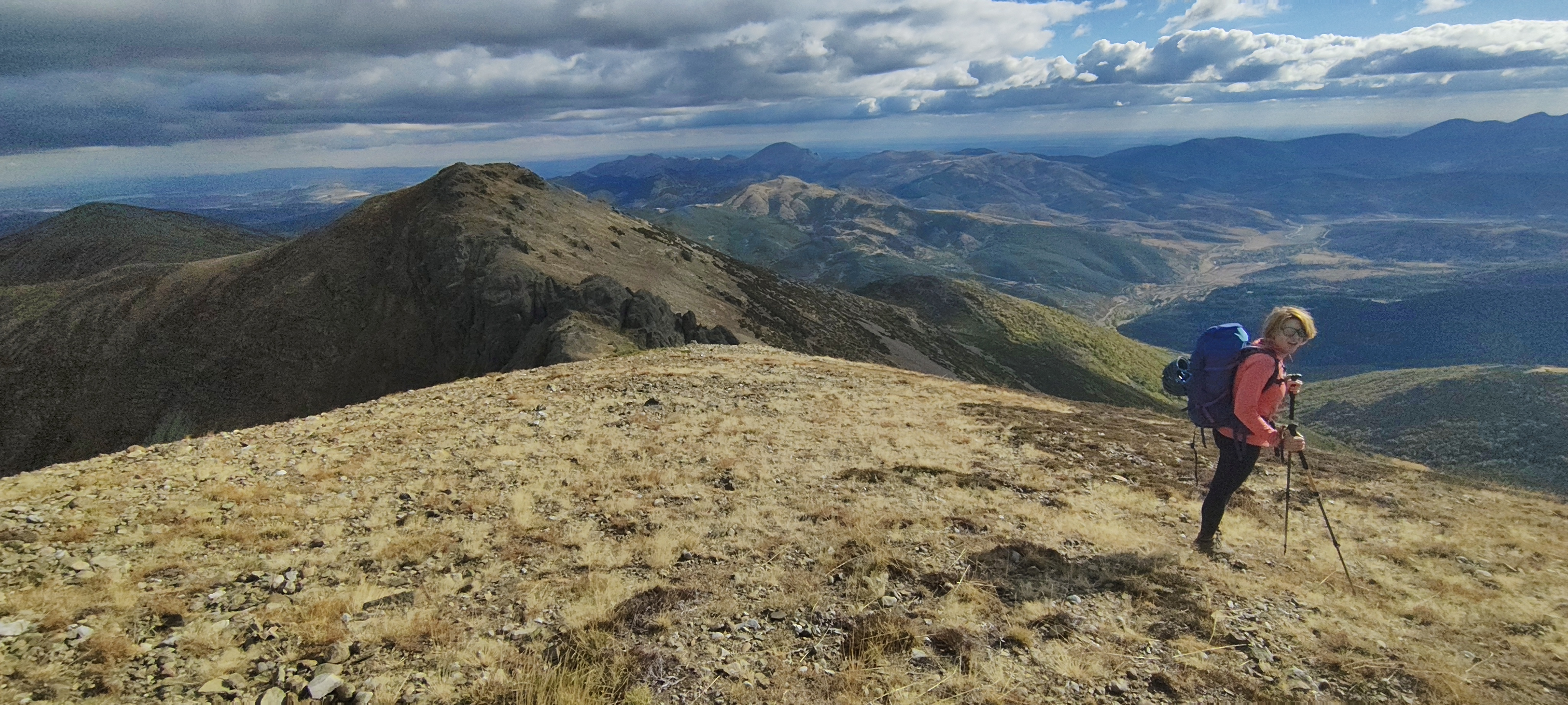 Salgo disparado, pues la tarde avanza y me gustaría hacer todas las cumbres posibles, Liwia viene detrás, cruzamos una ladera de hierba y llegamos a la cuerda, desde aquí también siento el rumor de las olas, pasamos el collado del hospital con la mole oscura del Curavacas por encima, luego pasamos dos cimas sin nombre y seguimos buscando. Hemos ido habiendo fotos en todas las mini cumbres, pero en ninguna vi una luz roja de sangre oscura. Estamos por fin en la cumbre del Hospital.