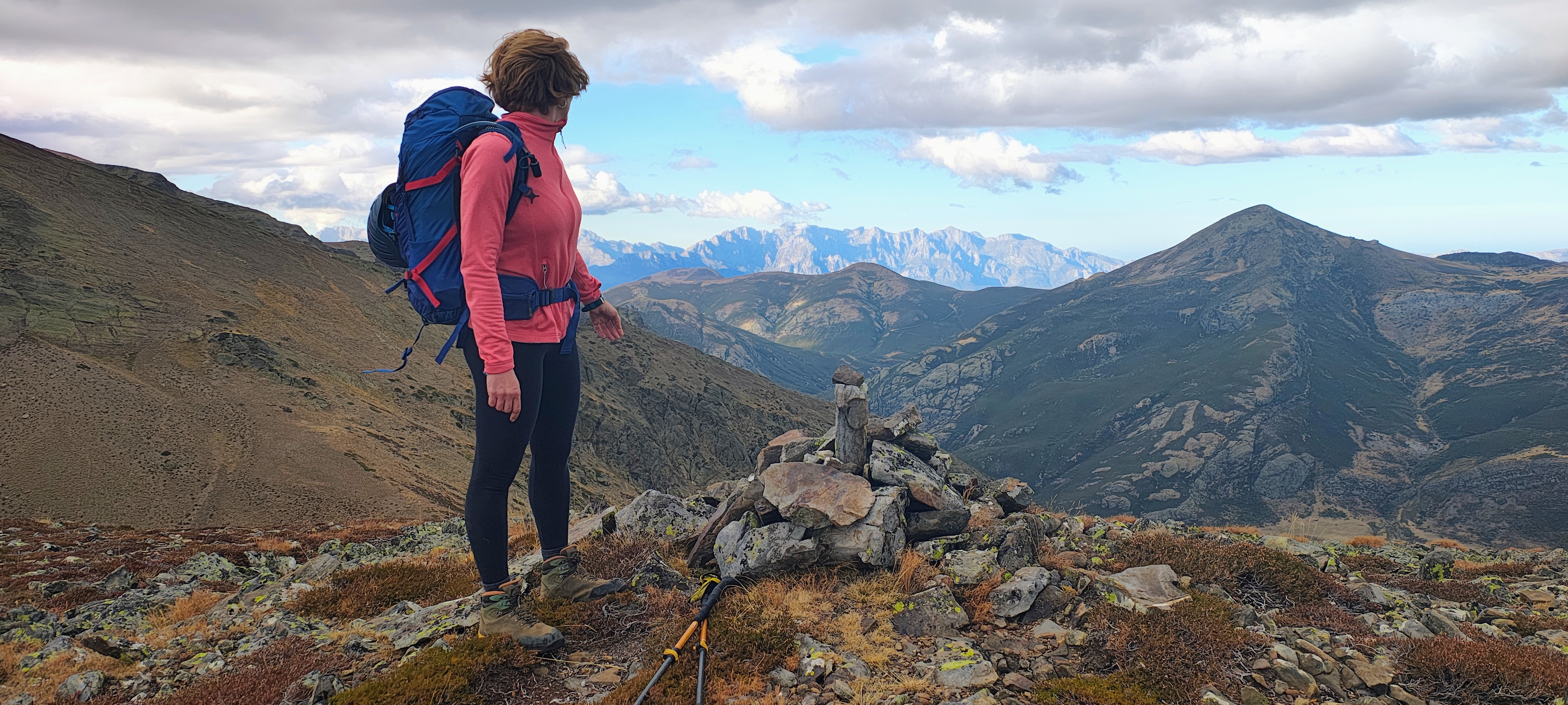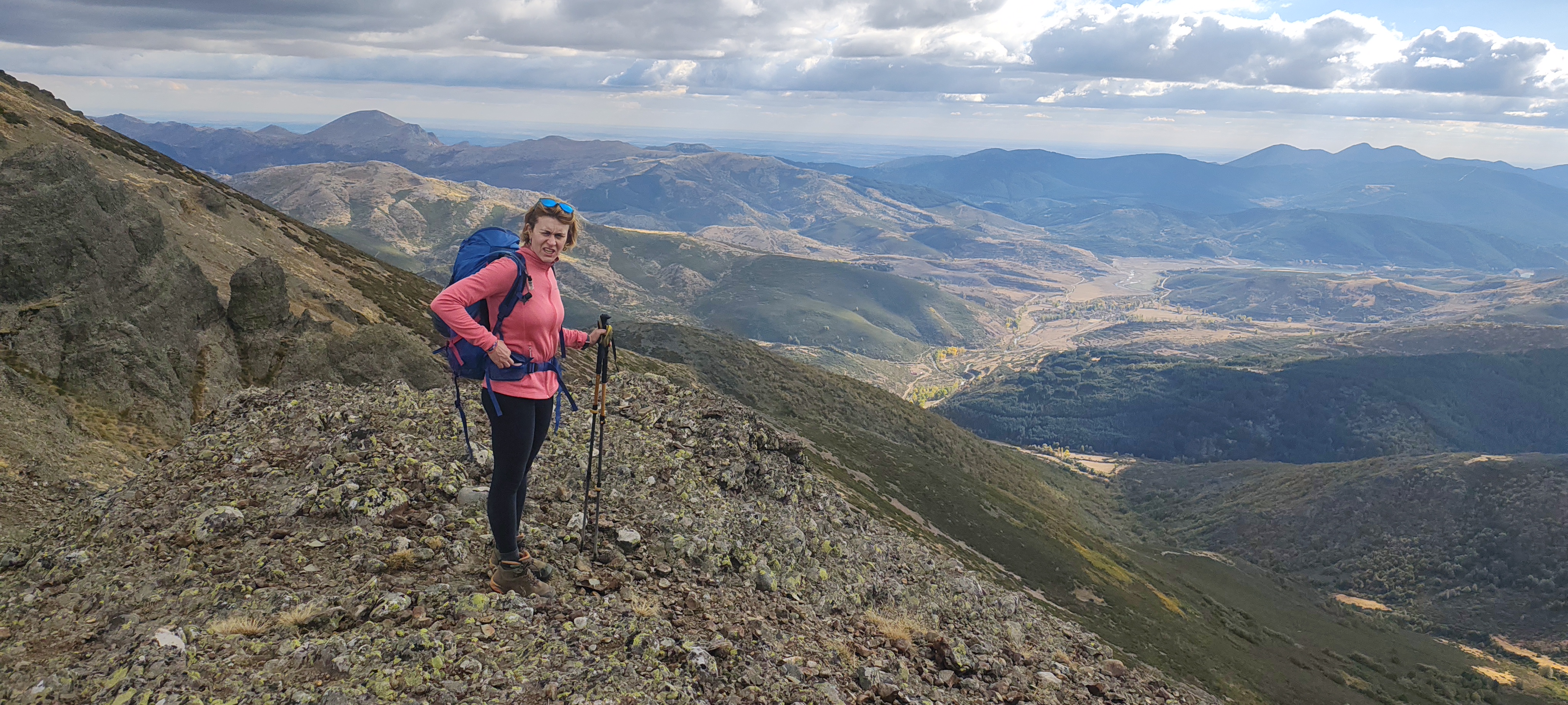 Por detrás llega una mujer de unos cuarenta años, se llama Irene, me cuenta que ella se había criado en estas montaña y ahora de vez en cuando venía desde Palencia a subir esas montañas que tanto admiró en su infancia, recuerdo haberla visto en el Espigüete el día anterior y ella me lo confirma que estuvo allí.