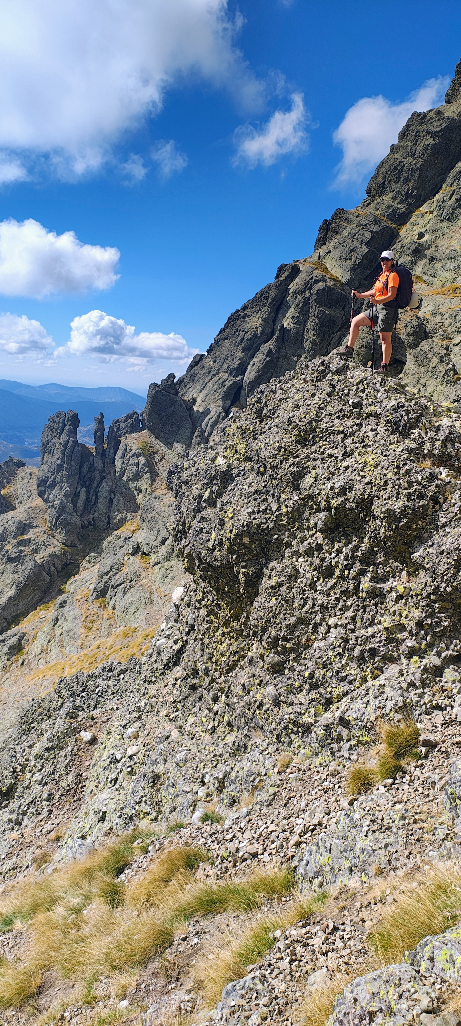 Liwia quiere más, se quiere llevar más cimas, la ruta fue corta, dice de subir al Hospital, que si alguien se anima, Juanjo no tiene esa cima, pero le apetece bajar corriendo por la pedrera, así que le dejo mi casco con la cámara para que se grabe la bajada que le hace ilusión, y yo decido irme con Liwia a por más cimas, que estoy con el mono, no tengo costumbre de andar distancias tan cortas, apenas he notado estas dos rutas del finde.