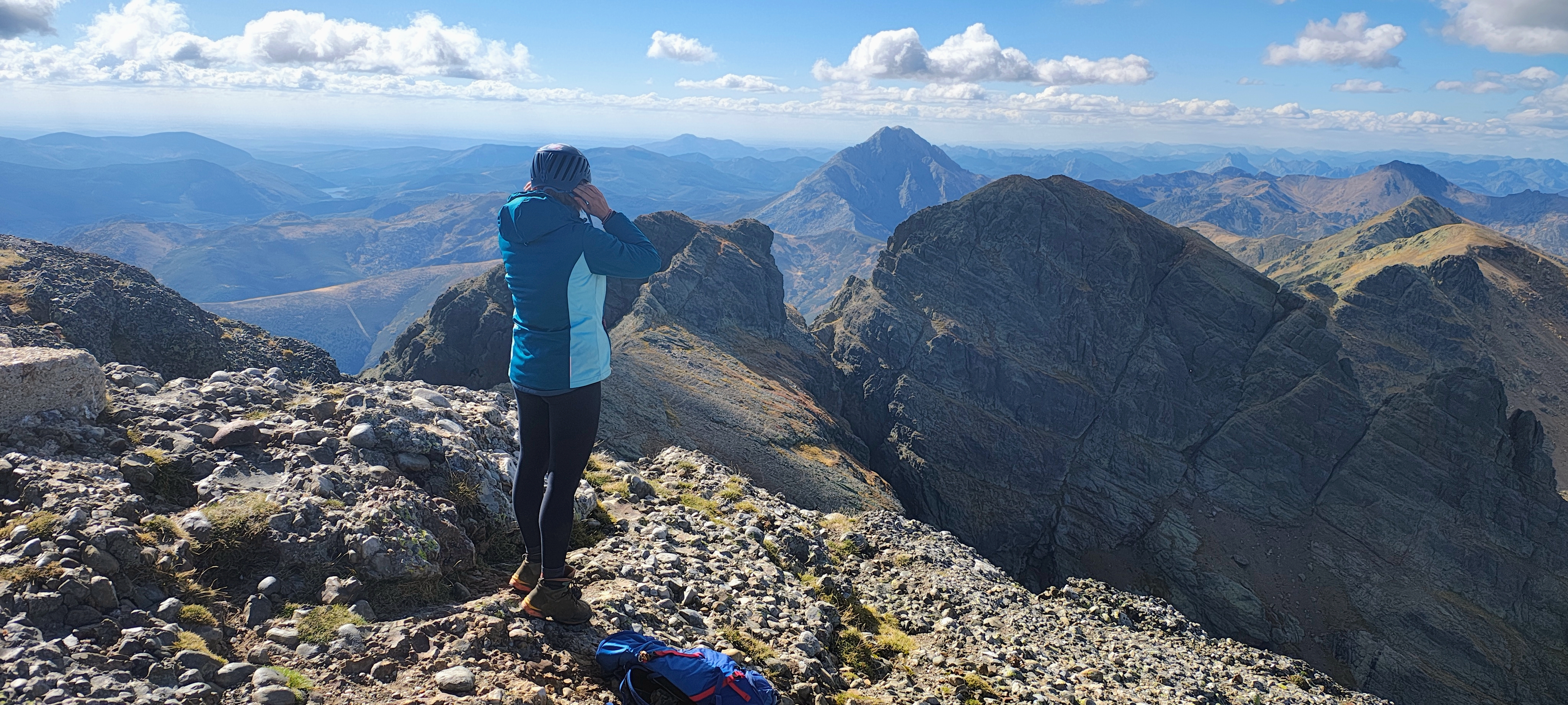 Se ve el Espigüete y montañas por todos lados, de fondo Picos de Europa, y el Cantábrico arrullando en la distancia, detrás de la cima norte, los latidos que siento son sus olas…, el sueño de anoche sigue apareciéndome, o serán de la realidad…