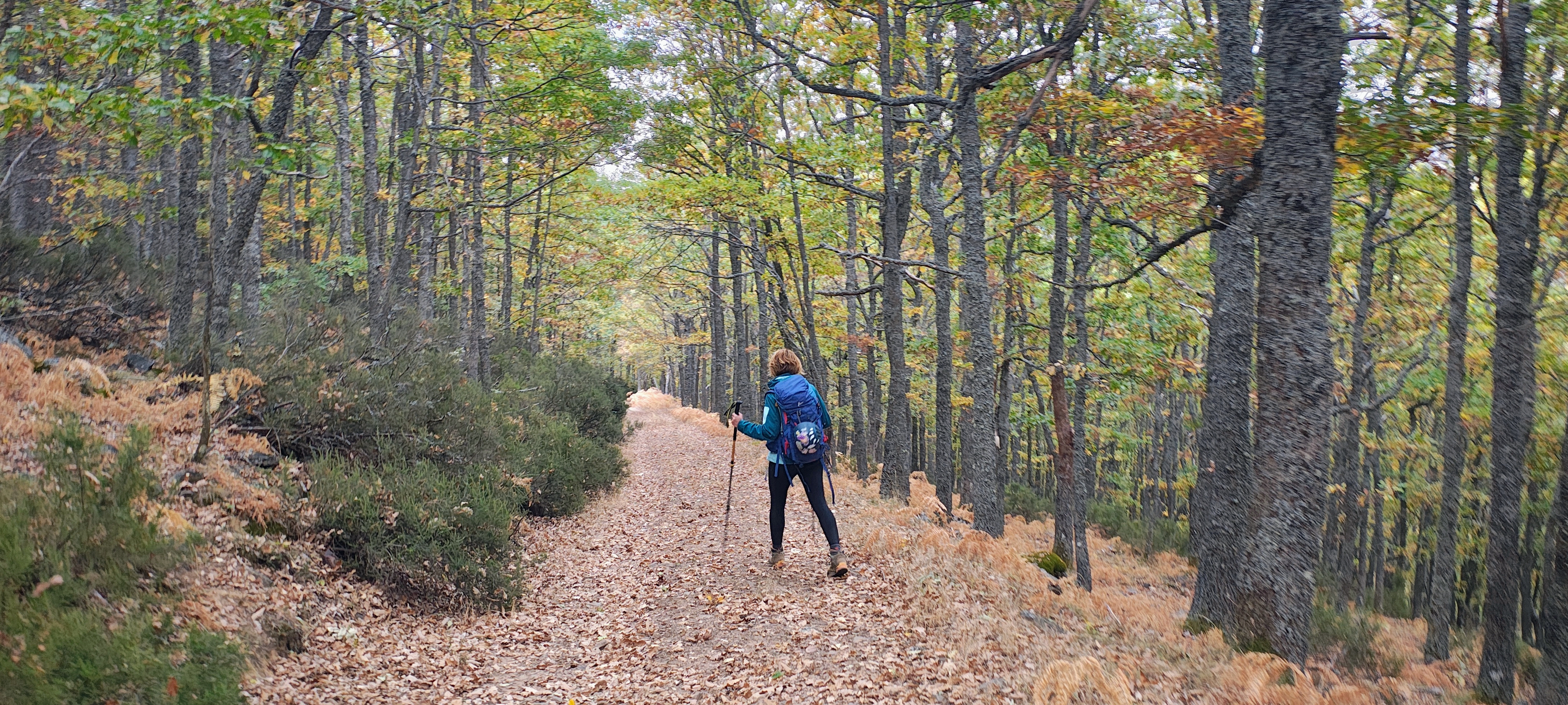 Llegamos a un refugio y desde allí tomamos la pista que nos introduciría en el bosque, vamos muy deprisa, Liwia cree que nos esperan en el bar de Vidrieros, yo creo que llevamos mucho tiempo en el monte para que sigan allí…